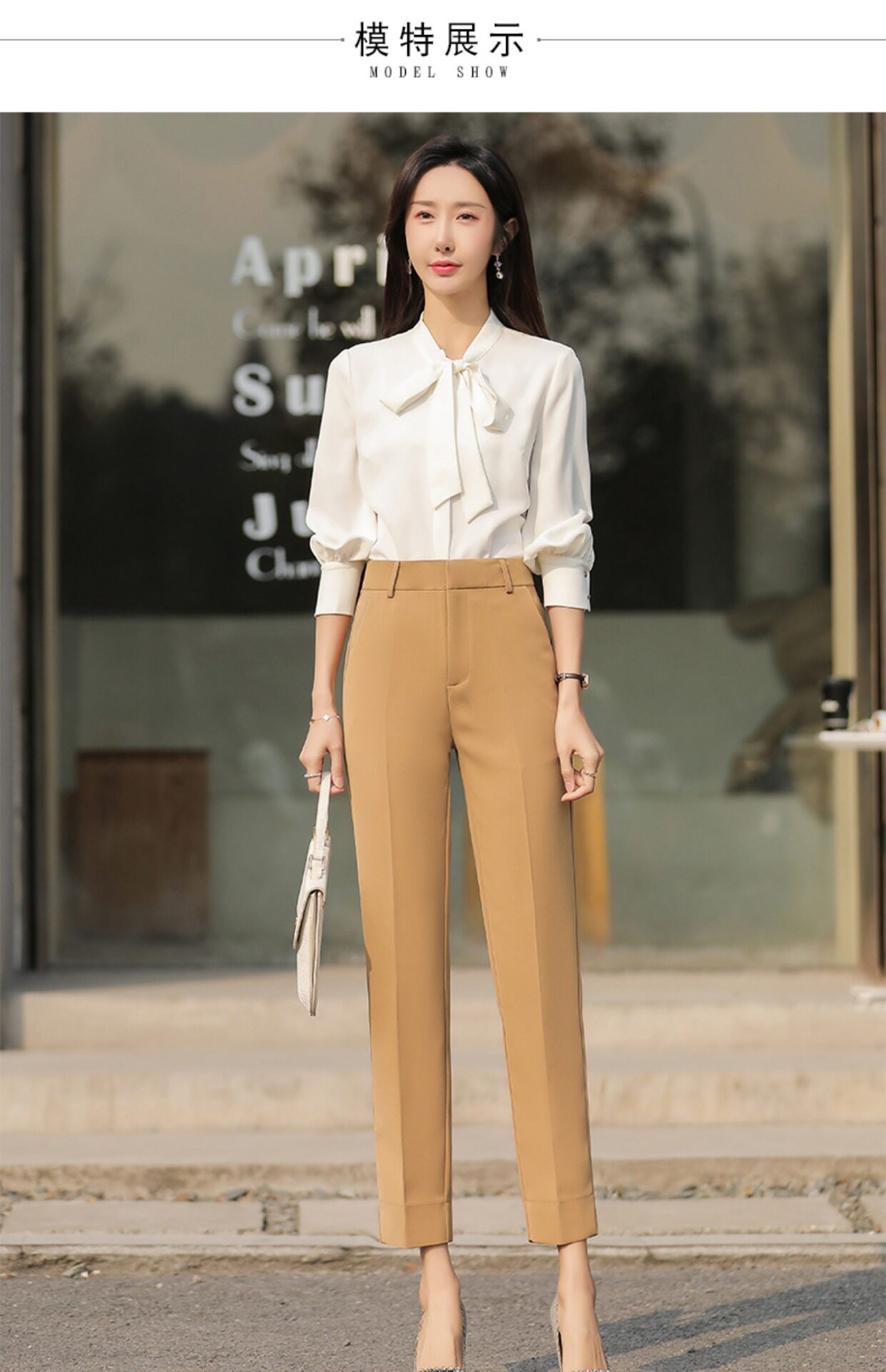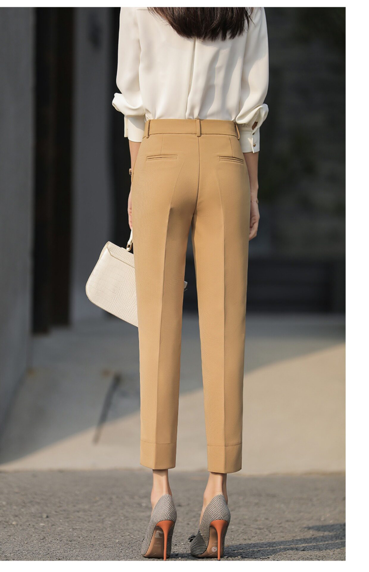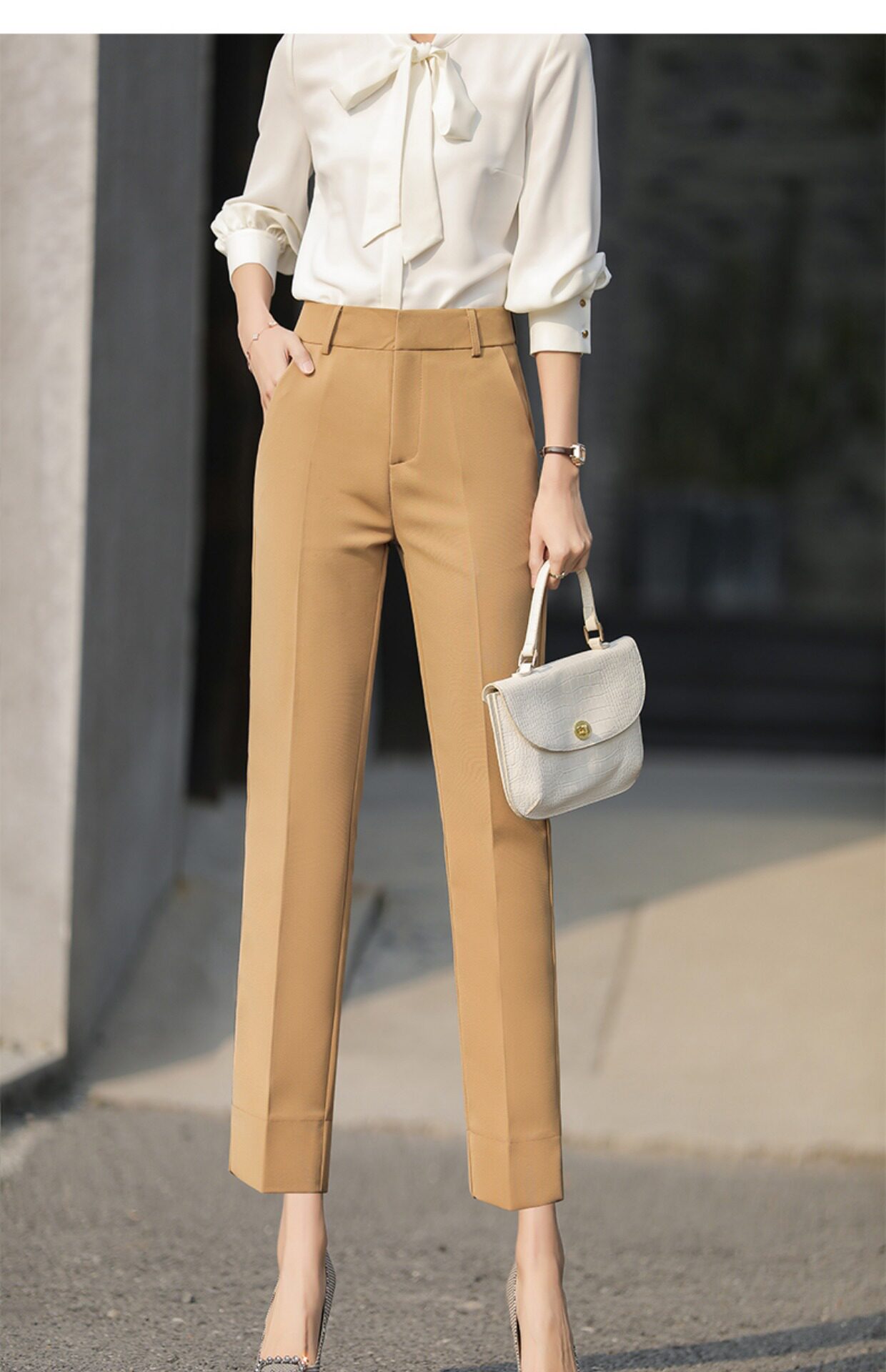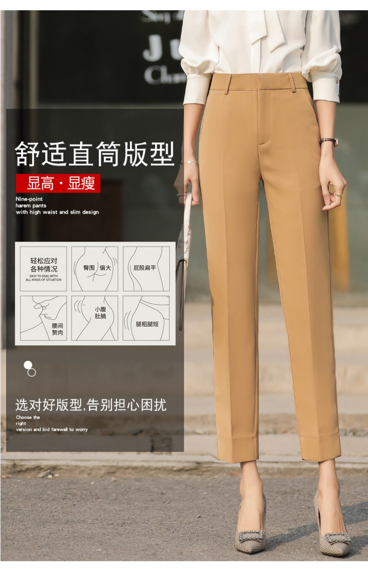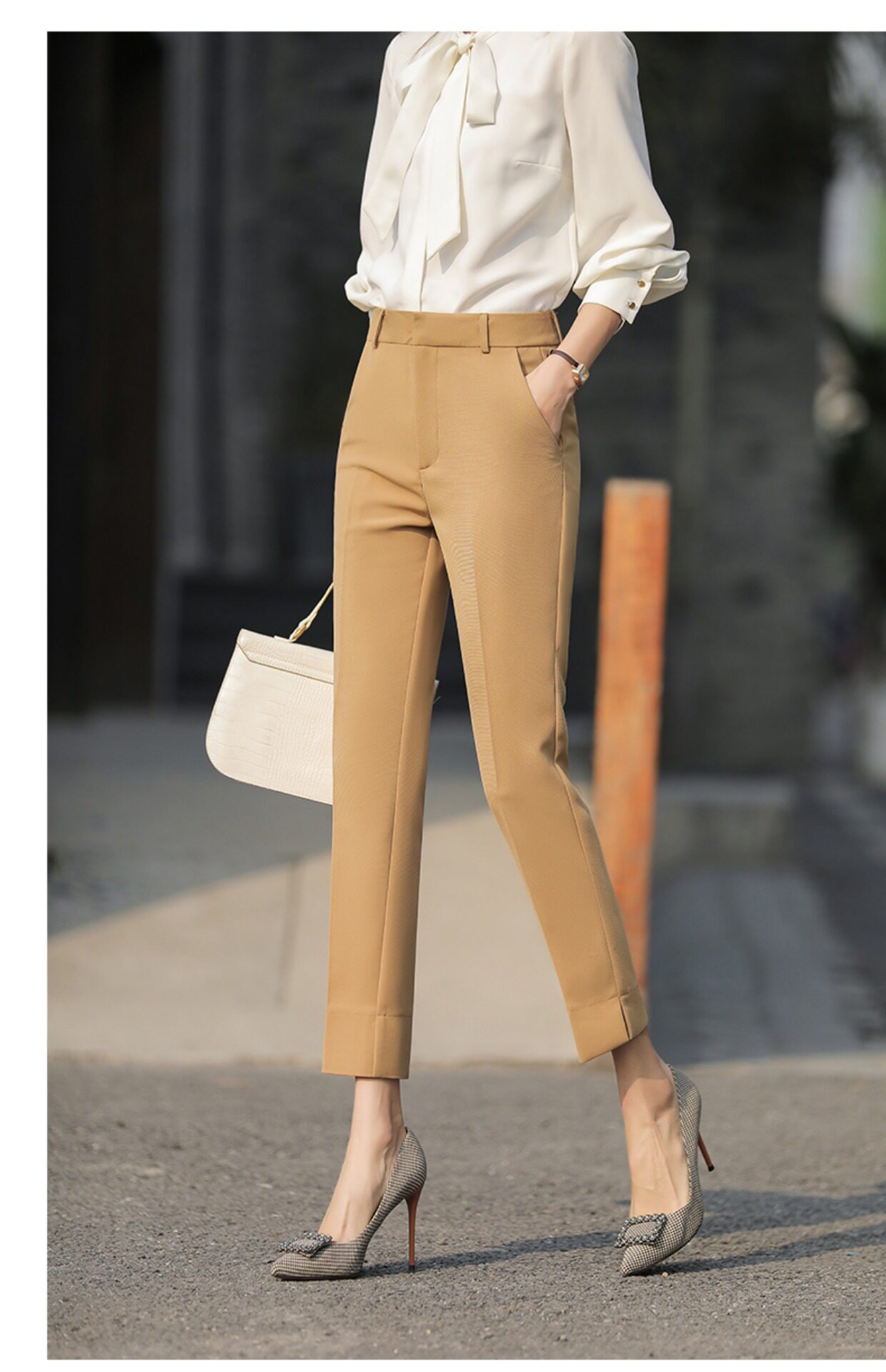 RY2661#开叉西装裤女高腰直筒小脚职业秋季显瘦烟管裤