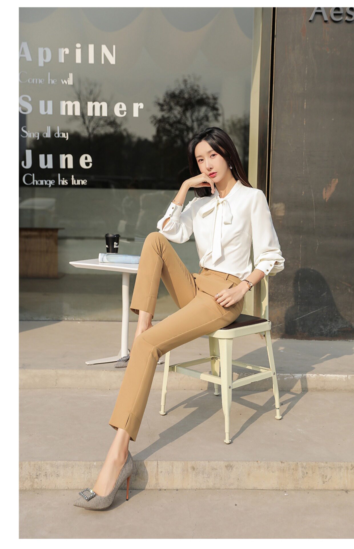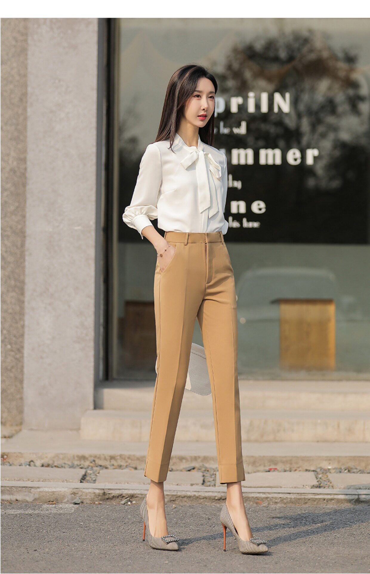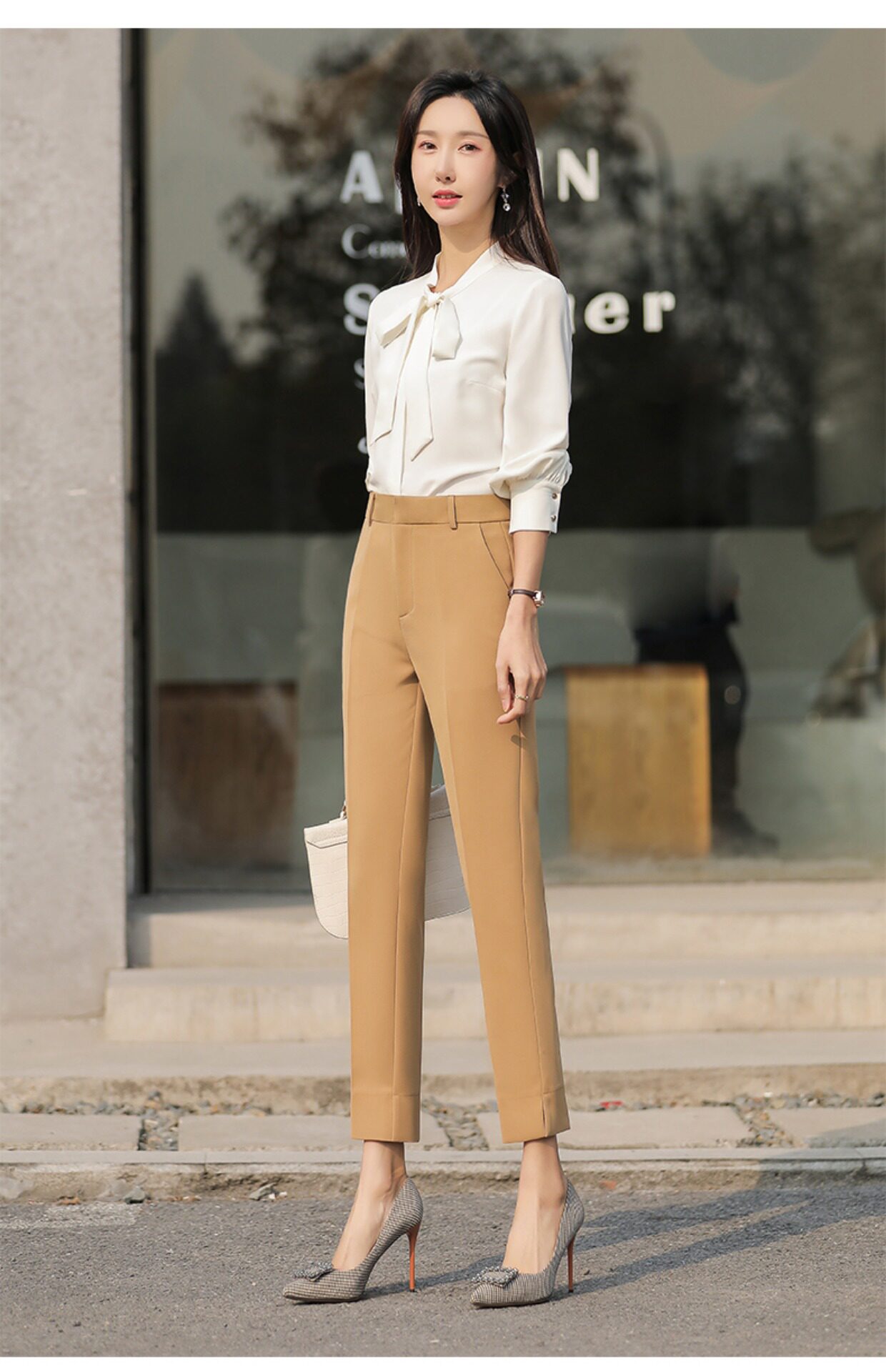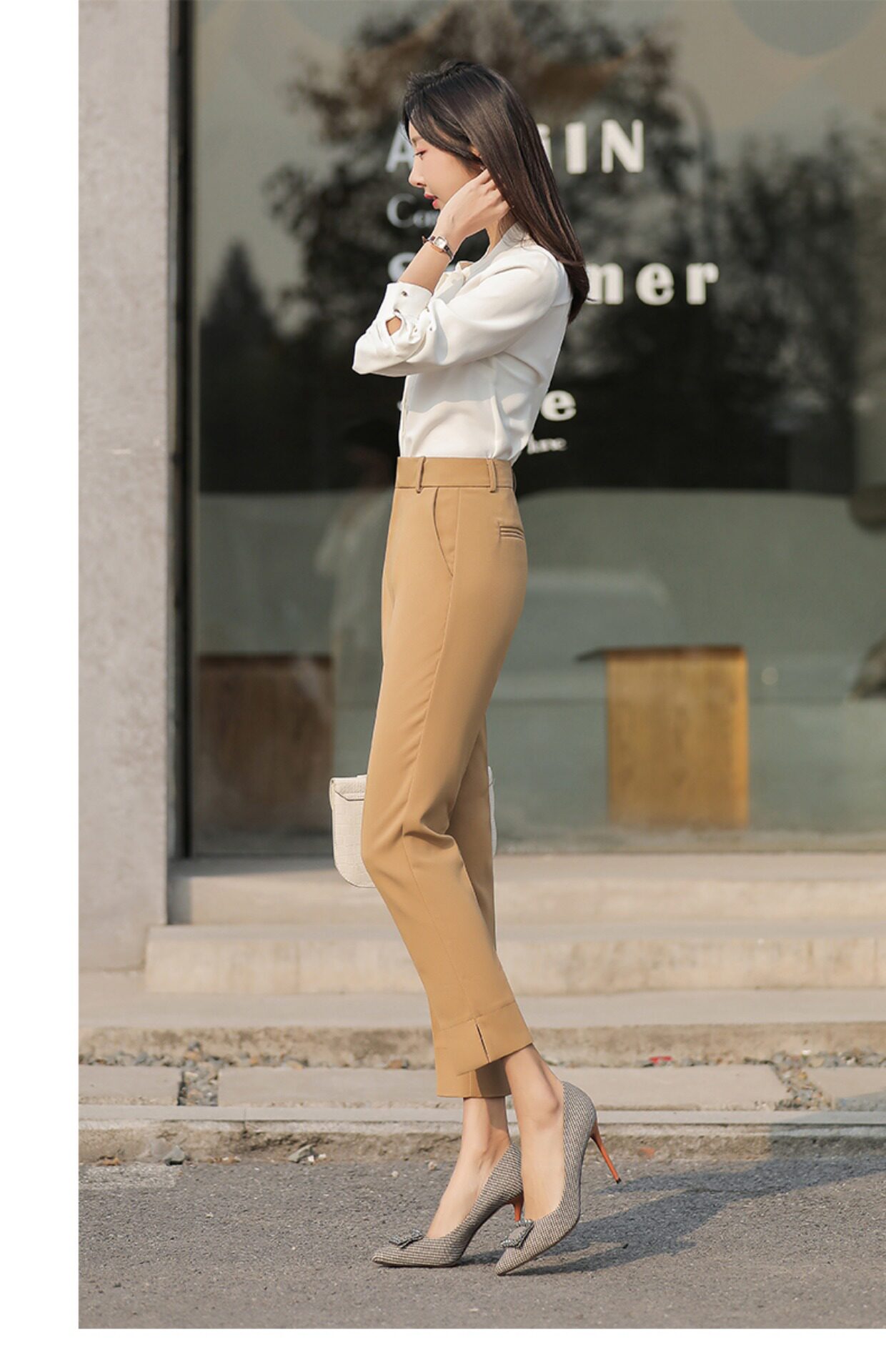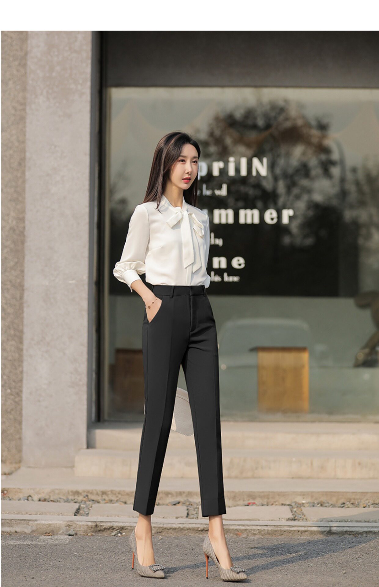 RY2661#开叉西装裤女高腰直筒小脚职业秋季显瘦烟管裤
