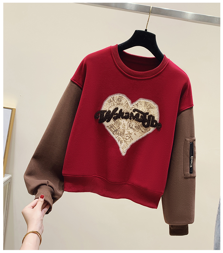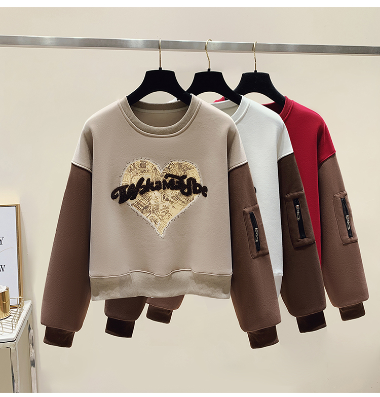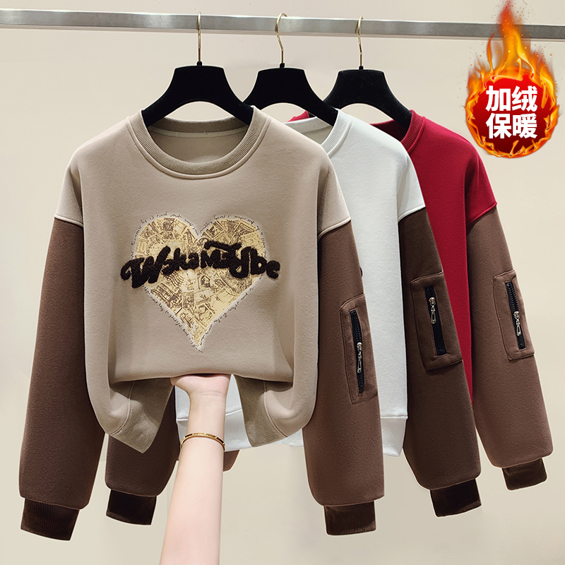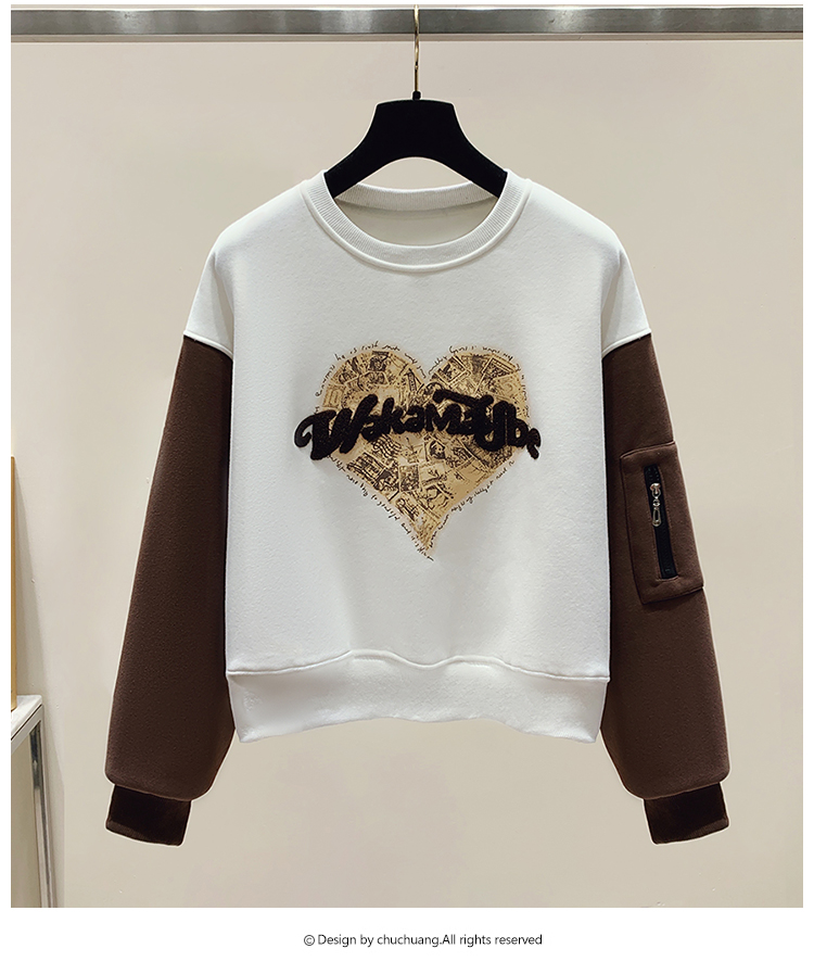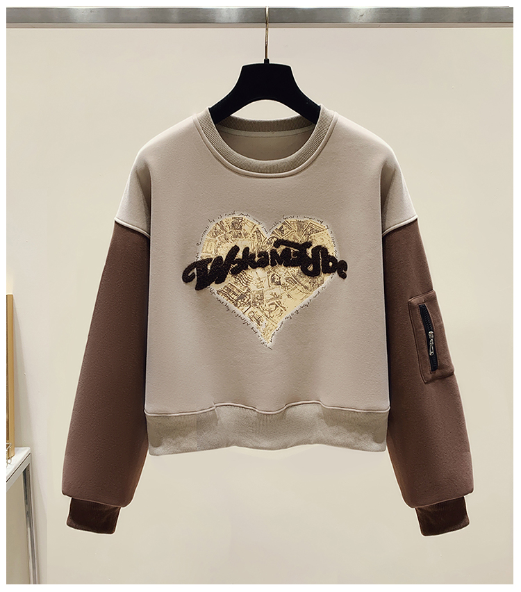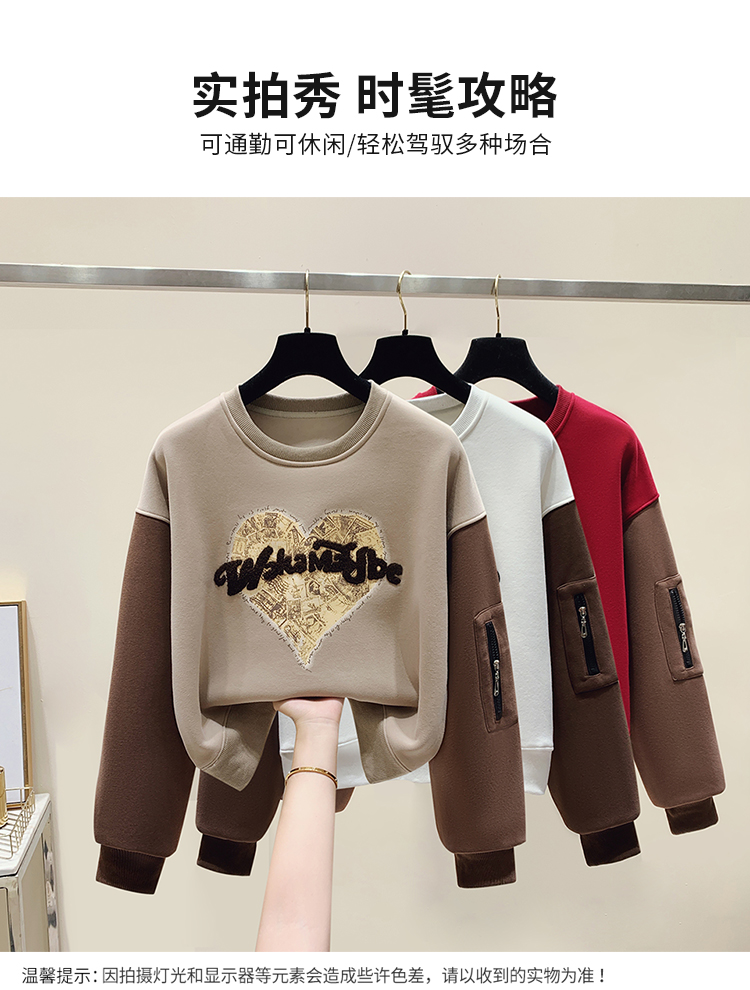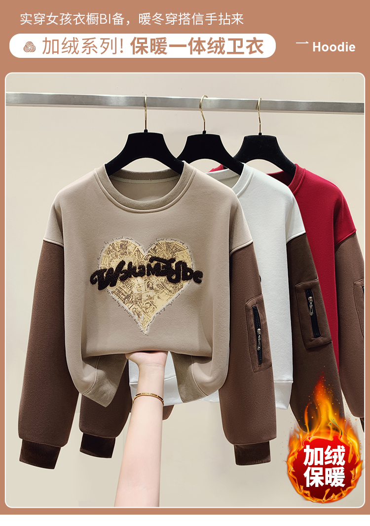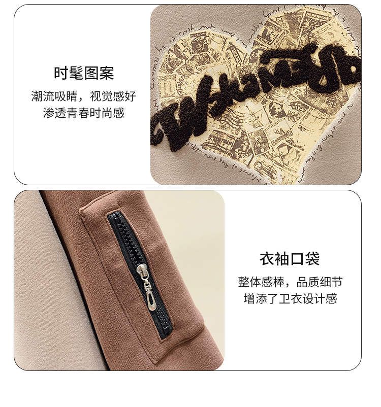RM31756#美式休闲圆领美拉德撞色加绒卫衣