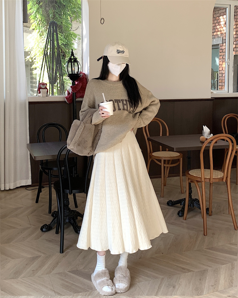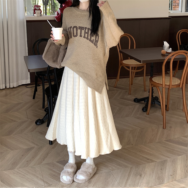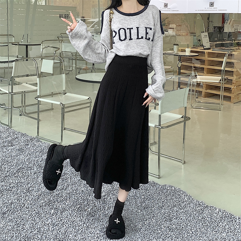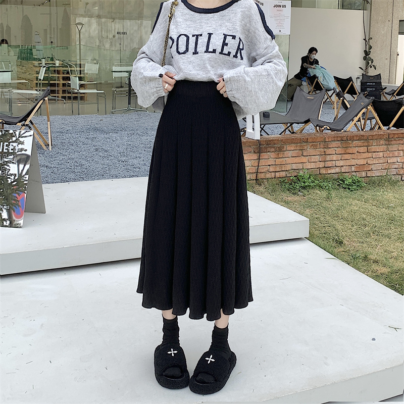 RM31781#新款针织半身裙女高腰遮胯显廋A字伞裙长裙气质百搭