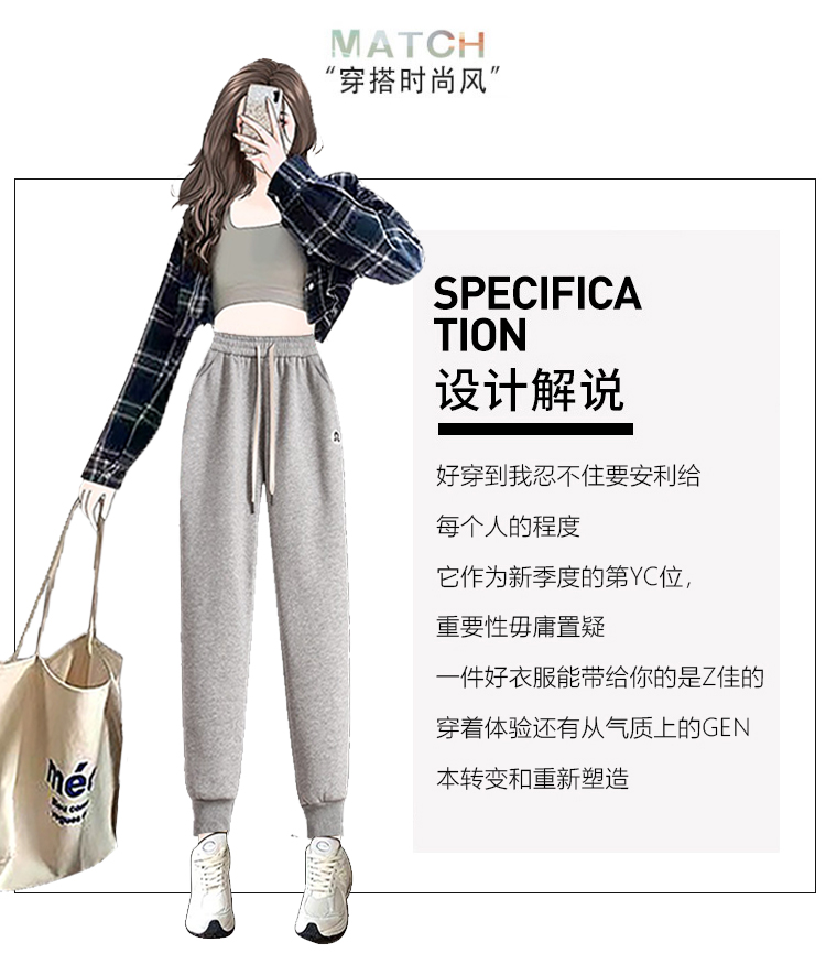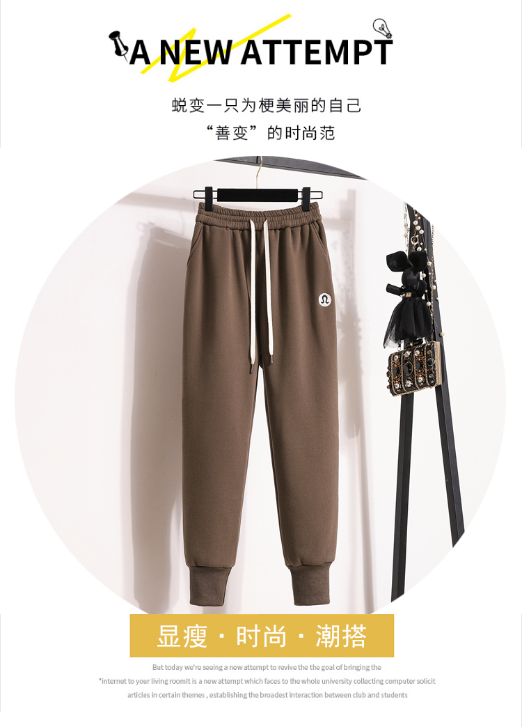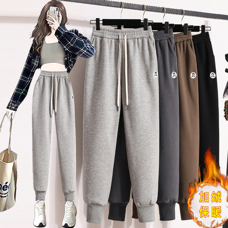 RM31796#新款加绒加厚束脚休闲运动裤女简约百搭显瘦哈伦卫裤