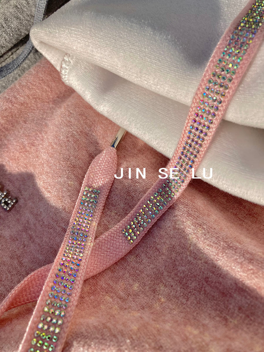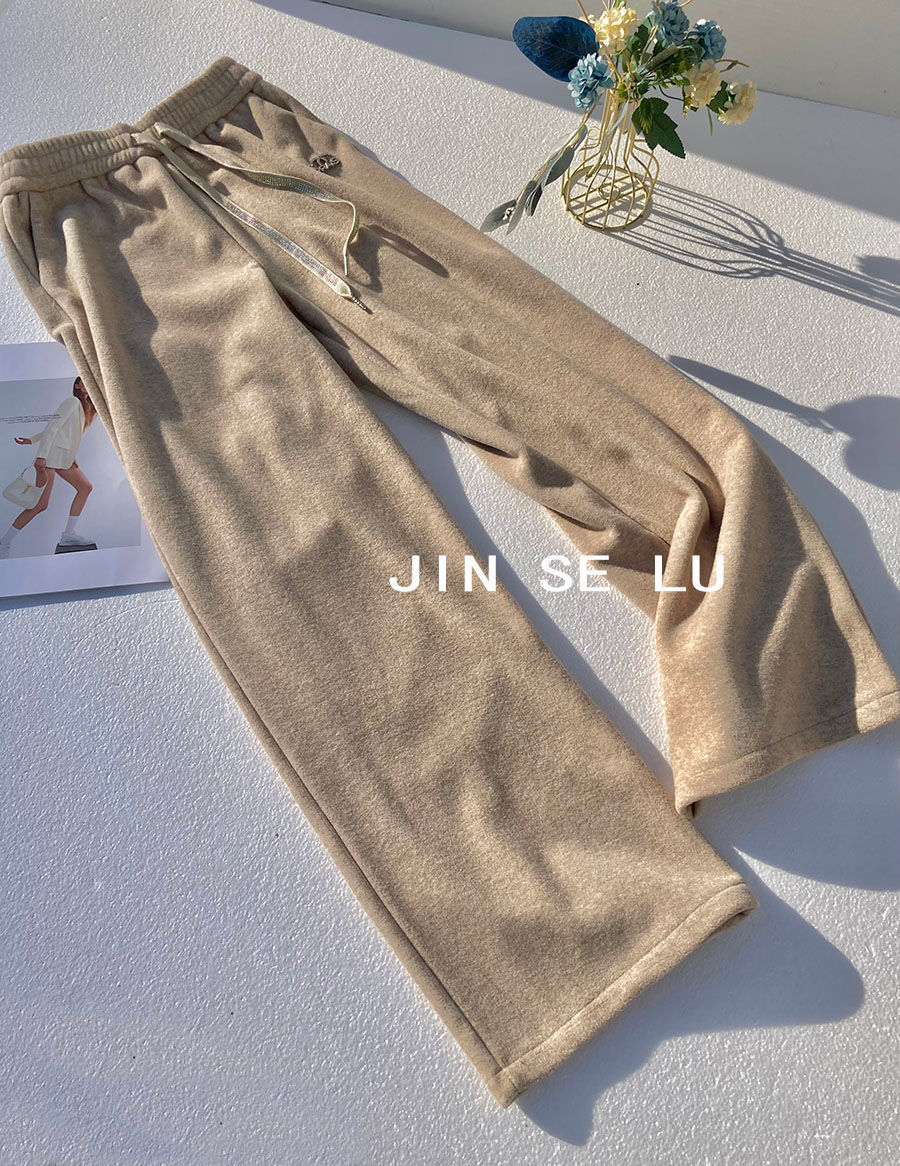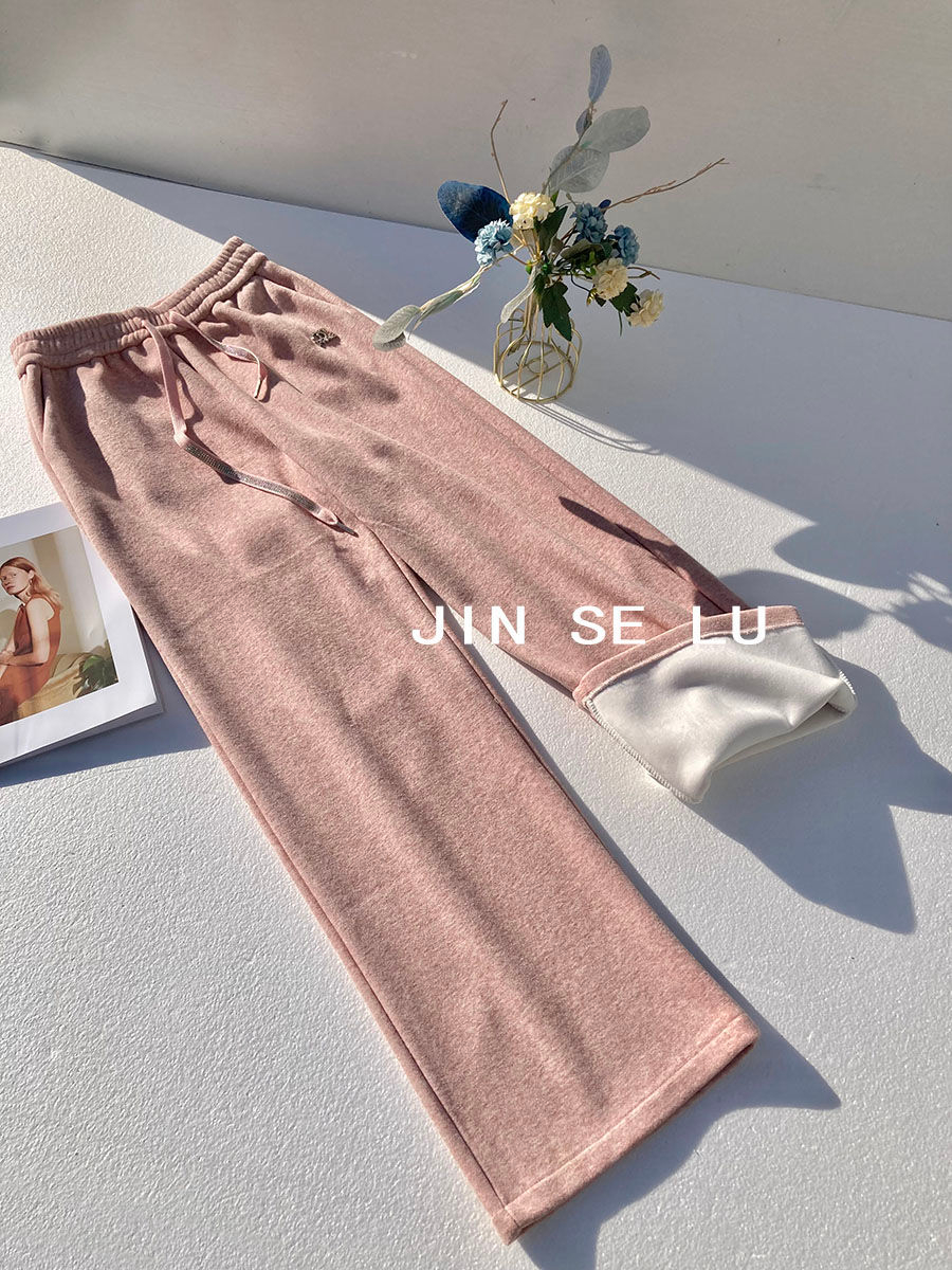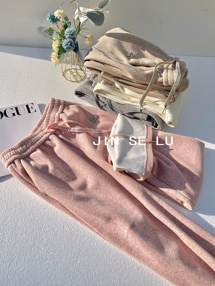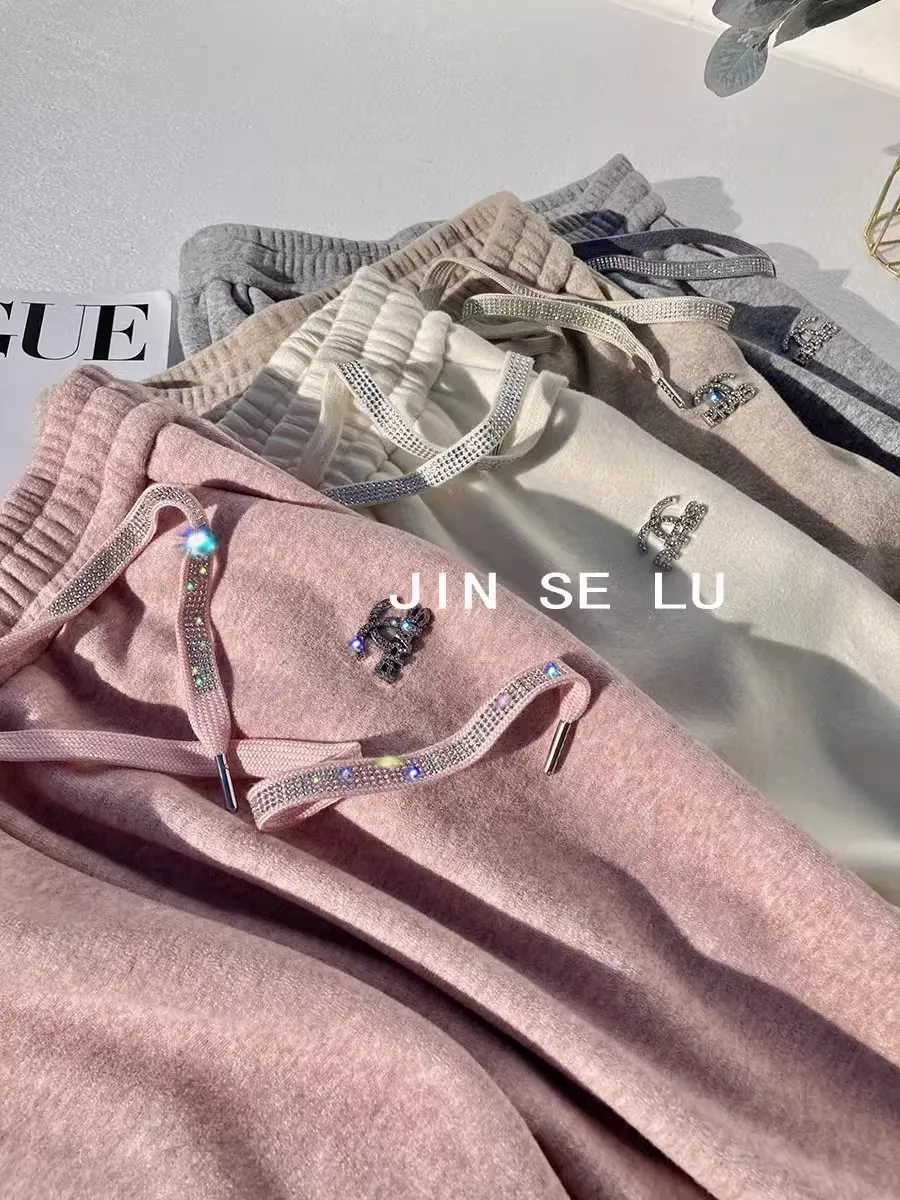 RM31800#高级感加厚加绒毛巾绒阔腿裤女冬季别致烫钻宽松慵懒风垂感休闲裤