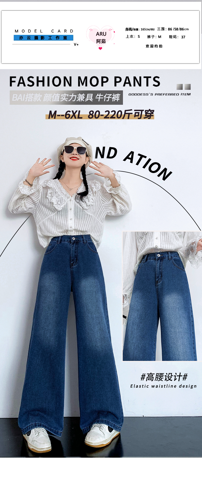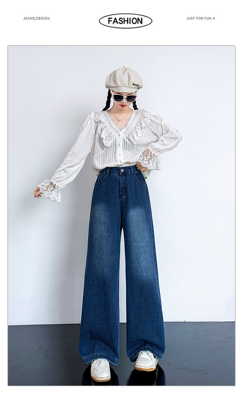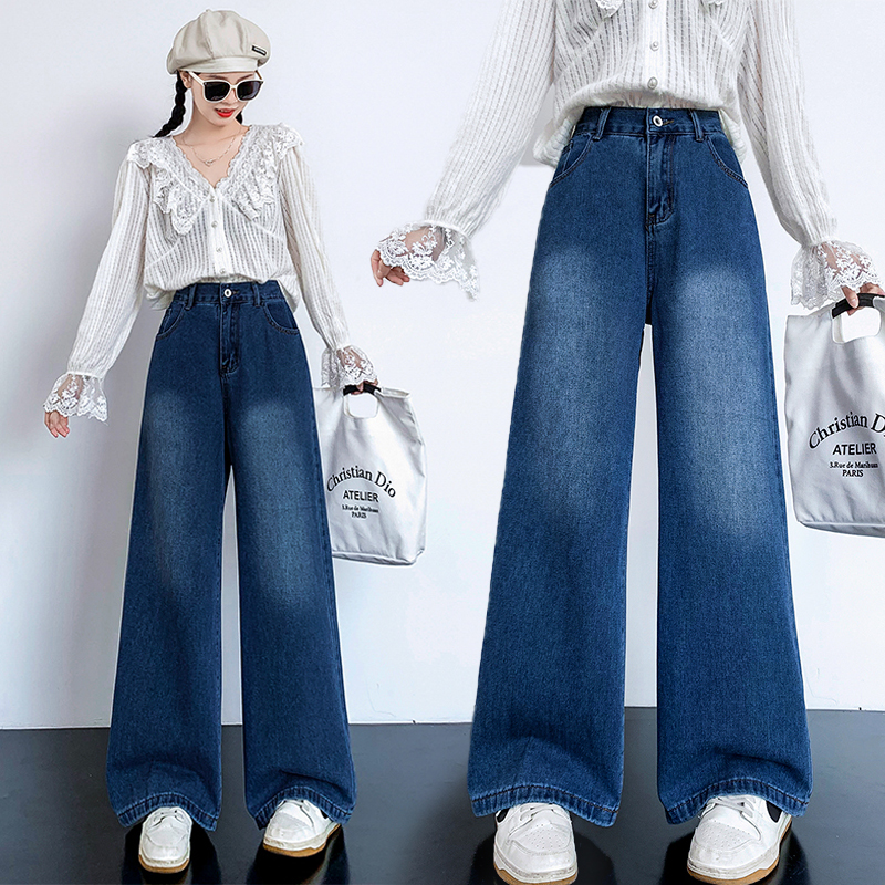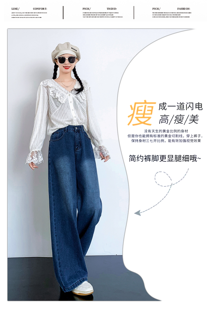 RM31811#新款高腰阔腿宽松显高显瘦牛仔裤大码女装胖妹妹230斤
