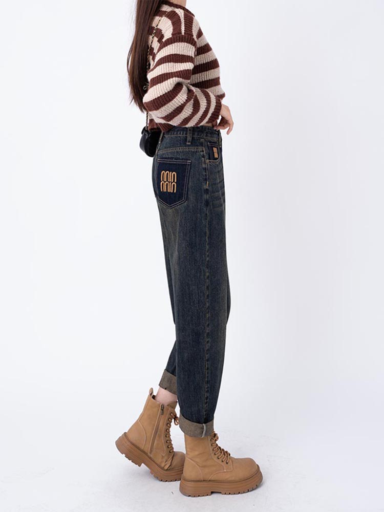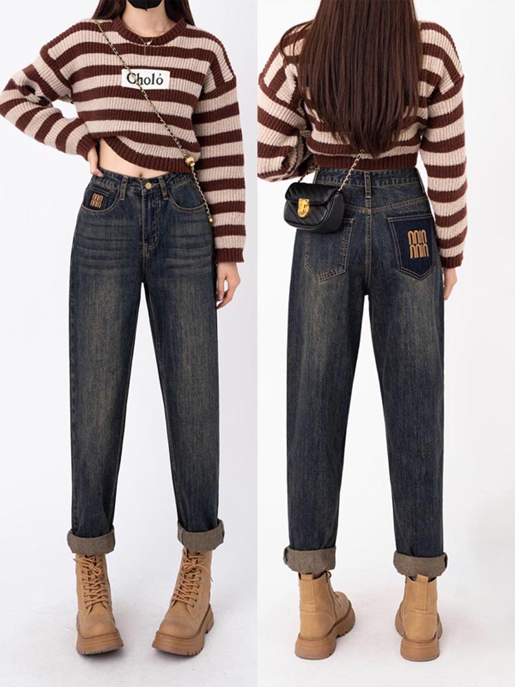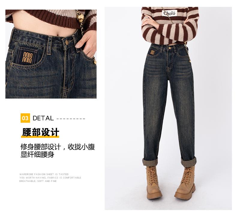 RM31812#哈伦牛仔裤子秋冬季女 新款宽松显瘦百搭设计感加绒加厚老爹裤