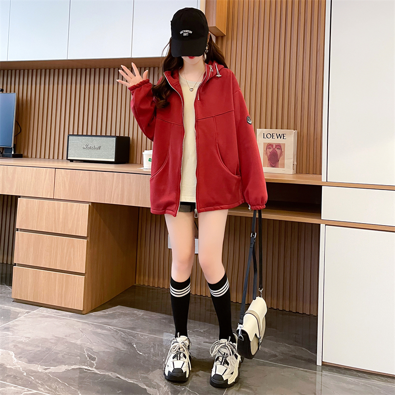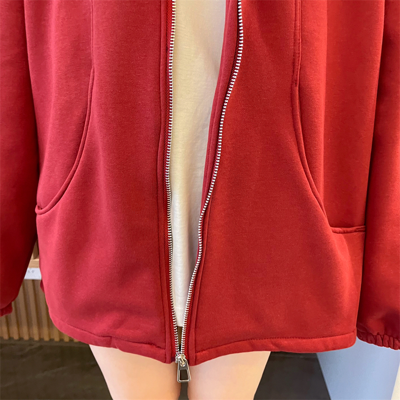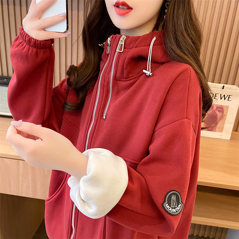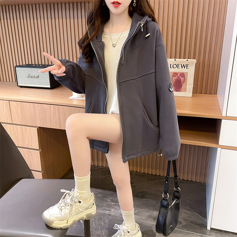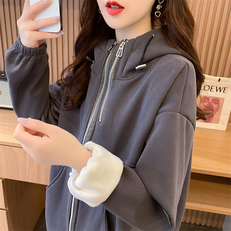 RM31820#华棉纯棉复合超柔 加绒加厚连帽卫衣女双拉链拼接抽绳外套潮