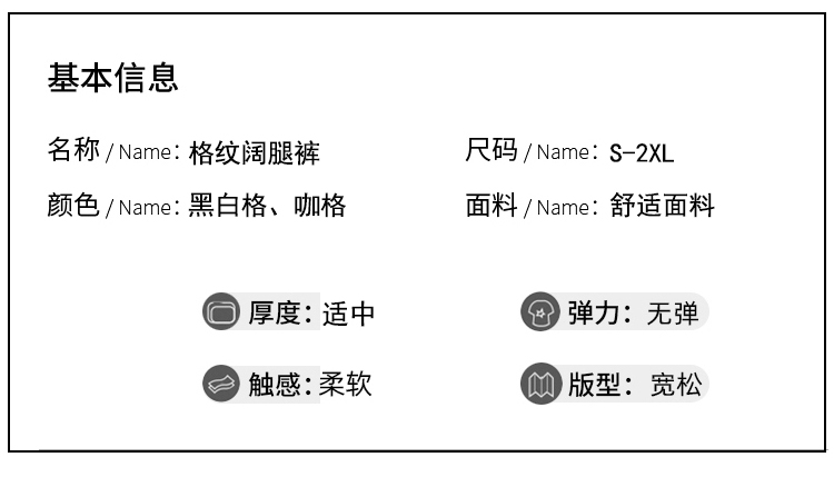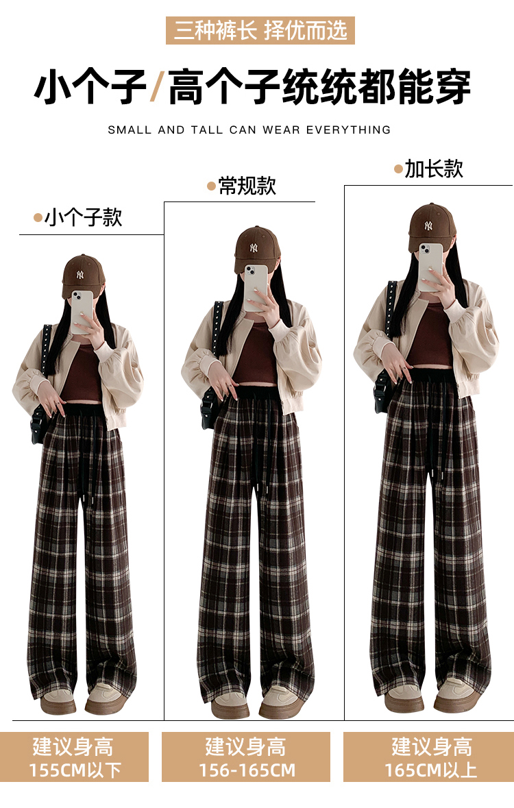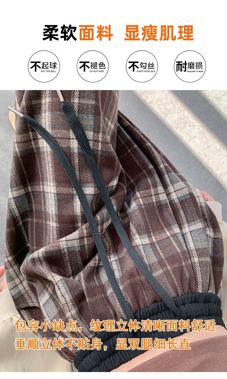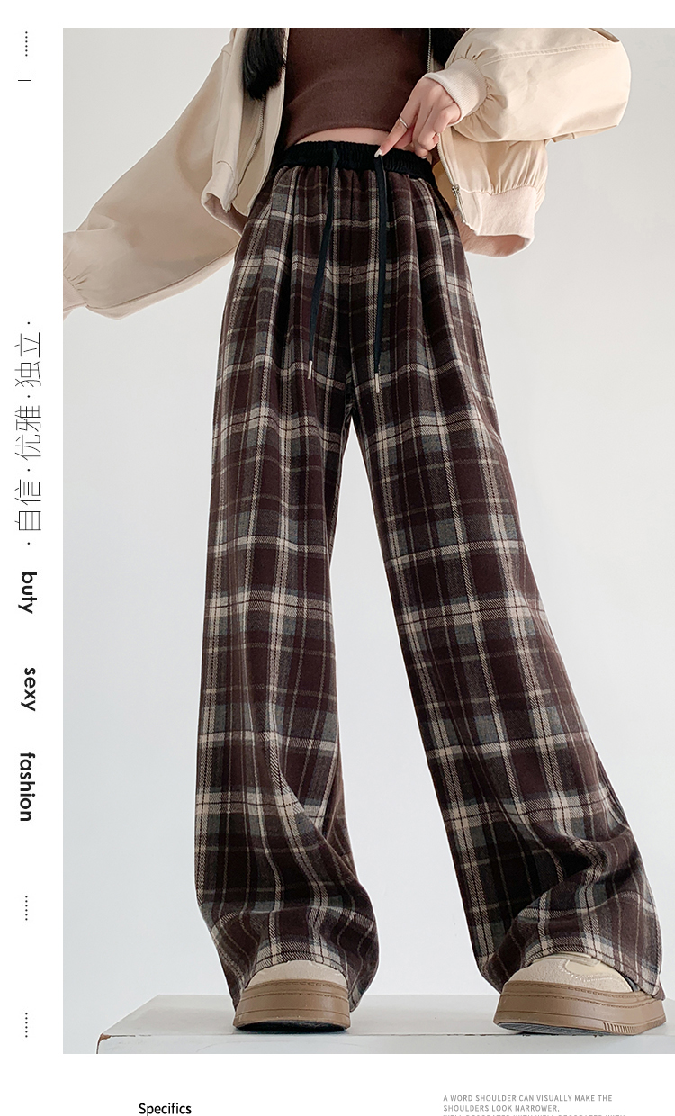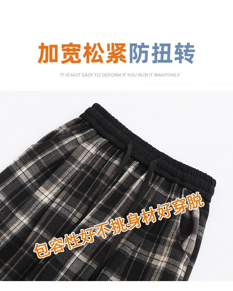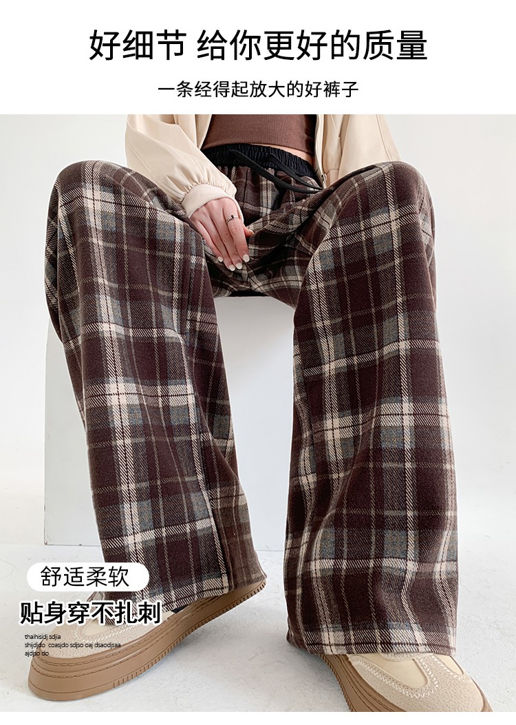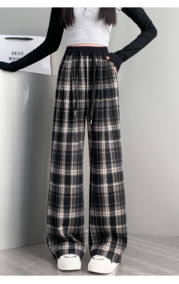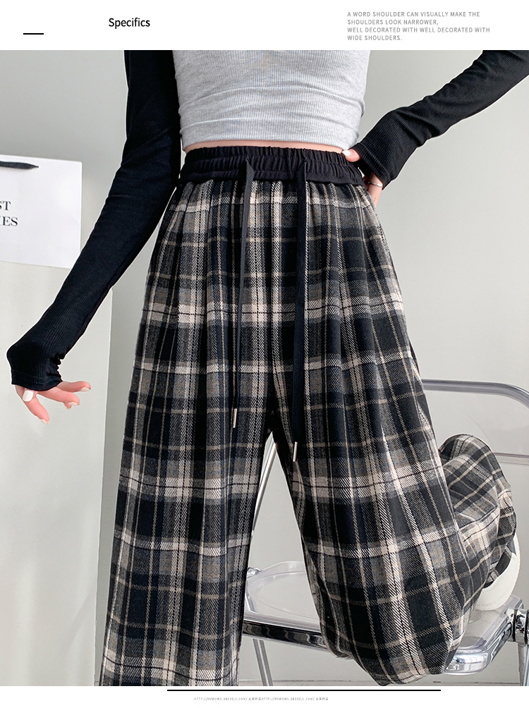 RM31836#撞色复古格子阔腿裤女百搭宽松显瘦休闲直筒裤垂感拖地裤