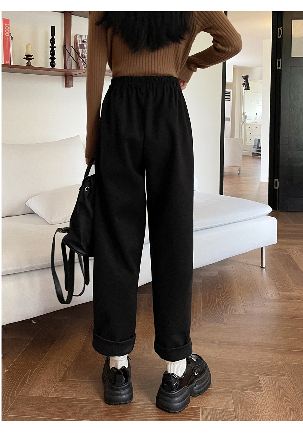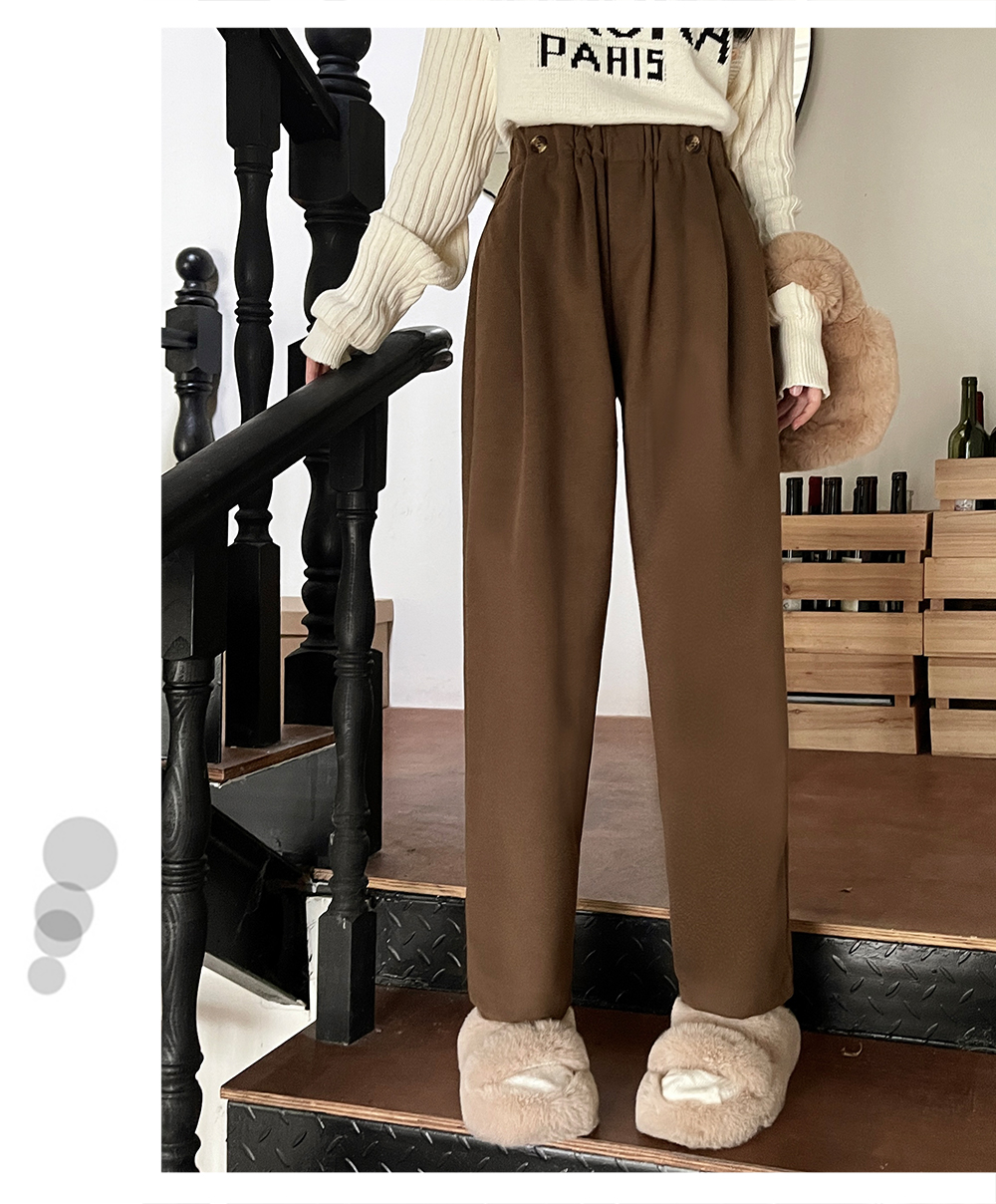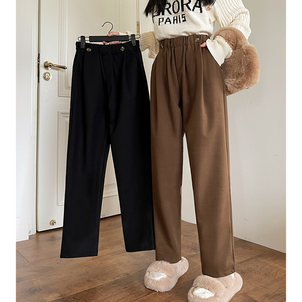 RM31842#大码女装 新款毛呢长裤显瘦哈伦裤胖MM休闲百搭阔腿裤