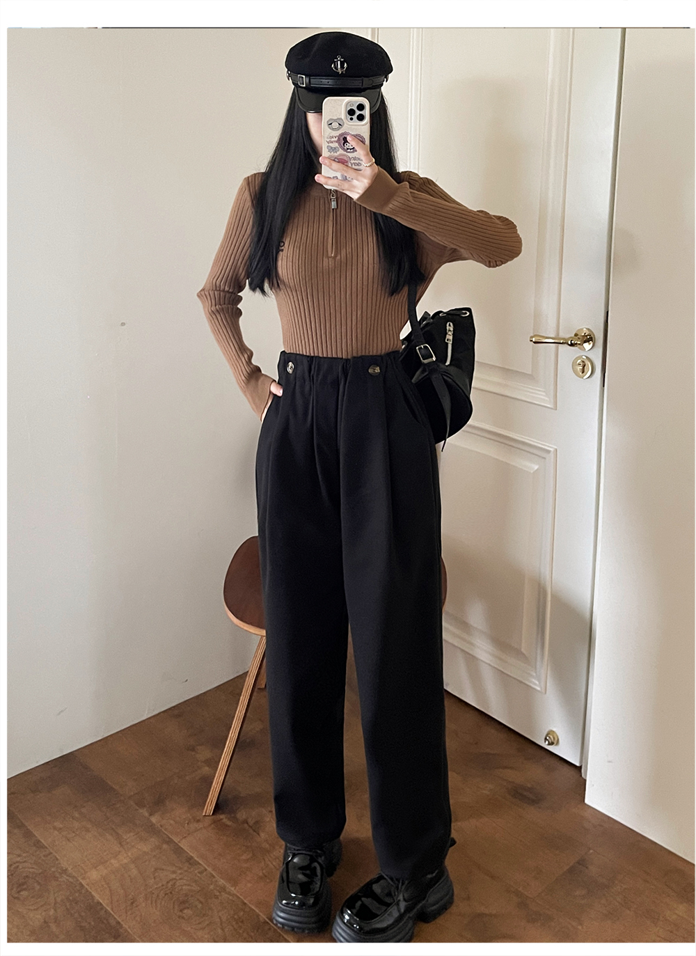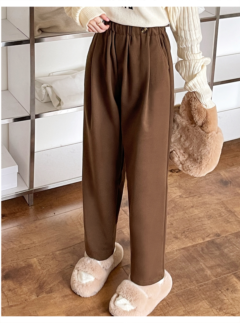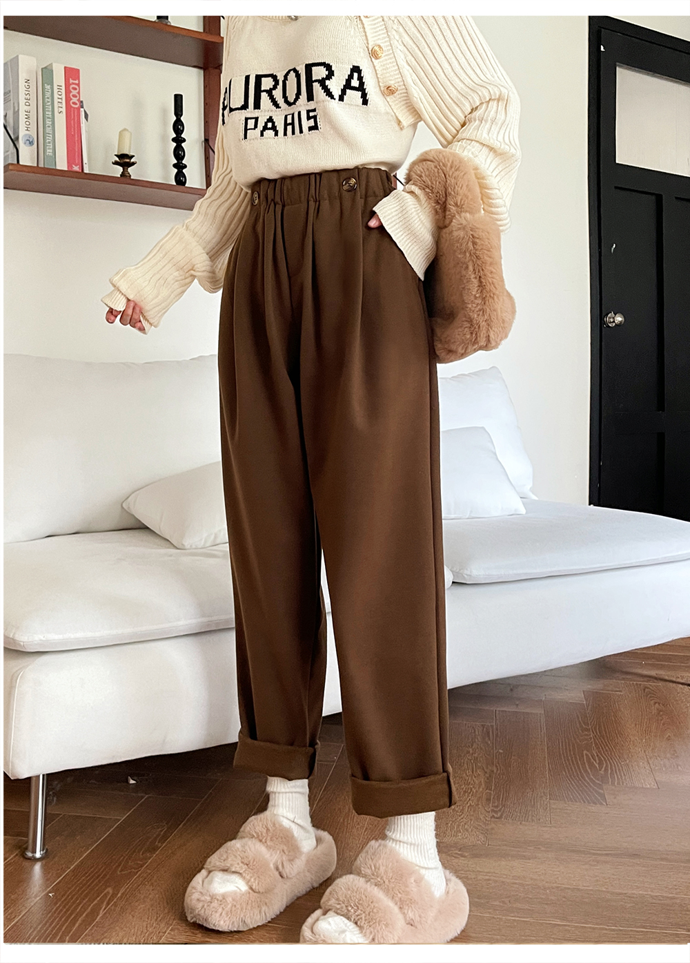RM31842#大码女装 新款毛呢长裤显瘦哈伦裤胖MM休闲百搭阔腿裤