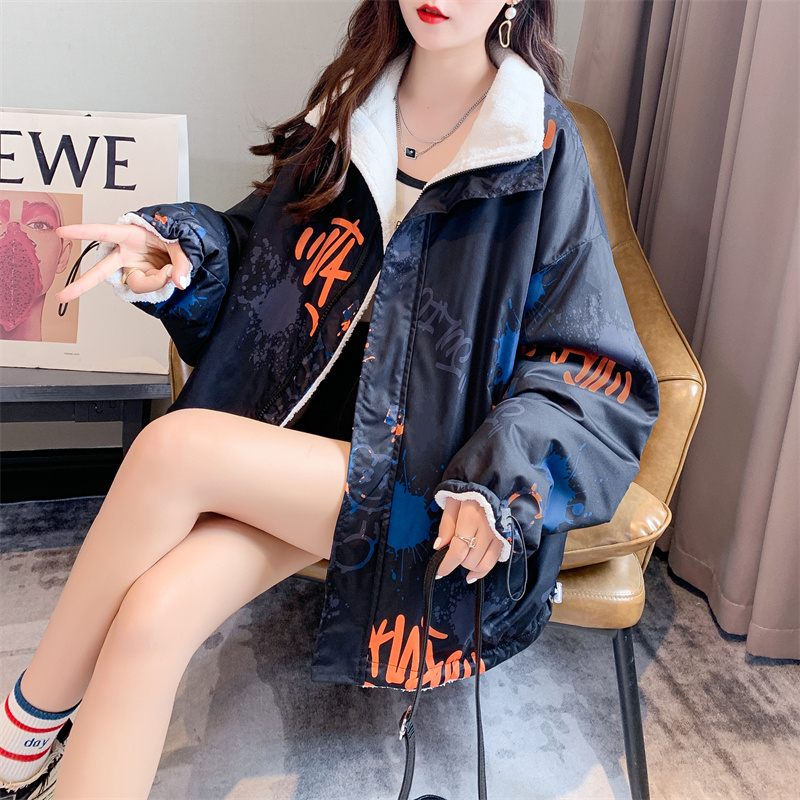 RM31934#大码女装两面穿100聚酯纤维 新款设计感反穿加绒加厚外套女
