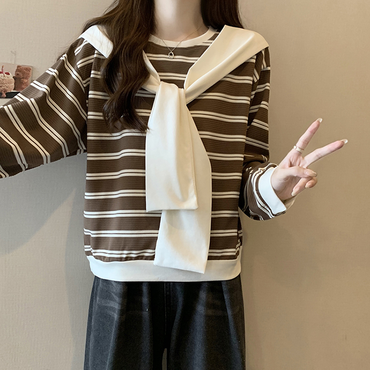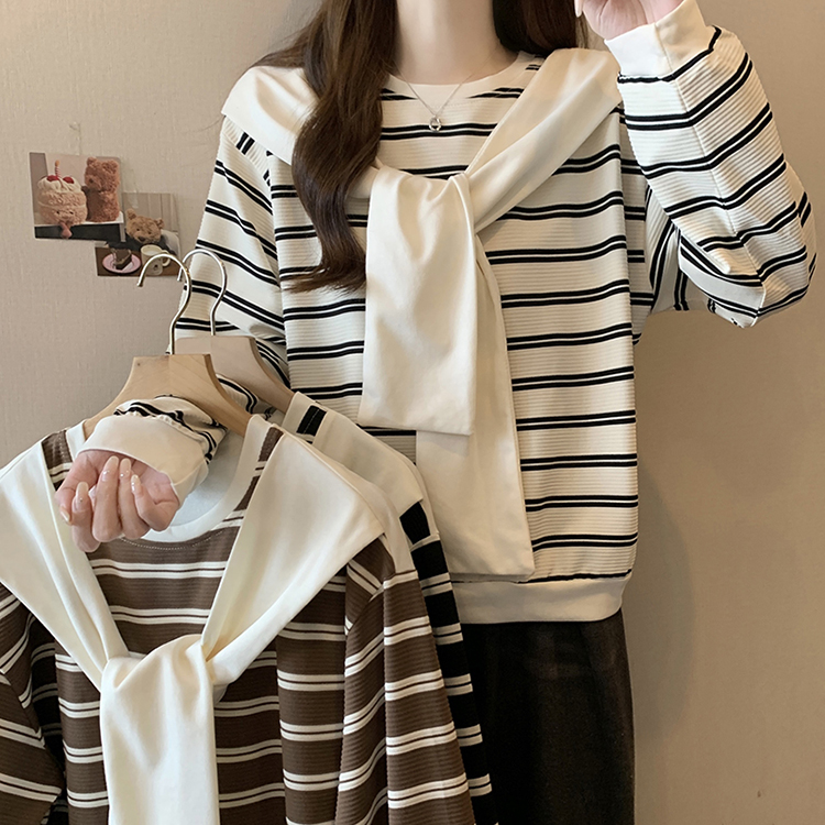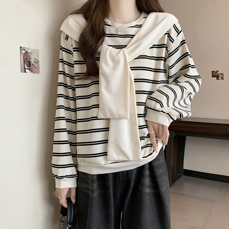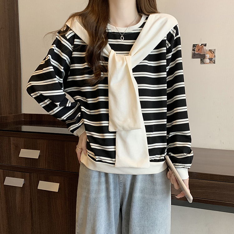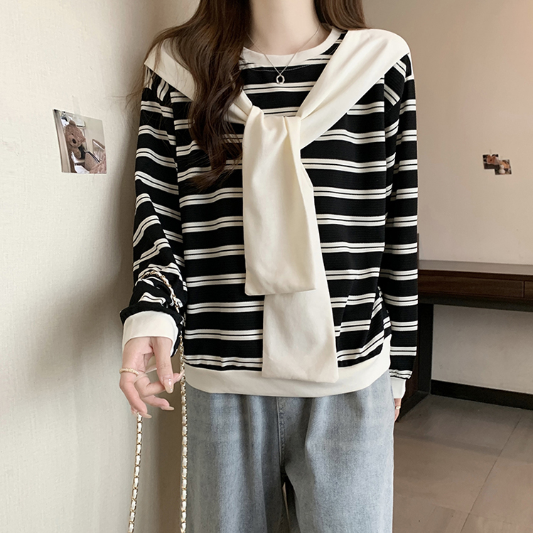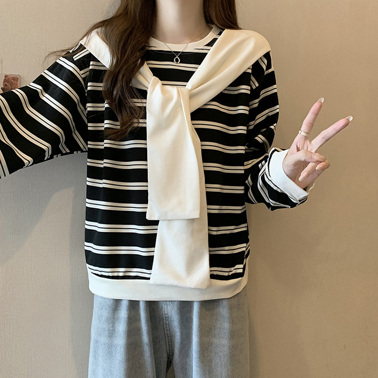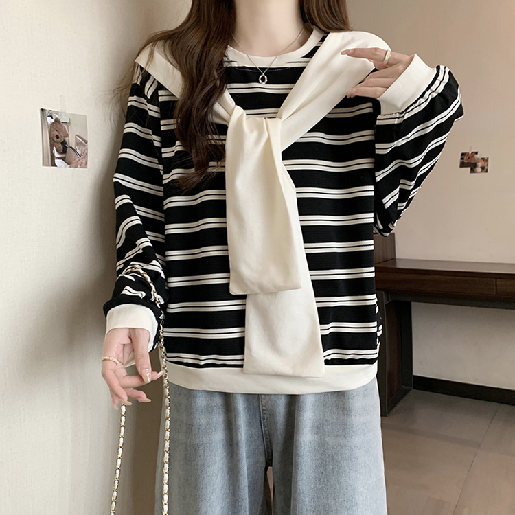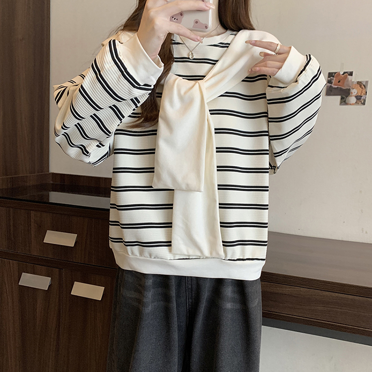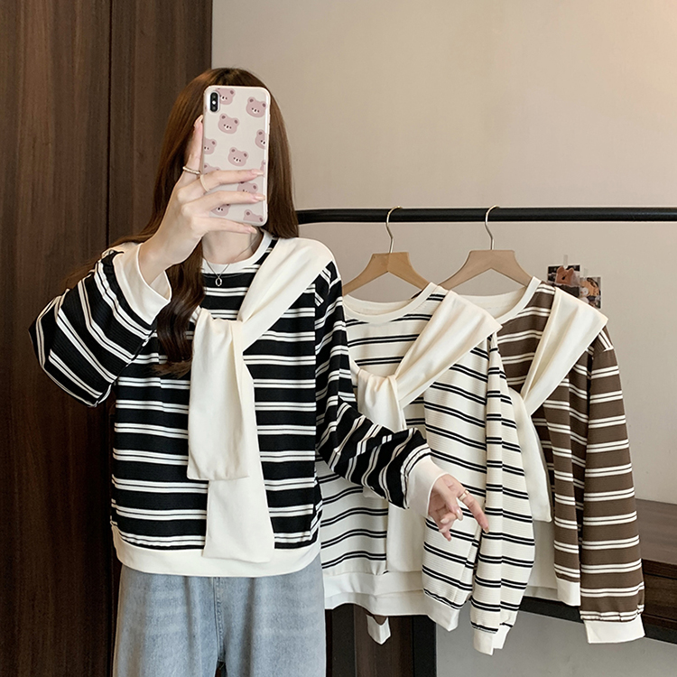 RM31940#新款胖mm辣妹百搭别致学院风设计感条纹假两件卫衣