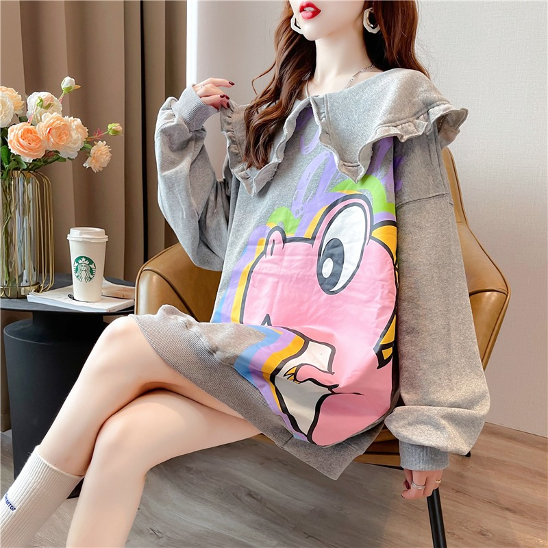 RM31952#鱼鳞设计感卫衣女中长款春秋装大码薄款上衣外套潮