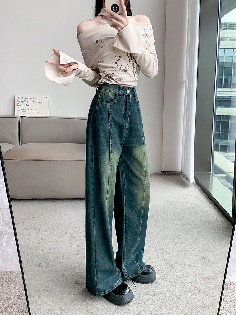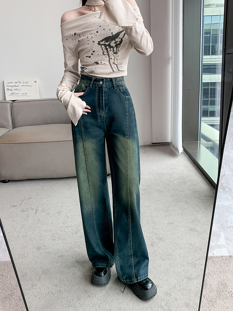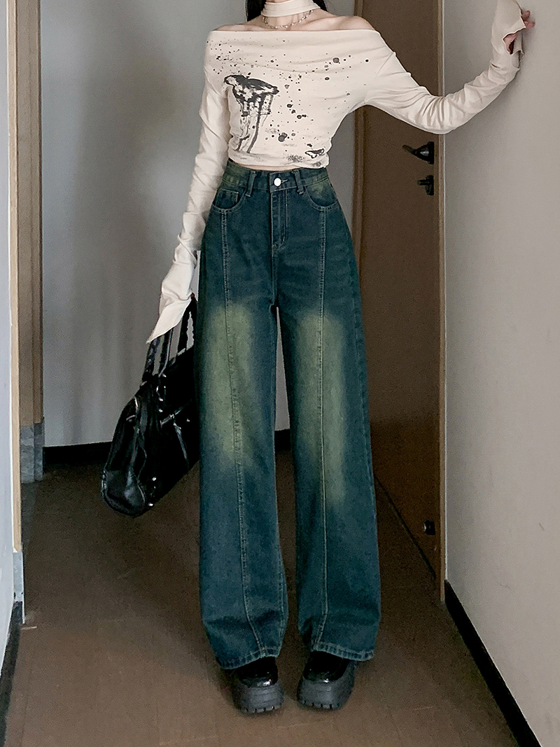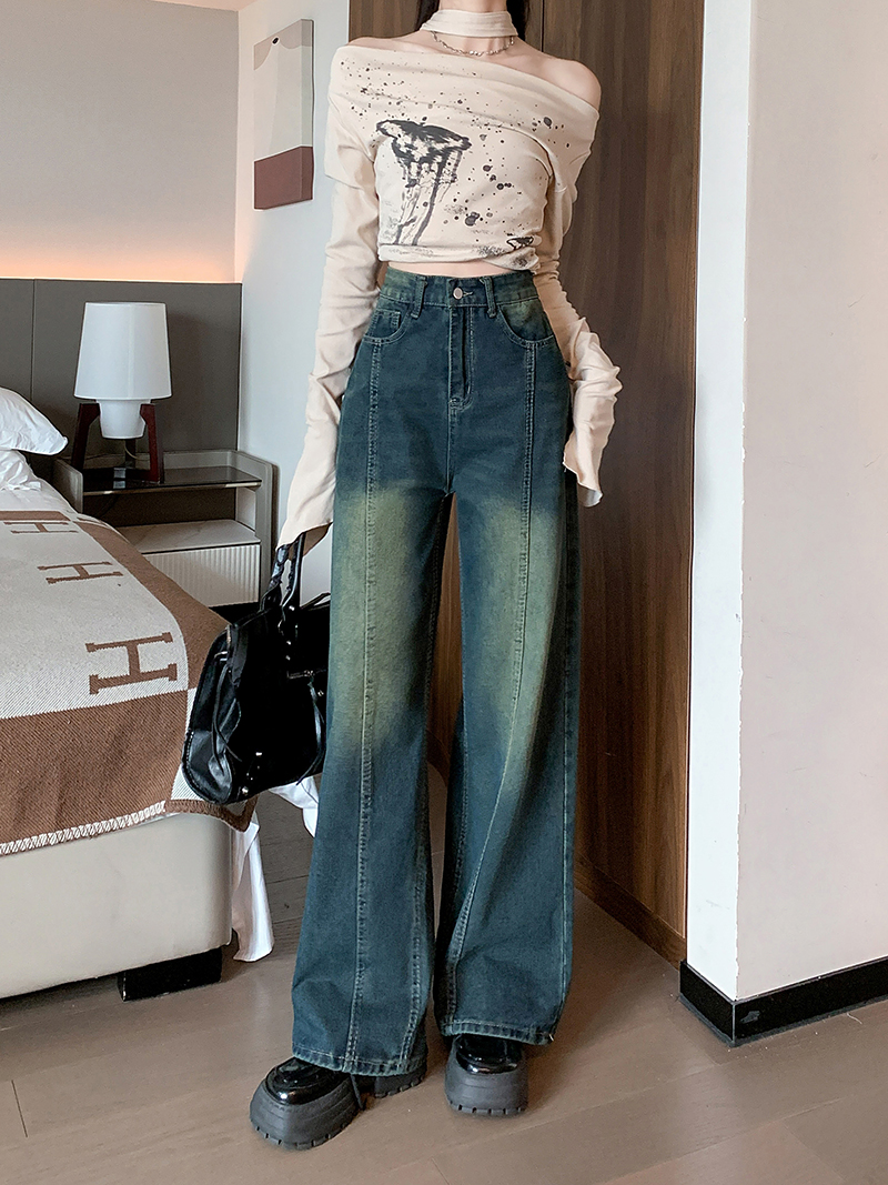 RM32096#新款设计感牛仔裤女高腰宽松阔腿高街直筒裤子ins潮