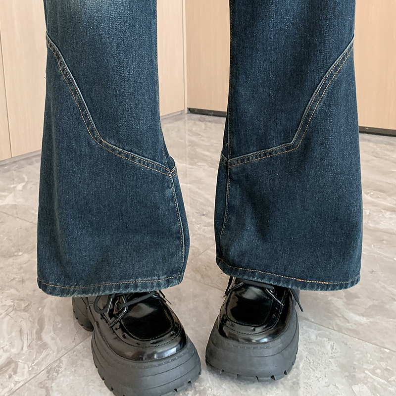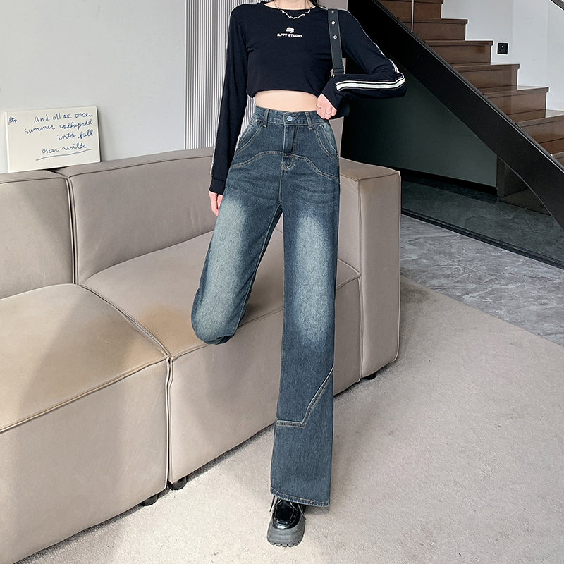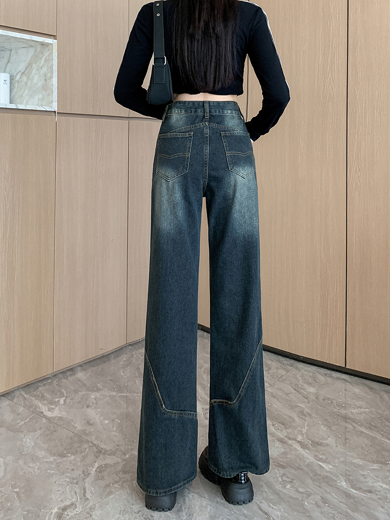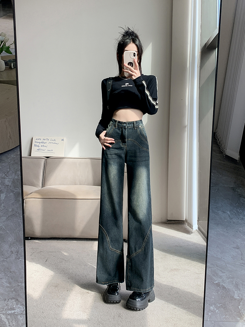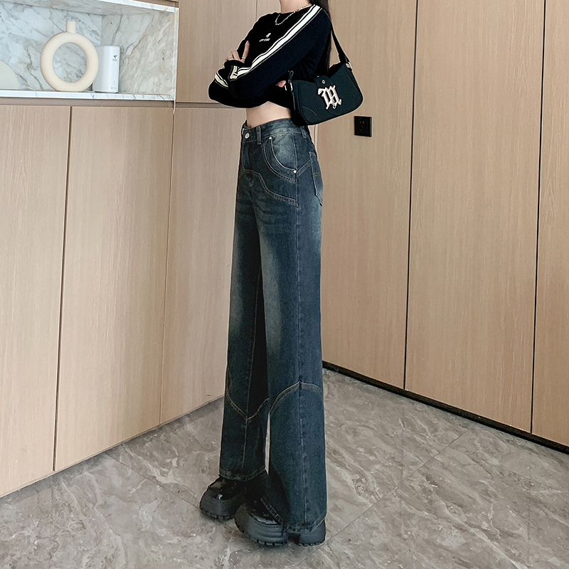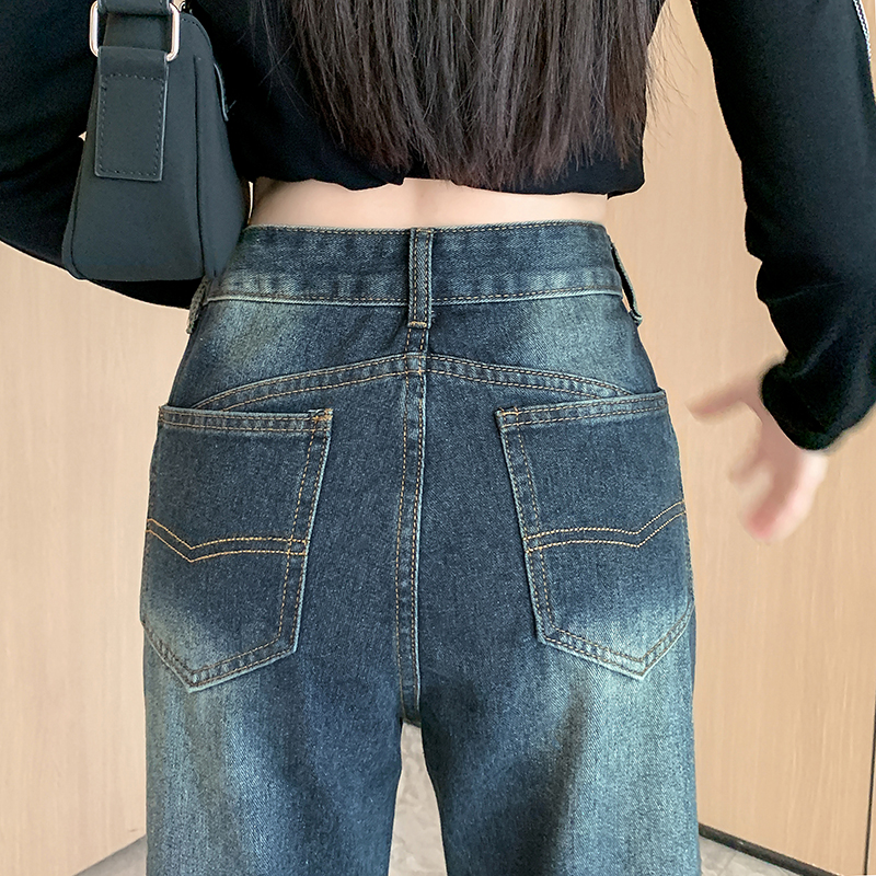RM32102#复古牛仔裤女秋季辣妹高街设计感高腰显瘦宽松阔腿裤子