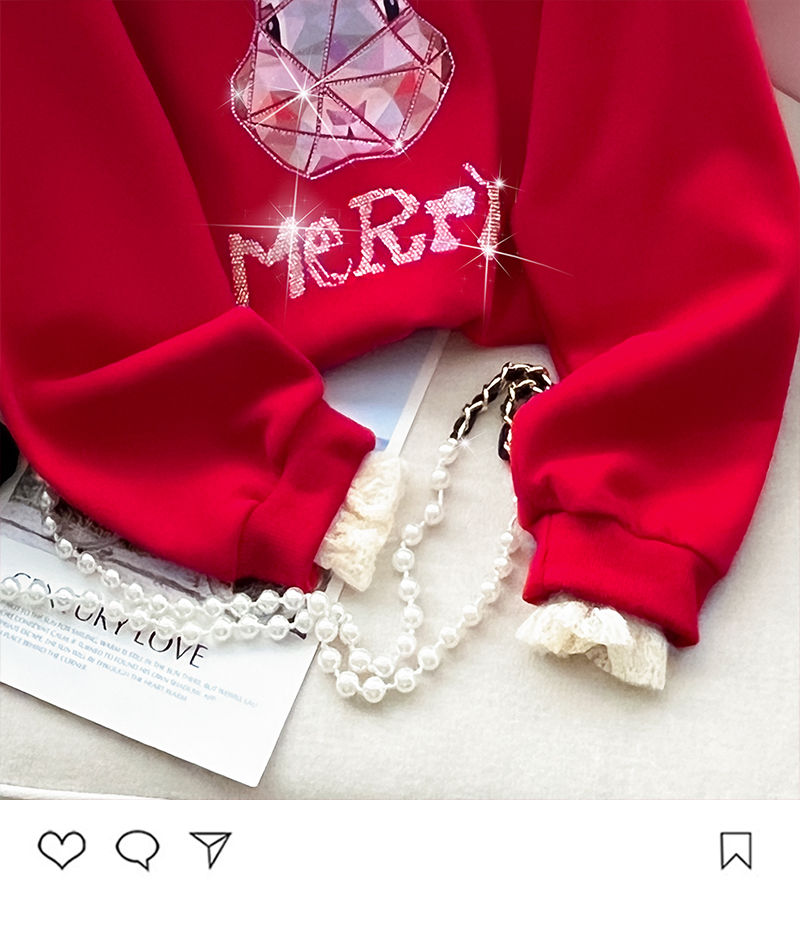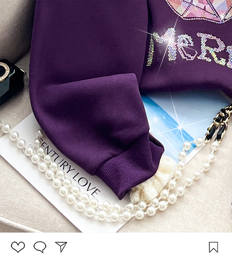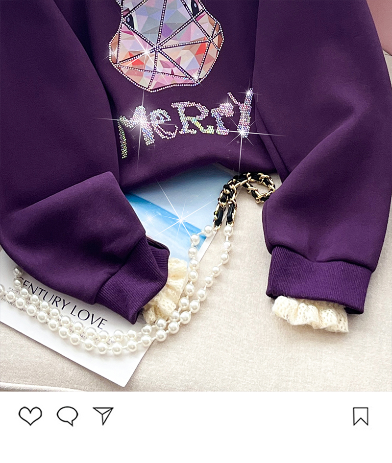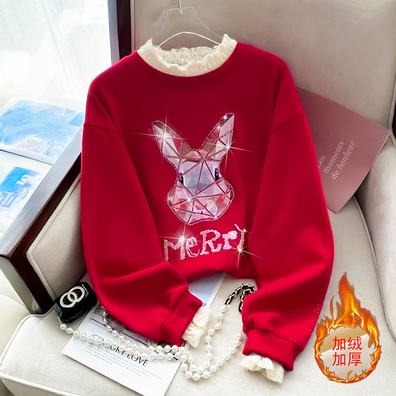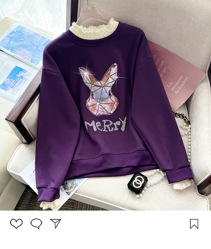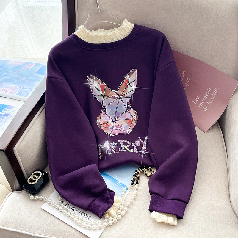RM32176#新款蕾丝半高领假两件加绒卫衣重工烫钻打底上衣