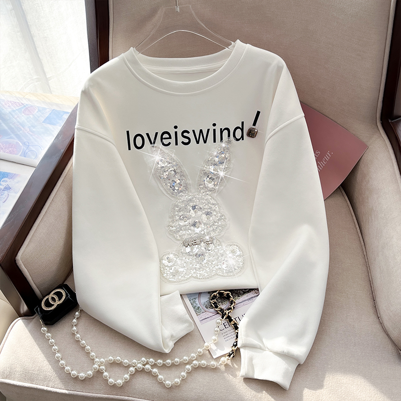 RM32179#超美重工镶钻钉珠兔子潮牌卫衣女长袖套头休闲上衣宽松