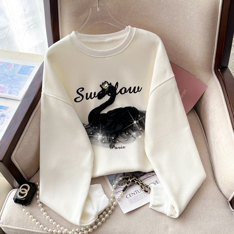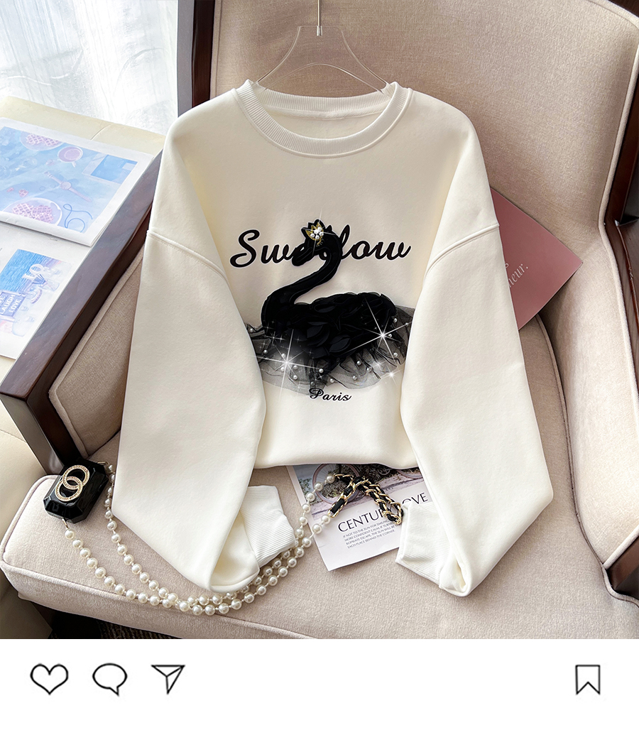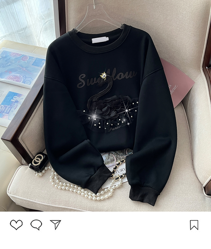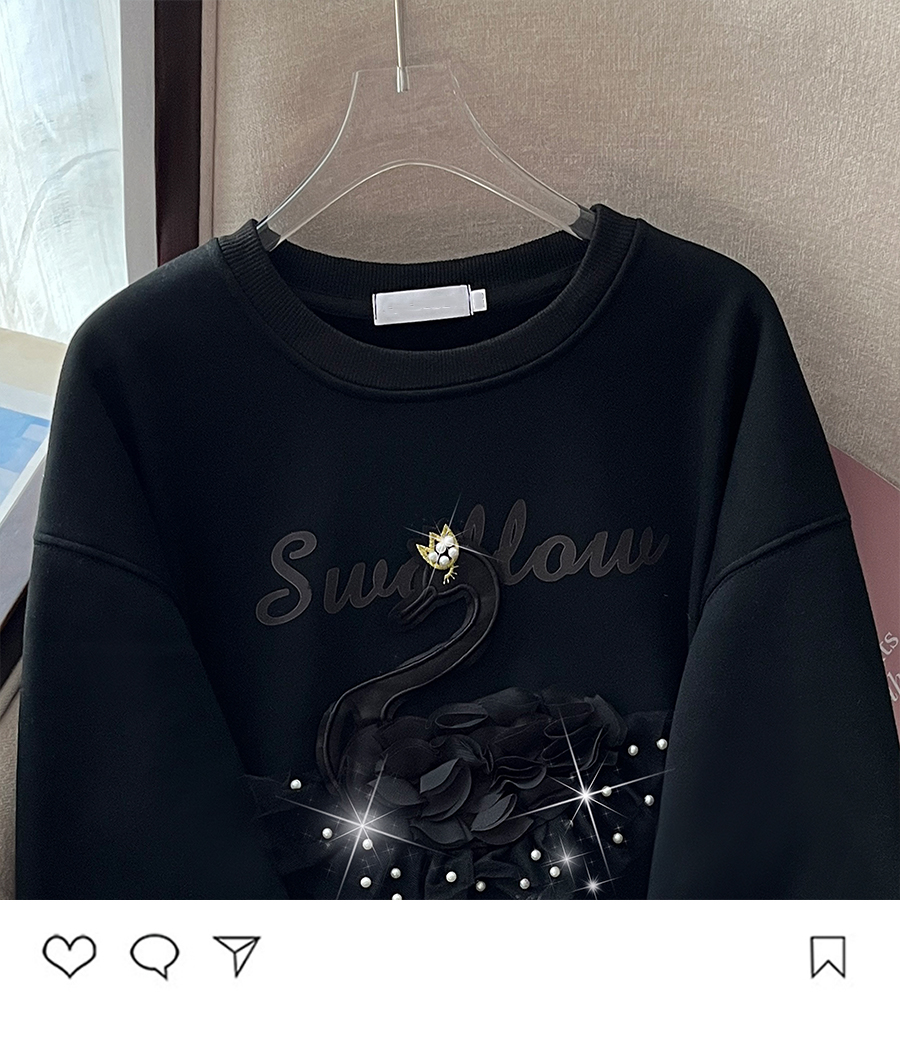 RM32180#新款重工钉珠韩版卫衣女圆领宽松套头上衣