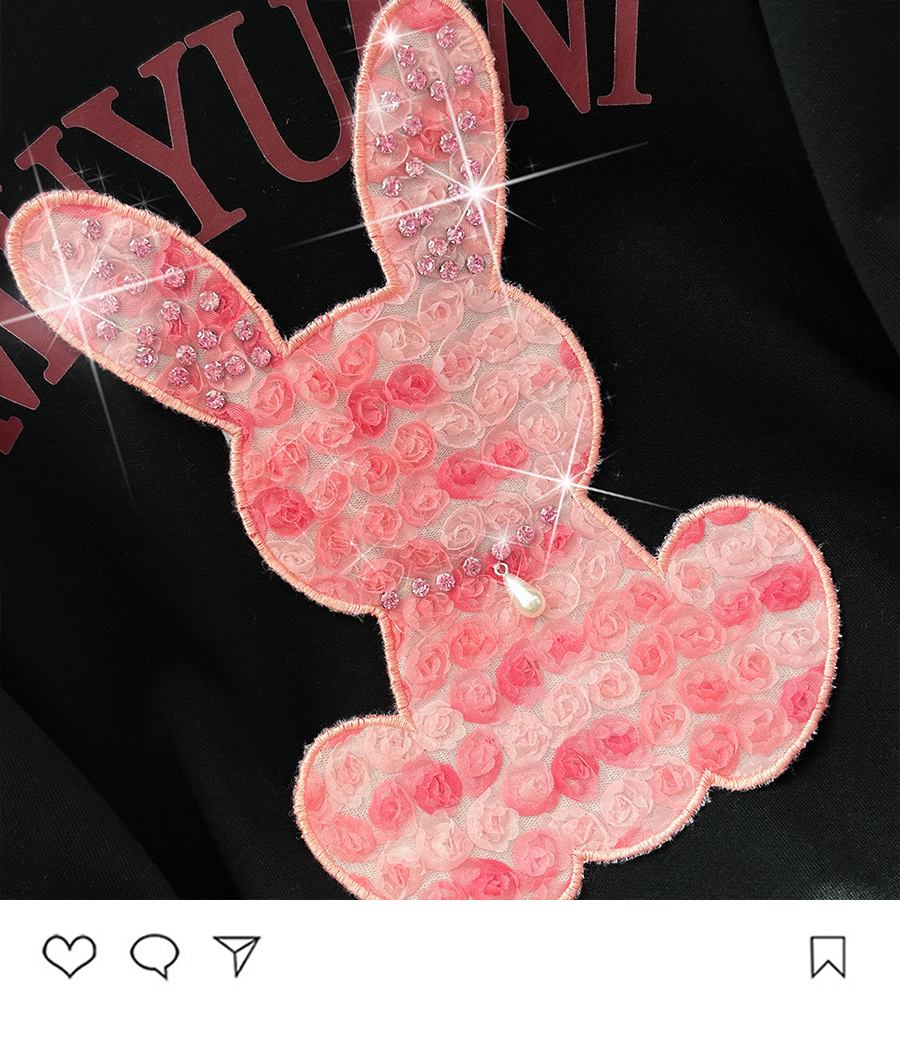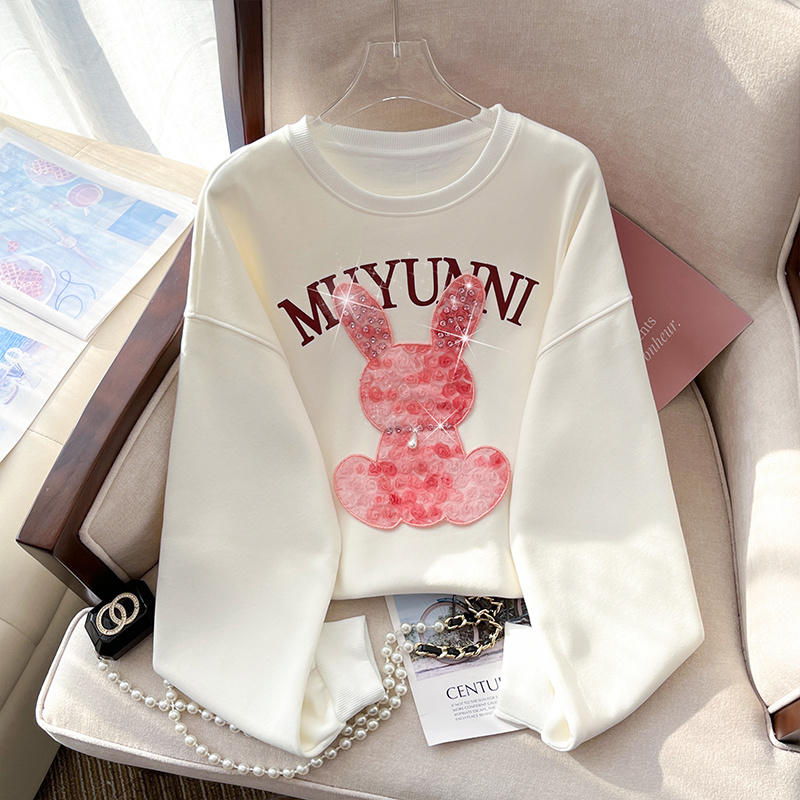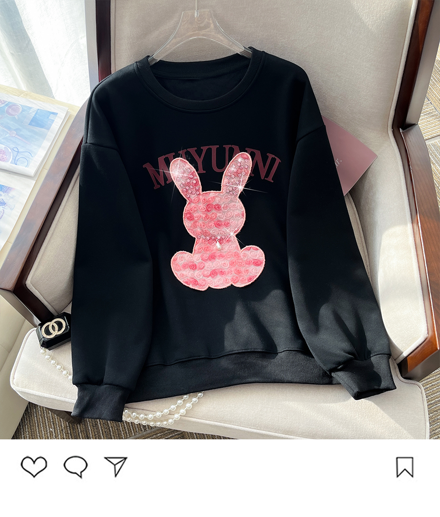 RM32181#新款重工钉珠玫瑰小兔百搭休闲宽松卫衣女潮牌