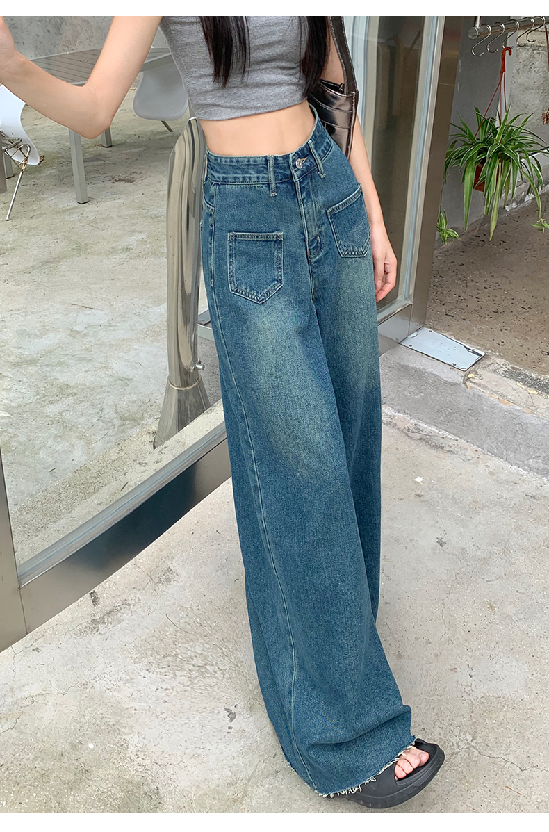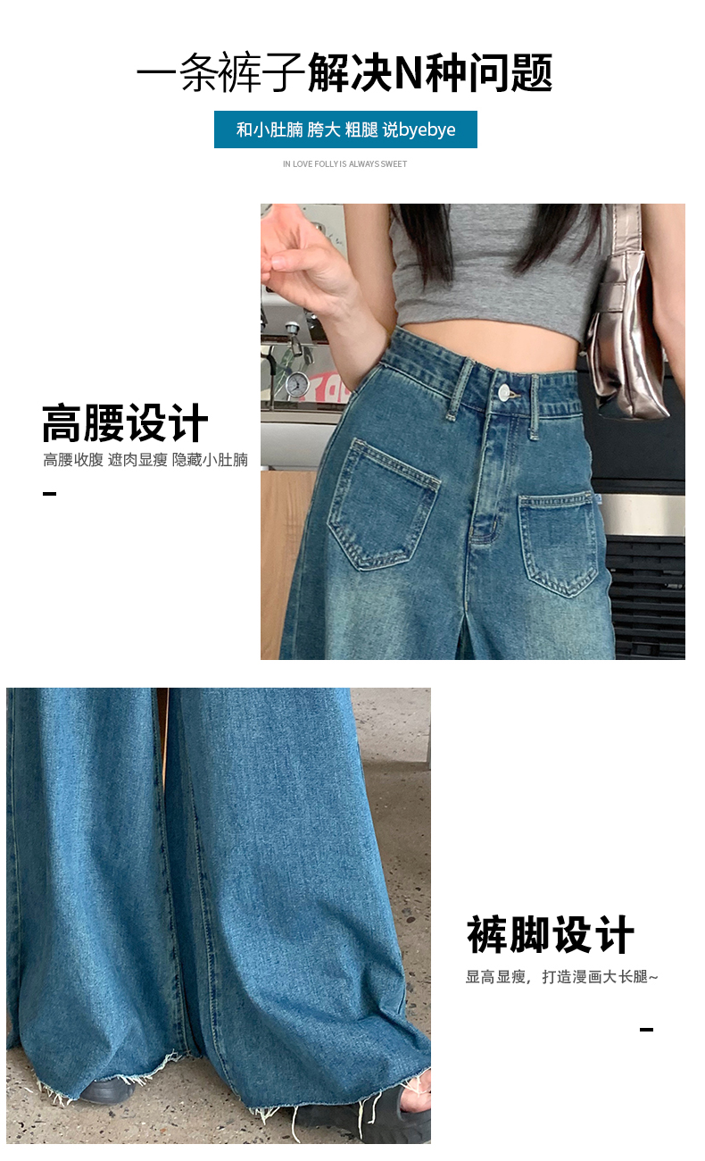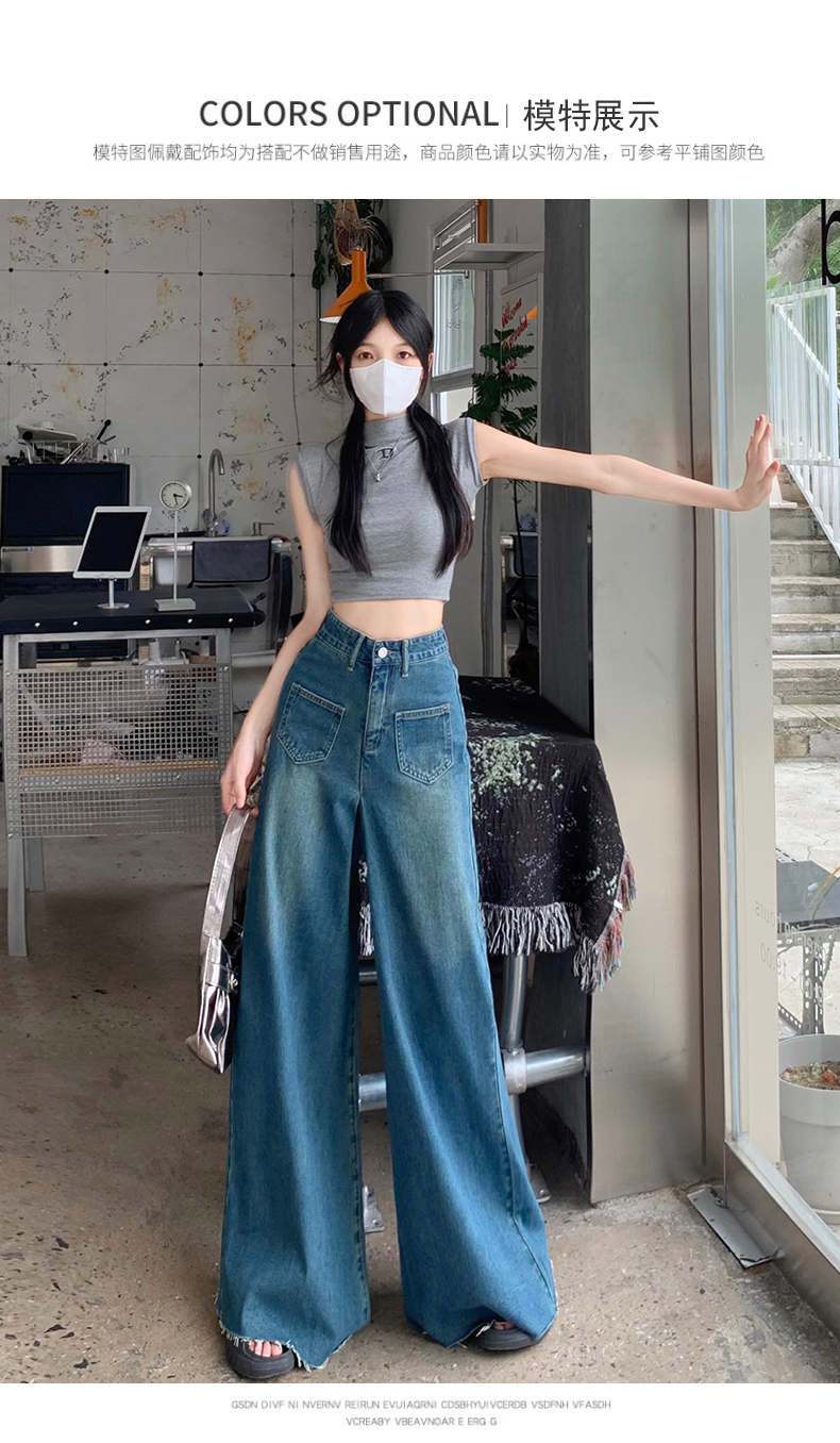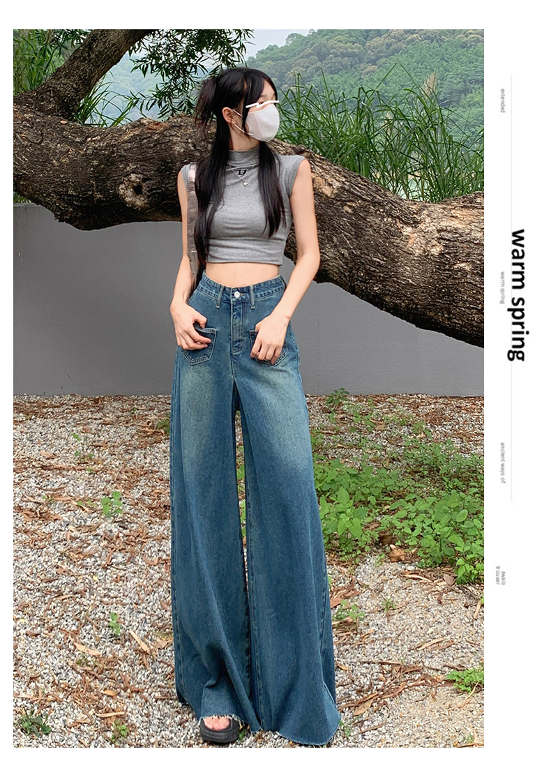 RM32183#复古阔腿牛仔裤裙女春季新款高腰显瘦设计感毛边宽松喇叭裤子