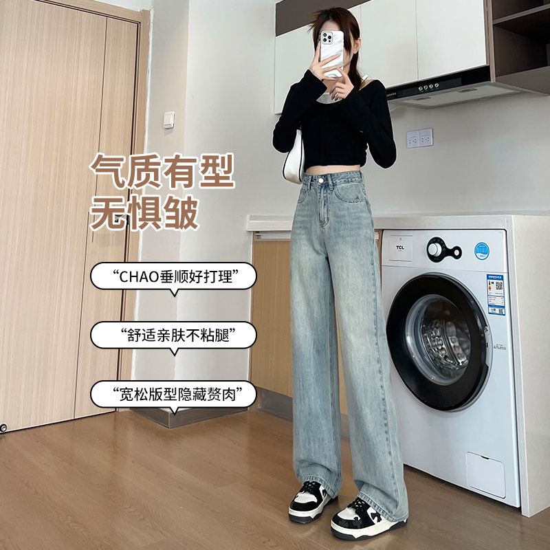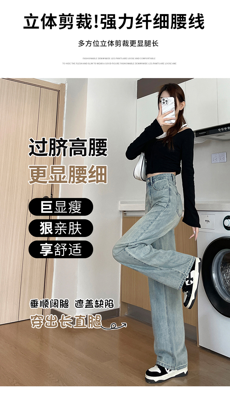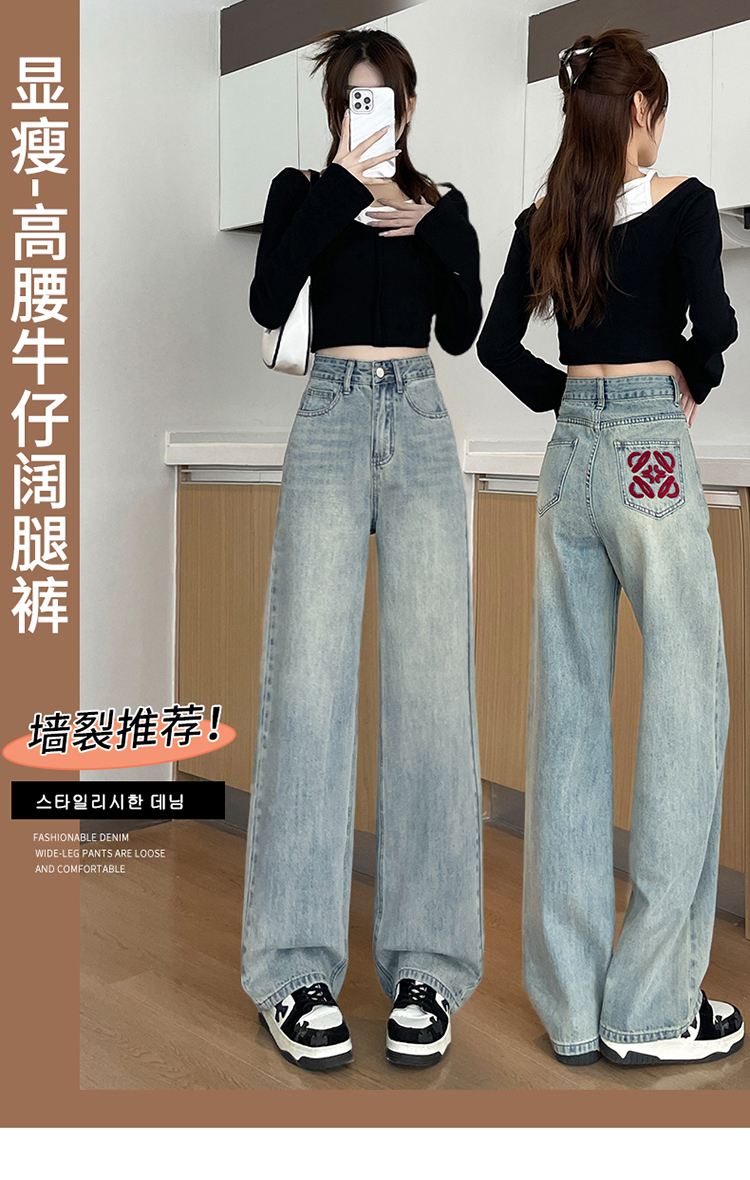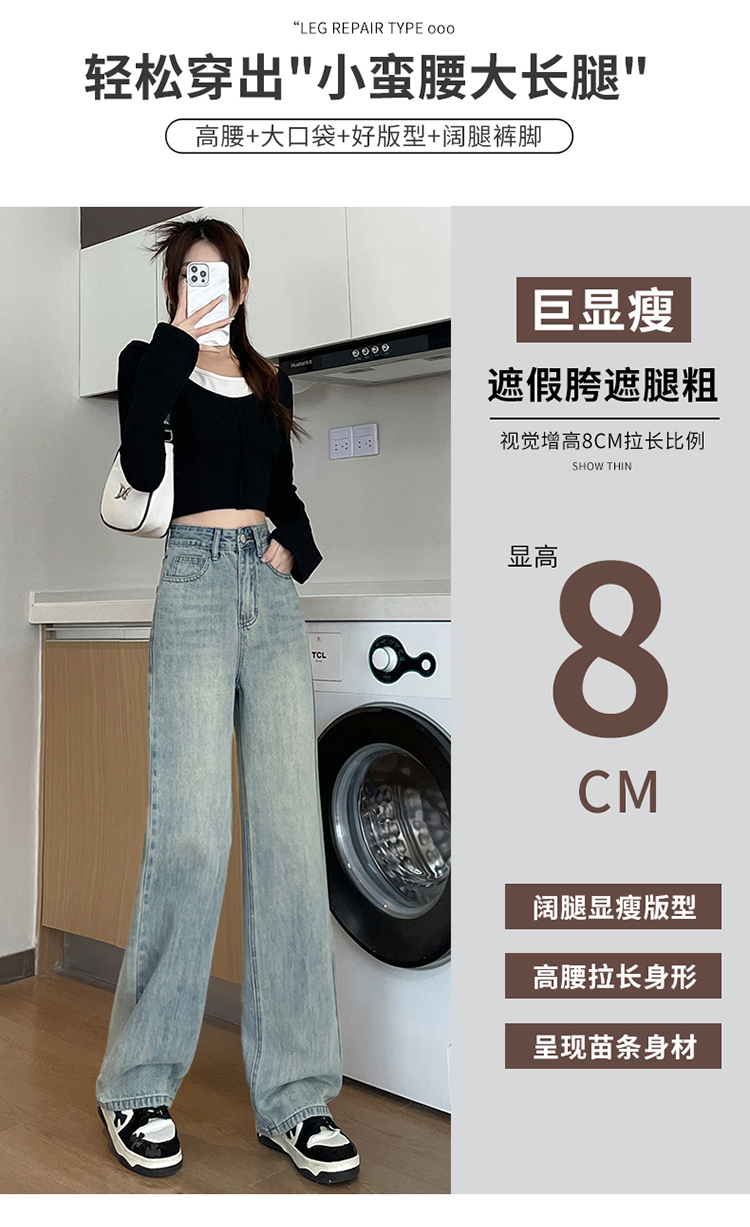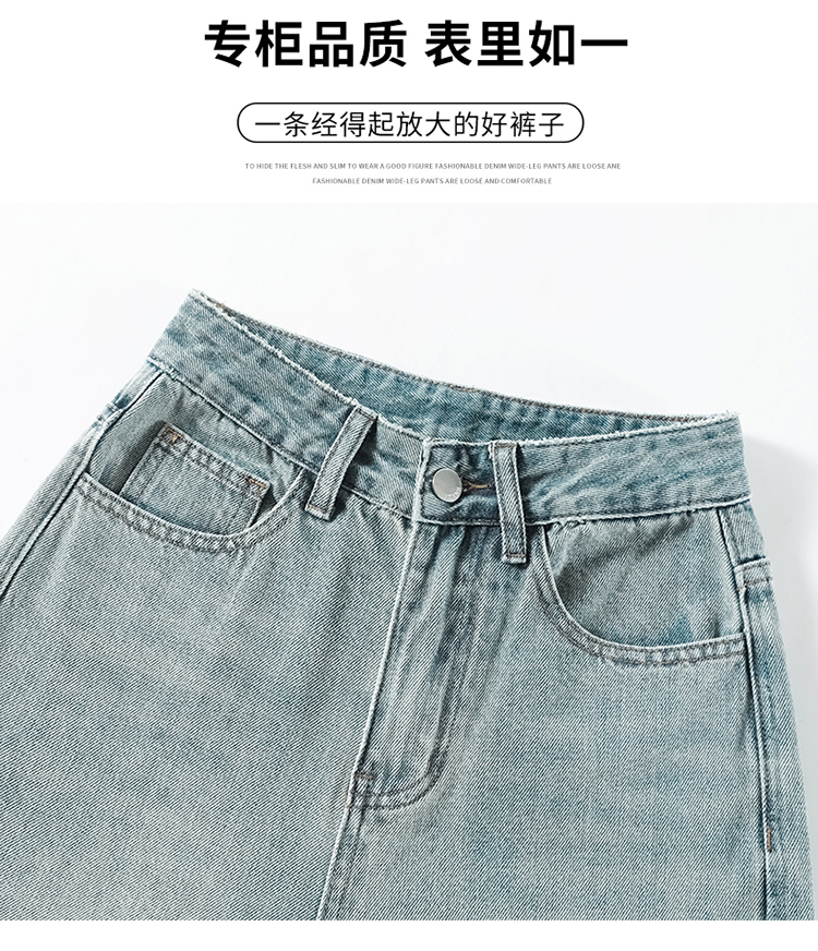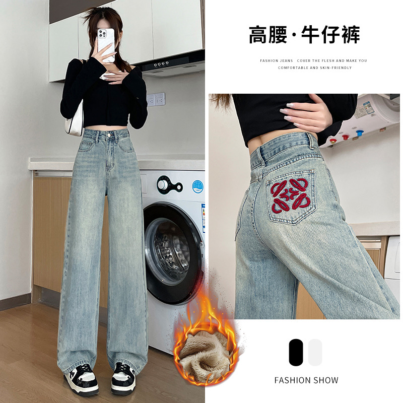 RM32196#加绒牛仔裤女 新款显瘦浅色宽松设计感直筒阔腿裤子女