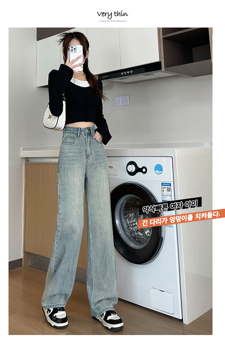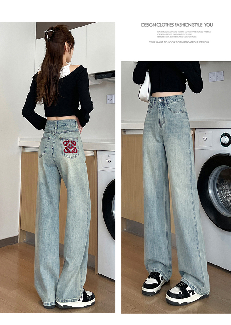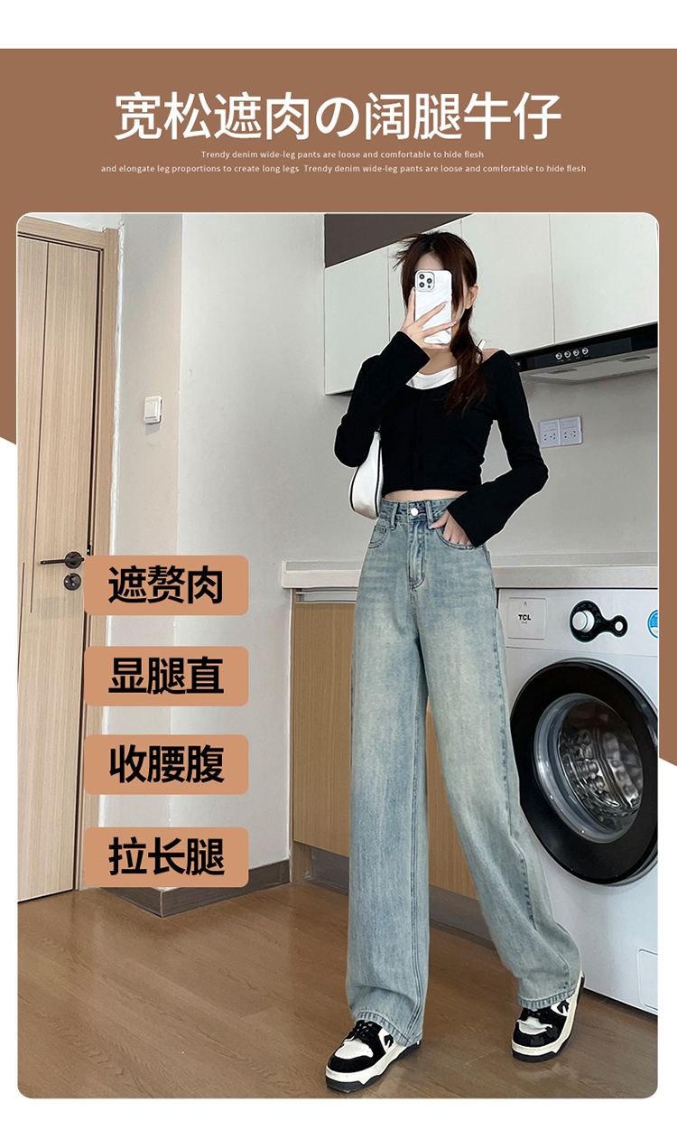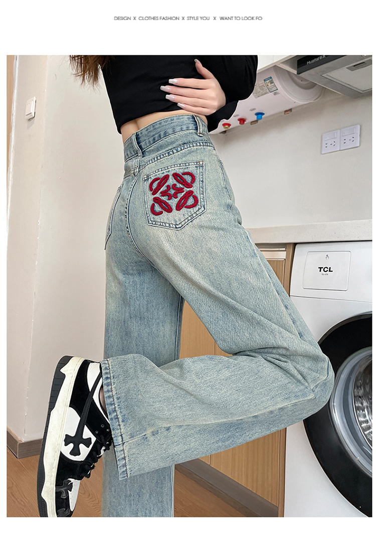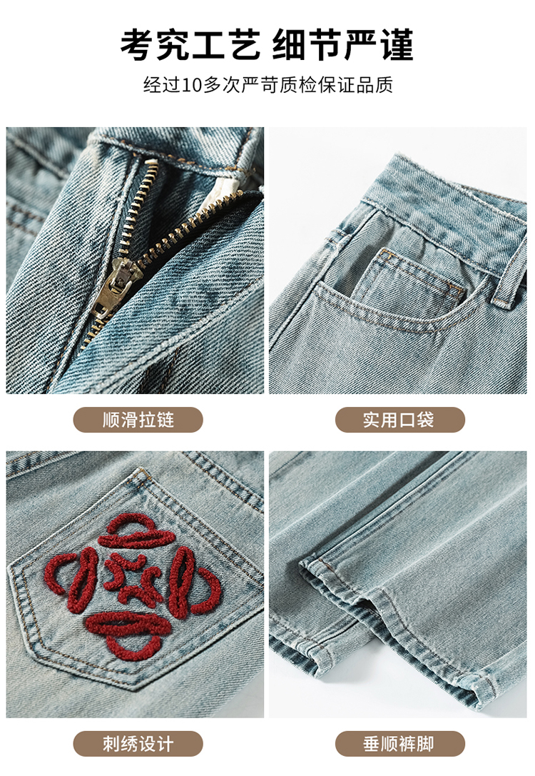 RM32196#加绒牛仔裤女 新款显瘦浅色宽松设计感直筒阔腿裤子女