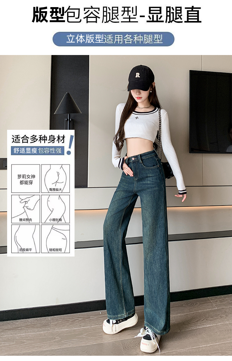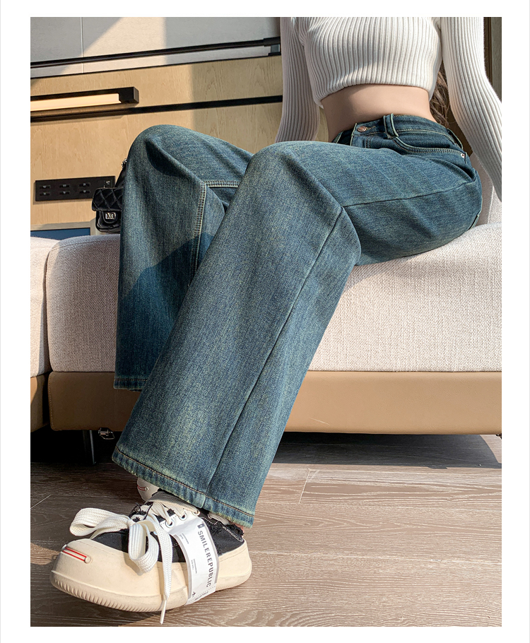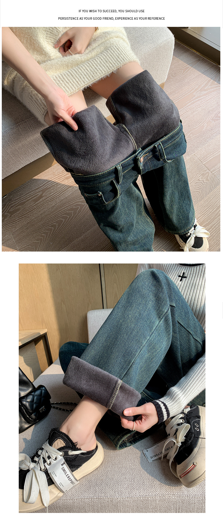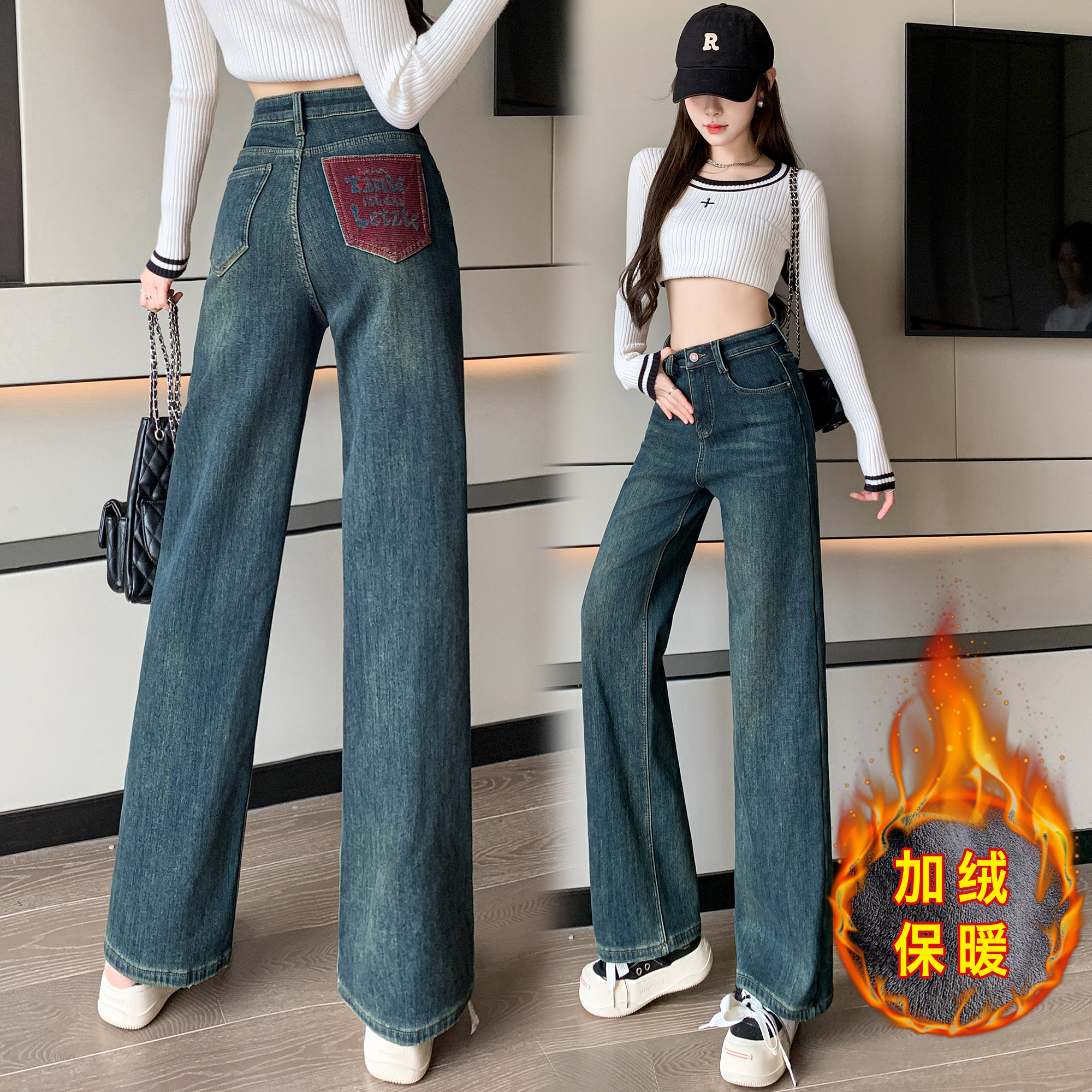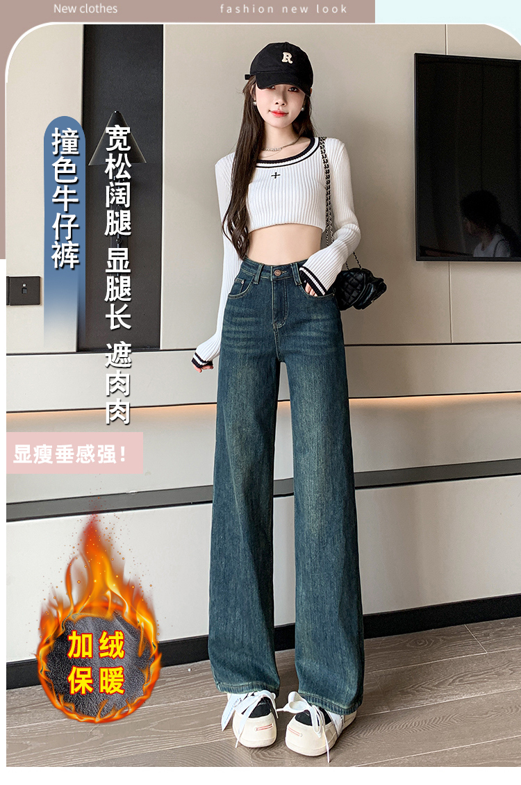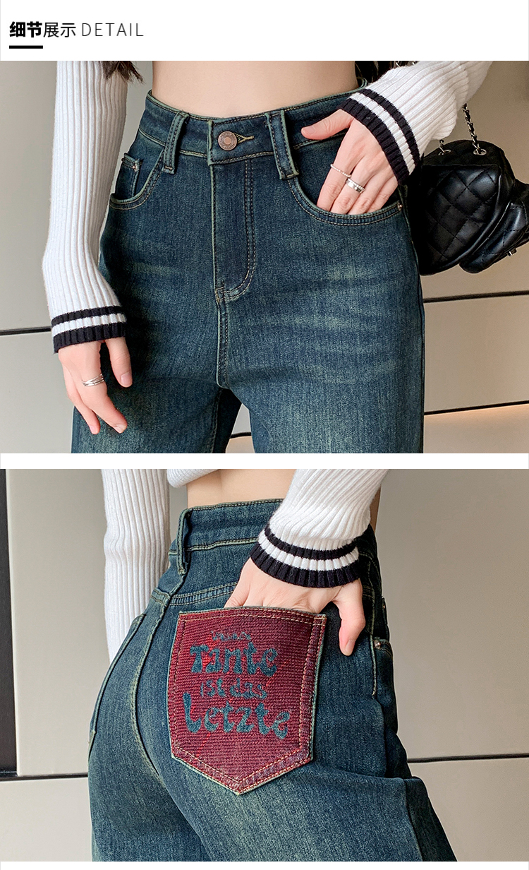 RM32197#加绒加厚一条过冬牛仔裤哈伦裤高腰弹力显瘦萝卜老爹裤男友裤
