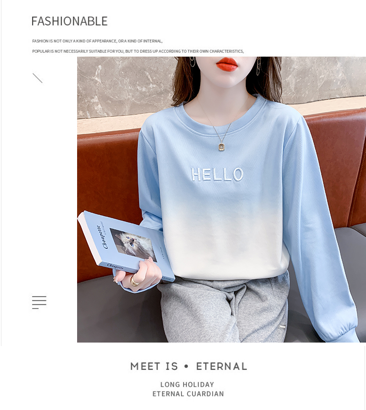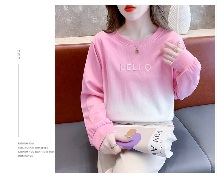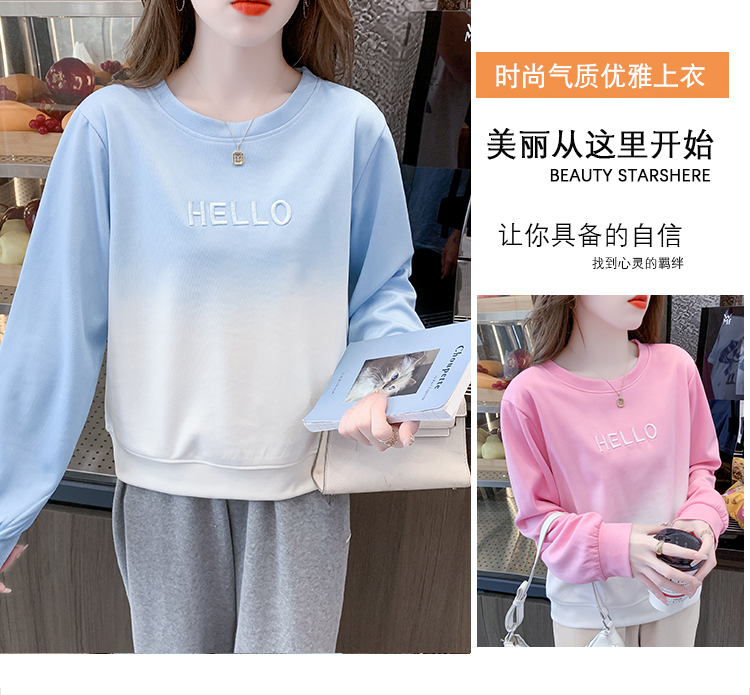 RM32205#新款渐变色字母刺绣圆领卫衣减龄洋气宽松显瘦时尚长袖卫衣