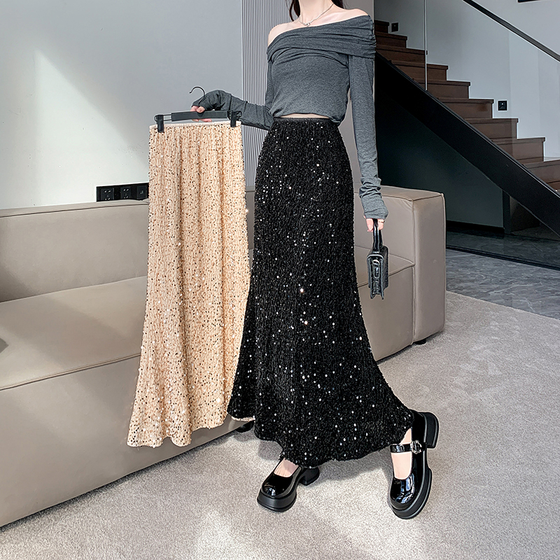 RM32213#新款气质亮片长裙女春季高腰设计感小众时尚半身裙垂感鱼尾裙