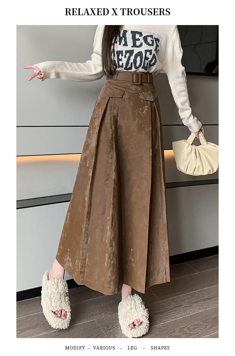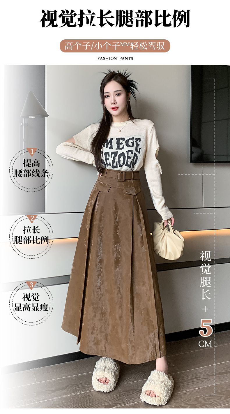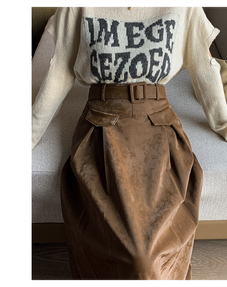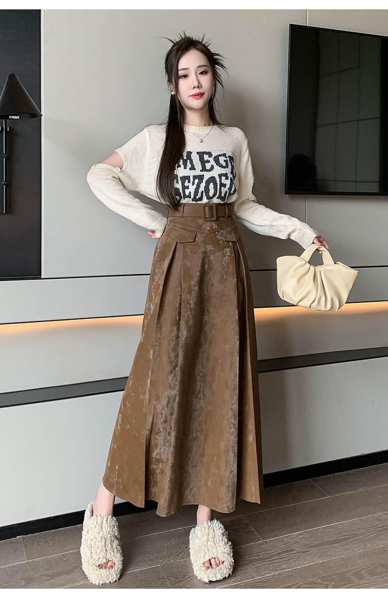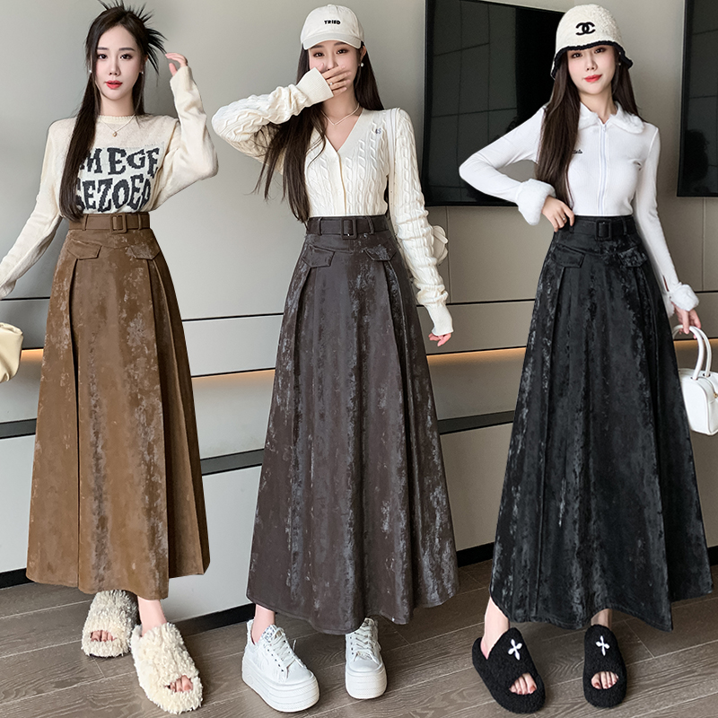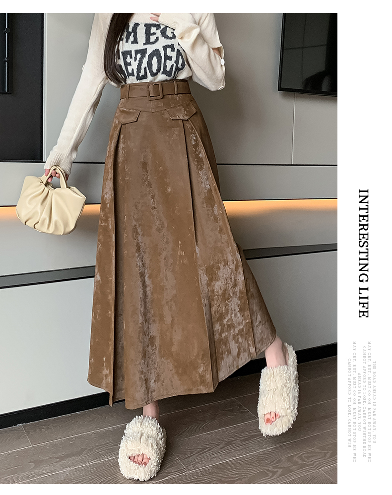 RM32232#裙子女秋冬皮裙气质通勤高腰伞裙pu大摆裙复古半裙a字长裙