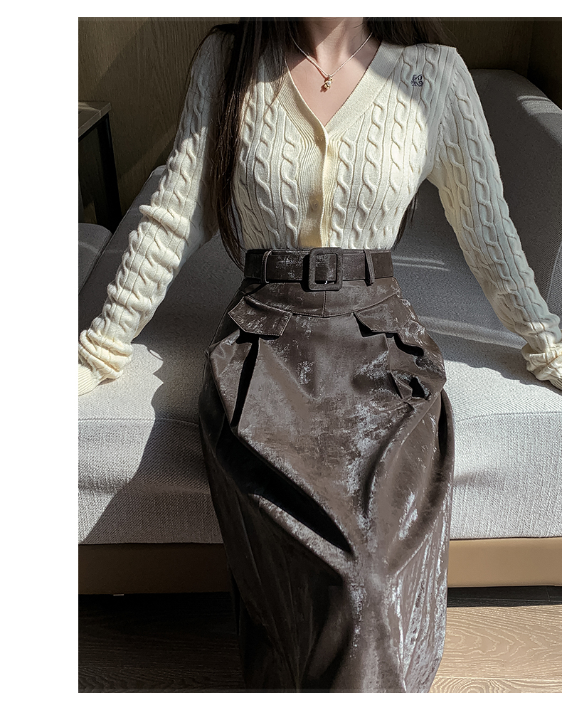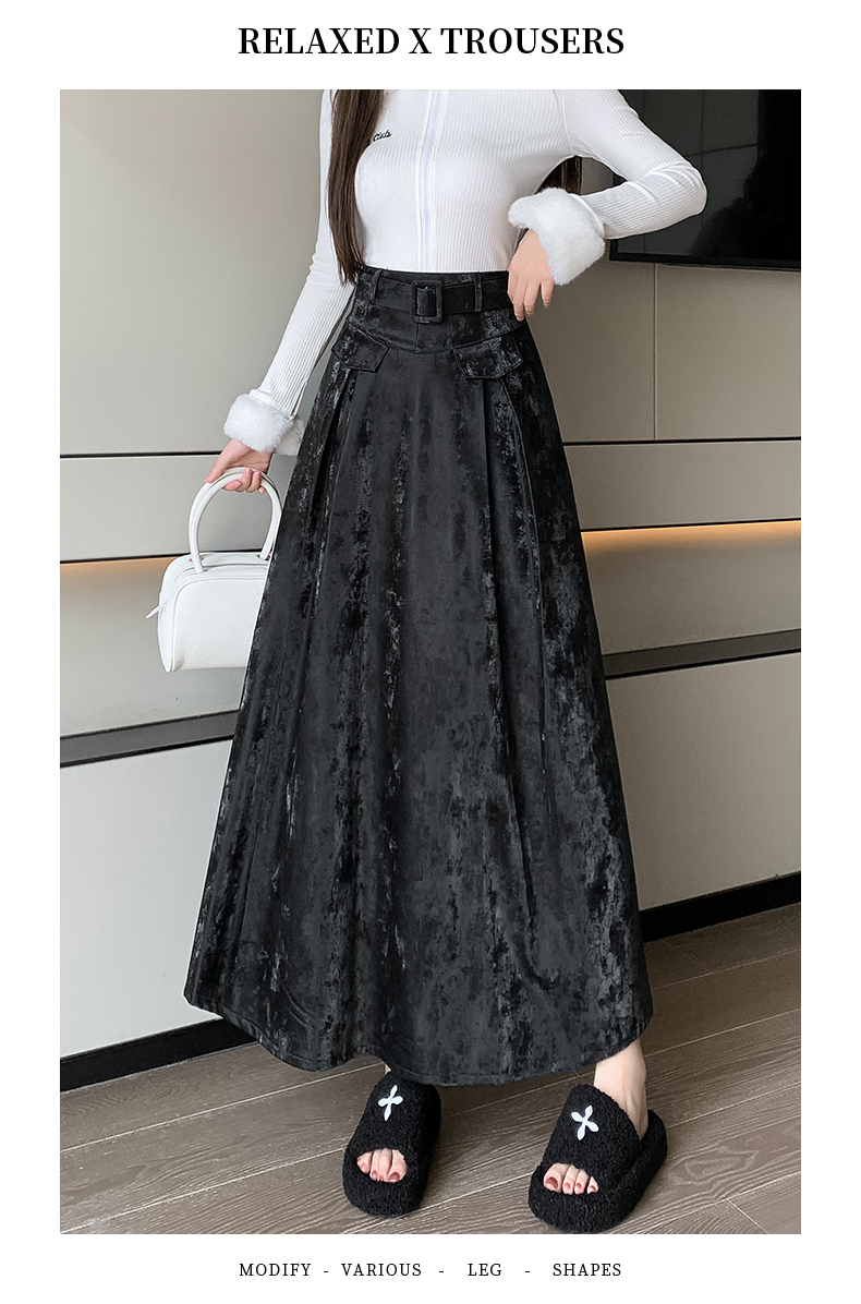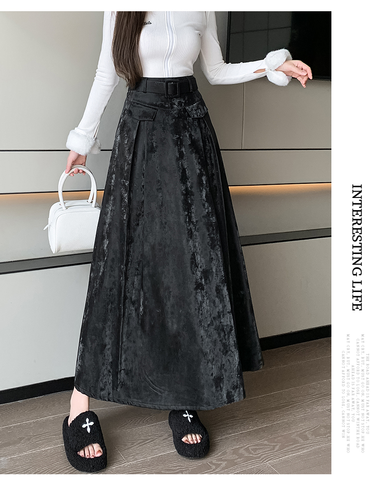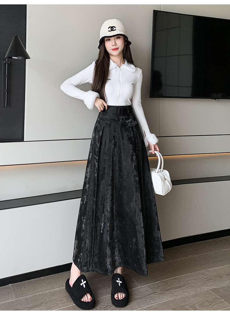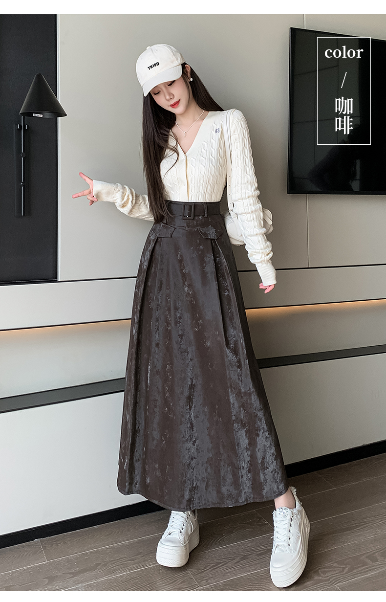 RM32232#裙子女秋冬皮裙气质通勤高腰伞裙pu大摆裙复古半裙a字长裙