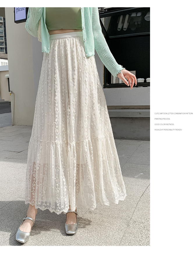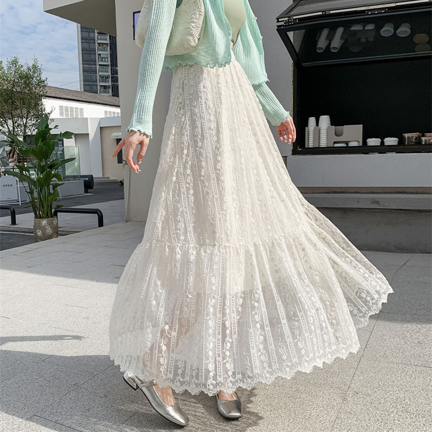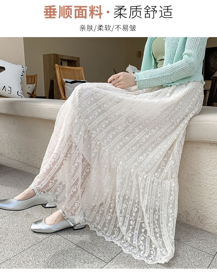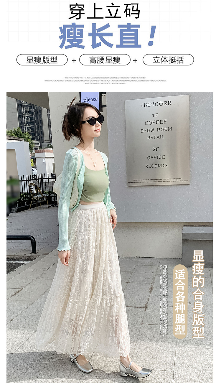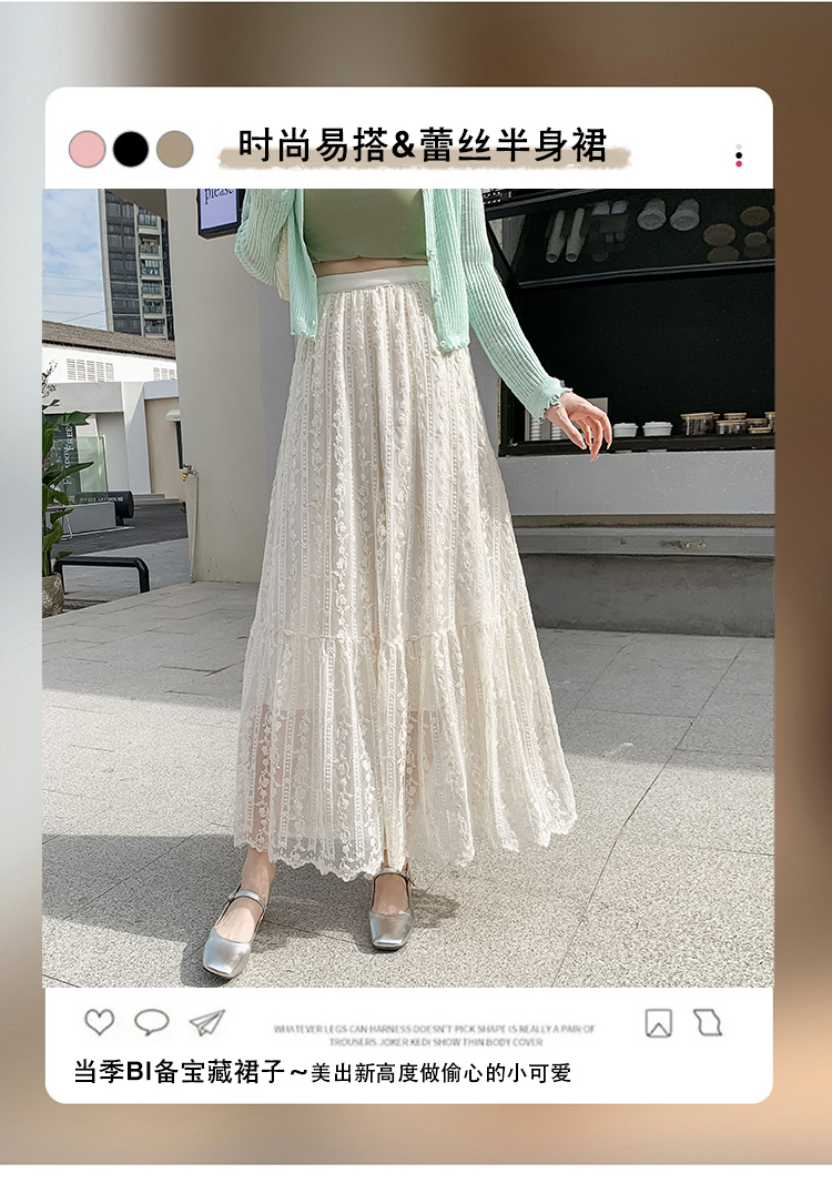 RM32298#法式网纱蕾丝半身裙 新款a字高腰显瘦中长款仙气半裙
