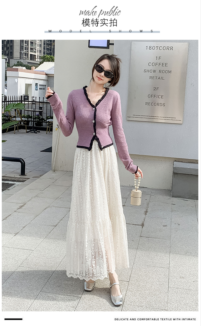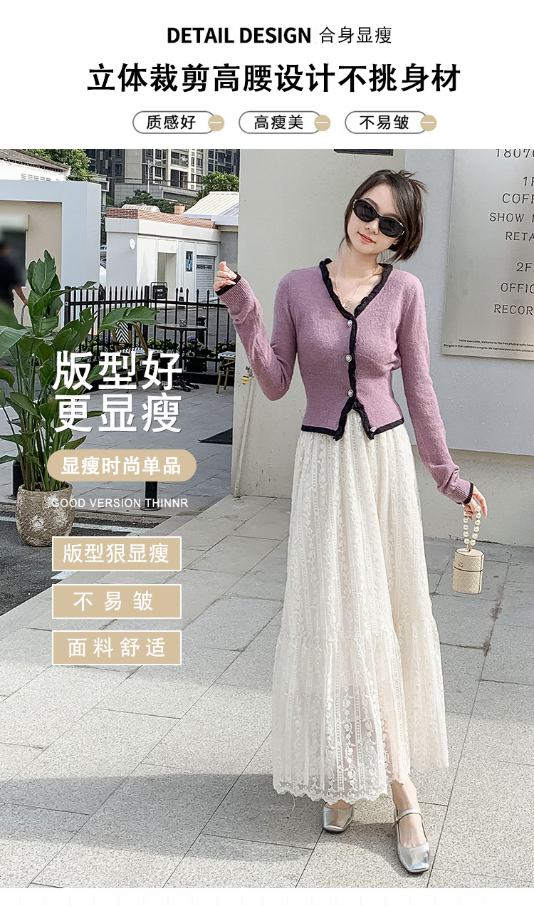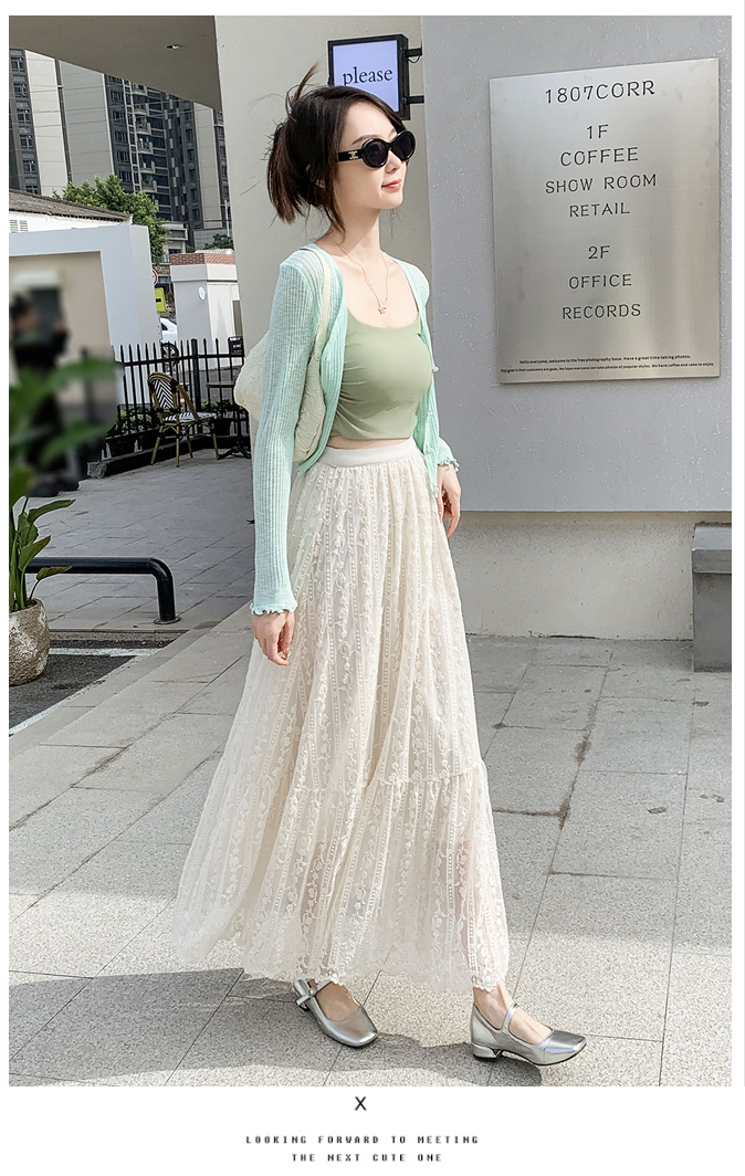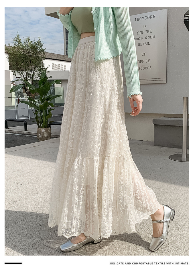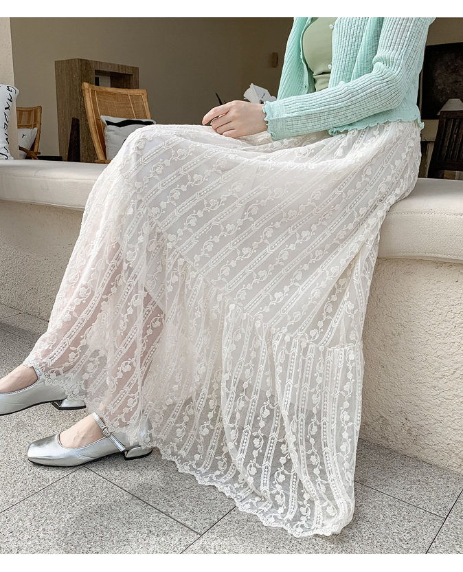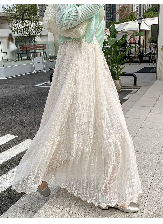 RM32298#法式网纱蕾丝半身裙 新款a字高腰显瘦中长款仙气半裙