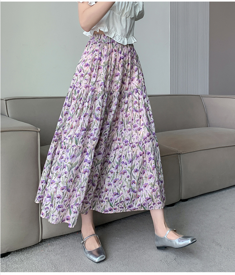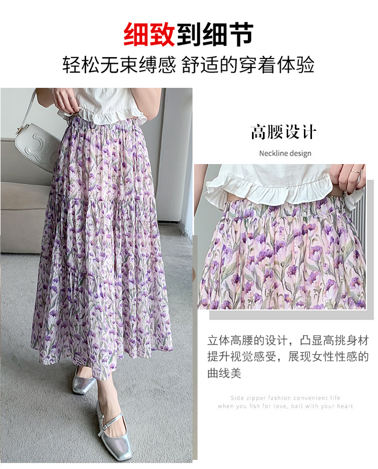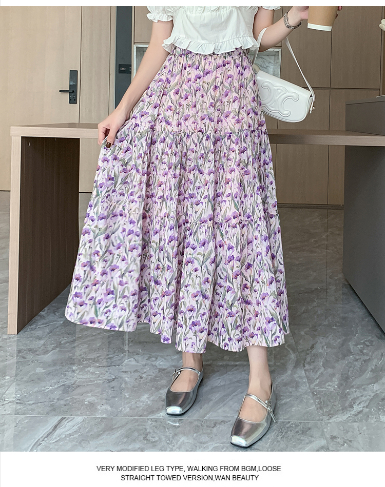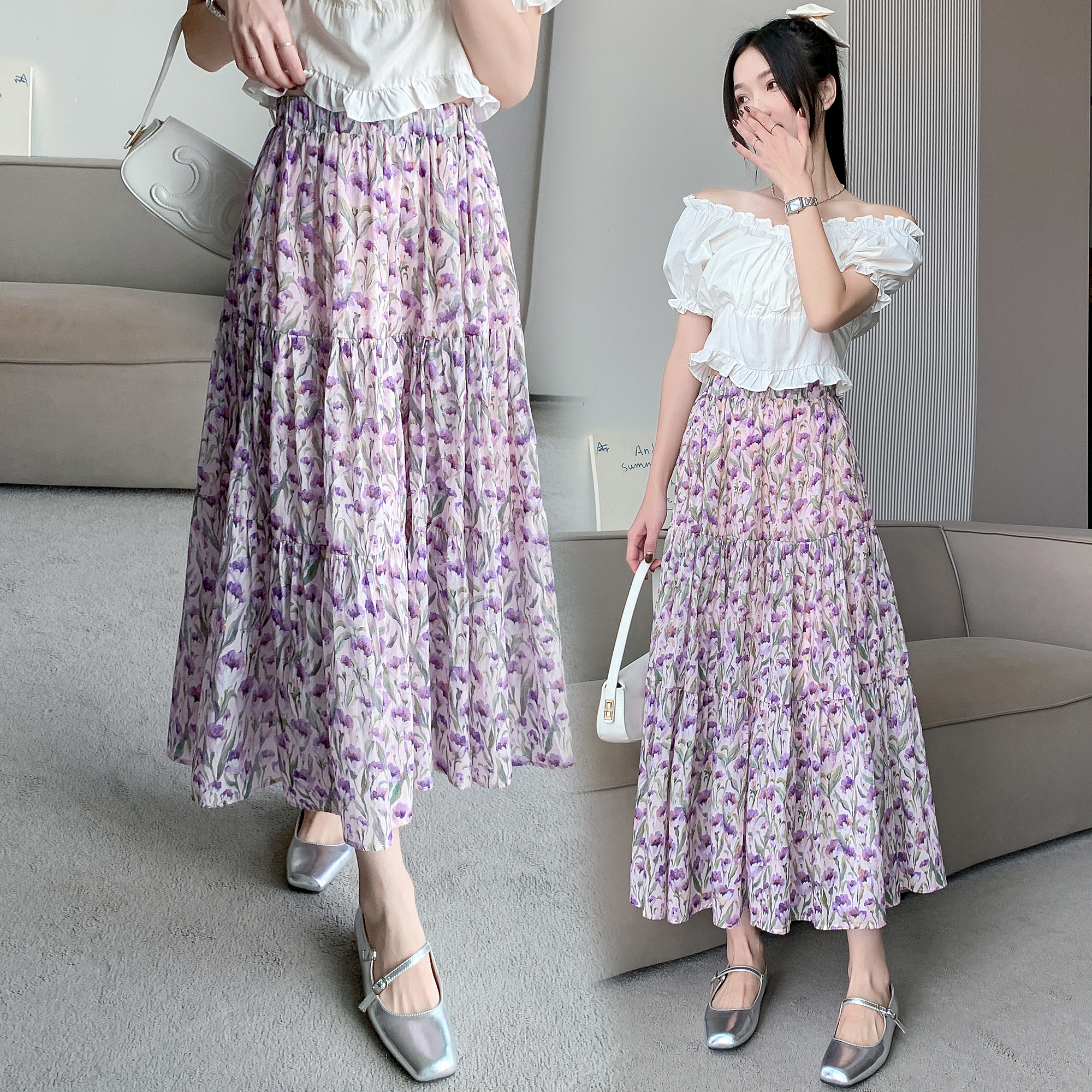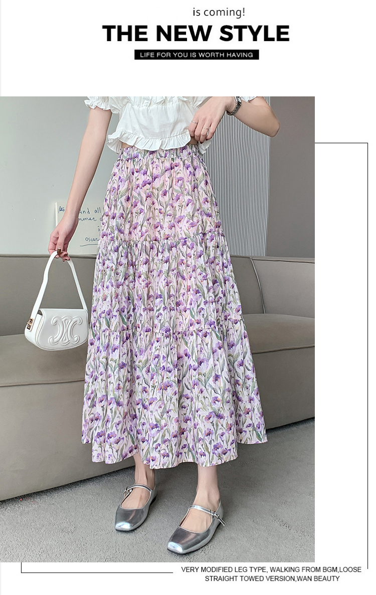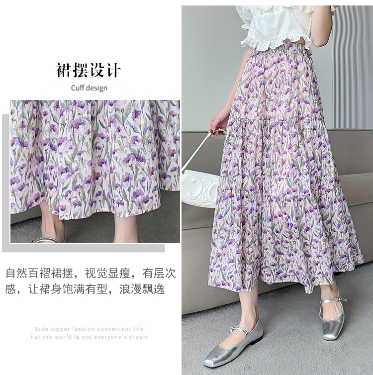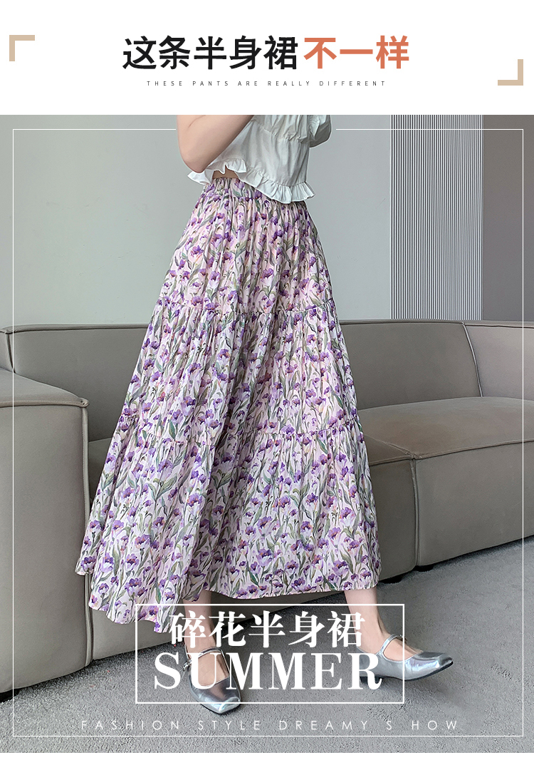 RM32300#紫色碎花半身裙2024夏季韩版宽松高腰显瘦a字伞裙chic裙子