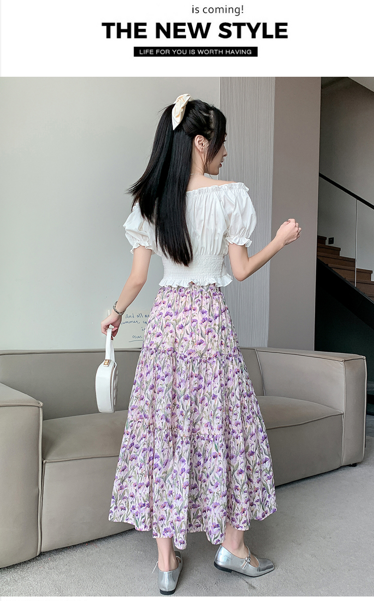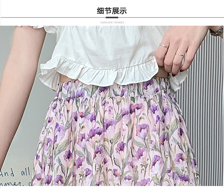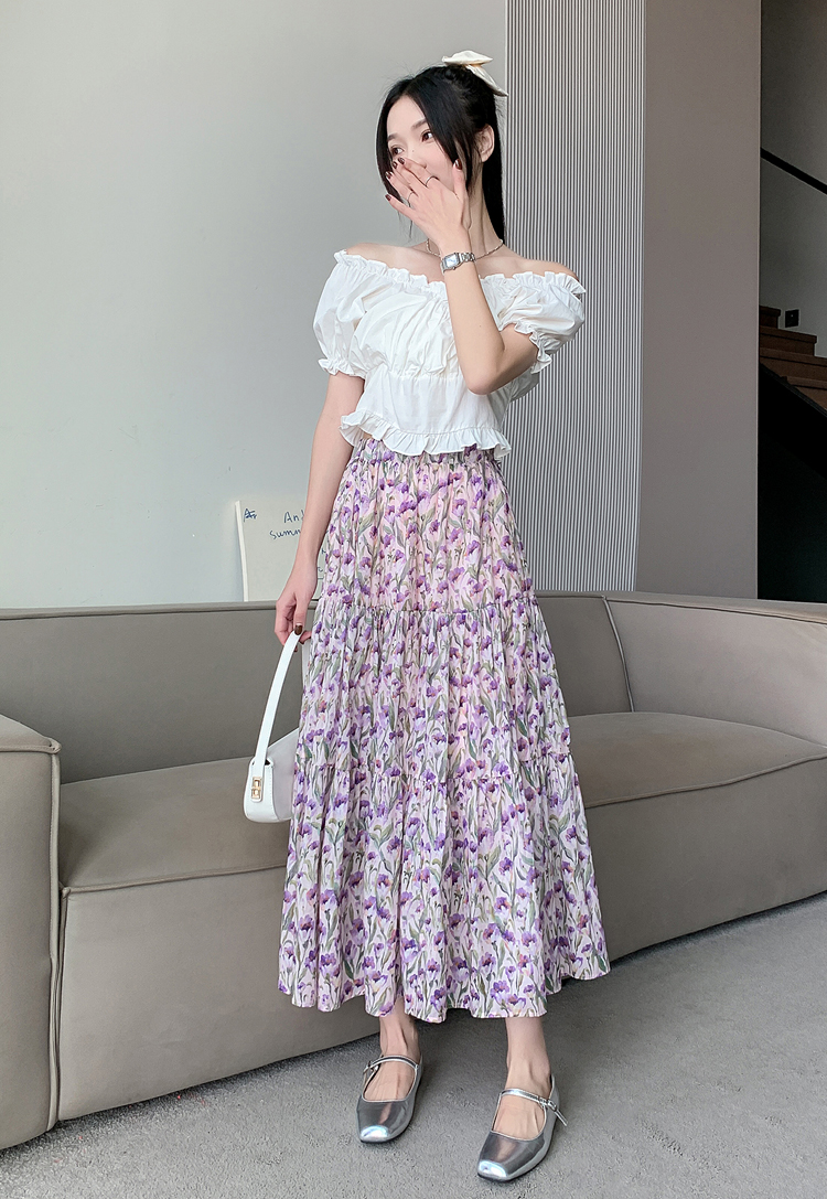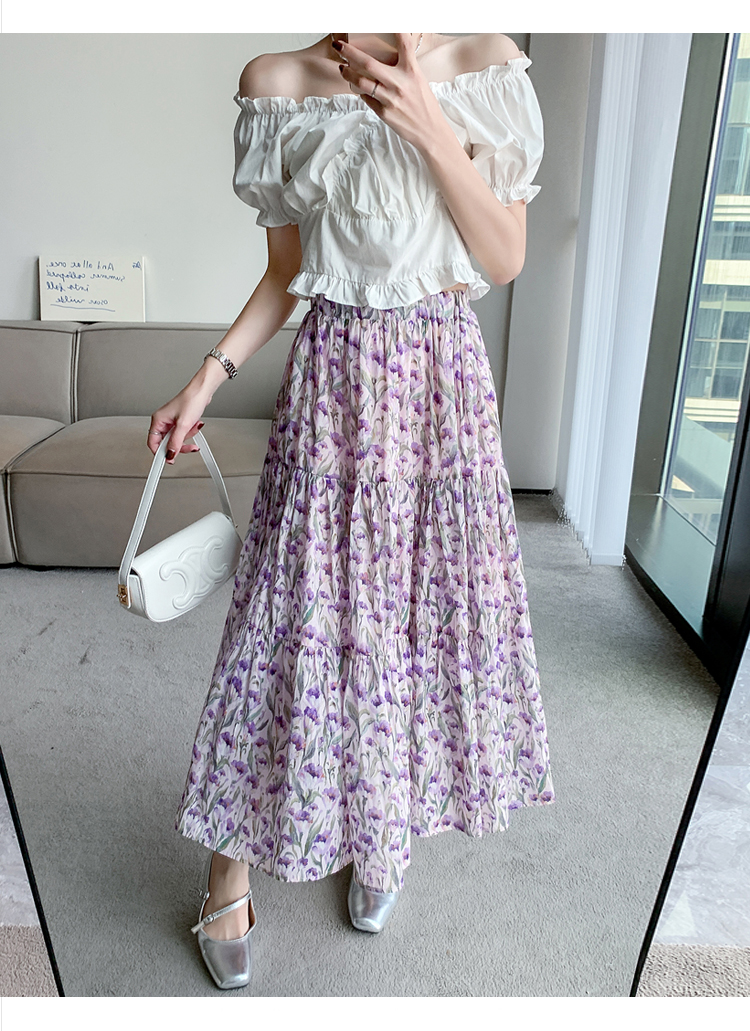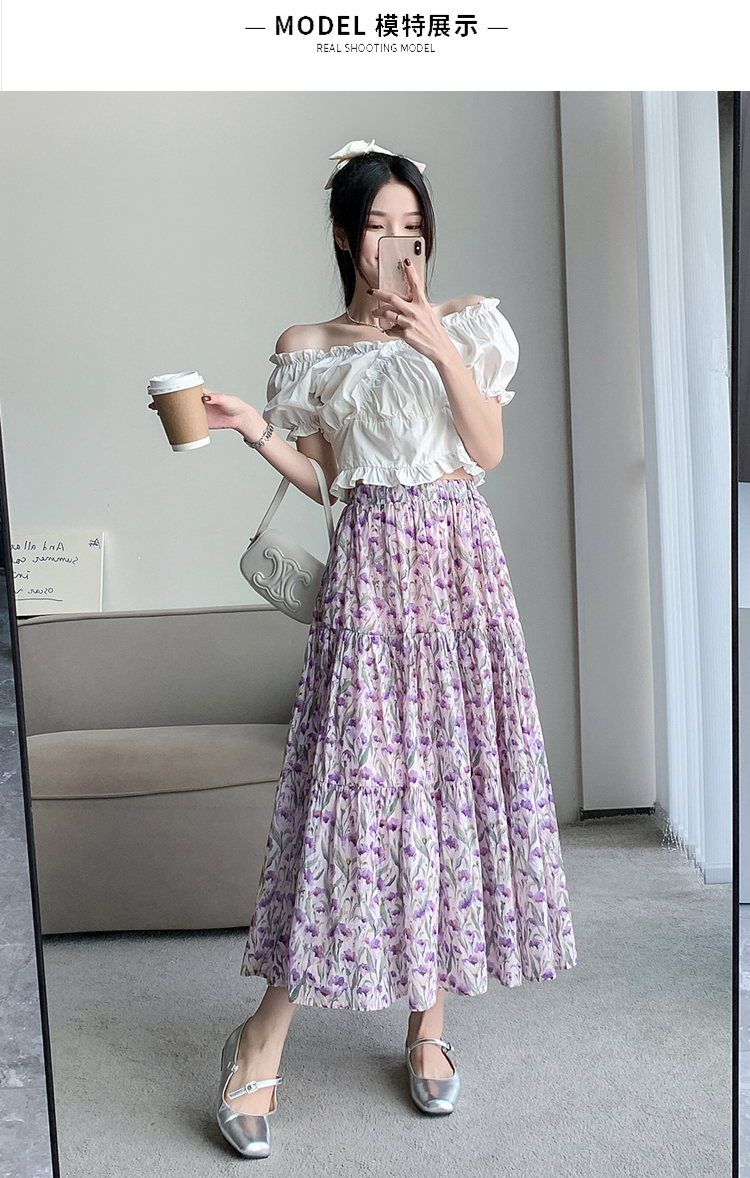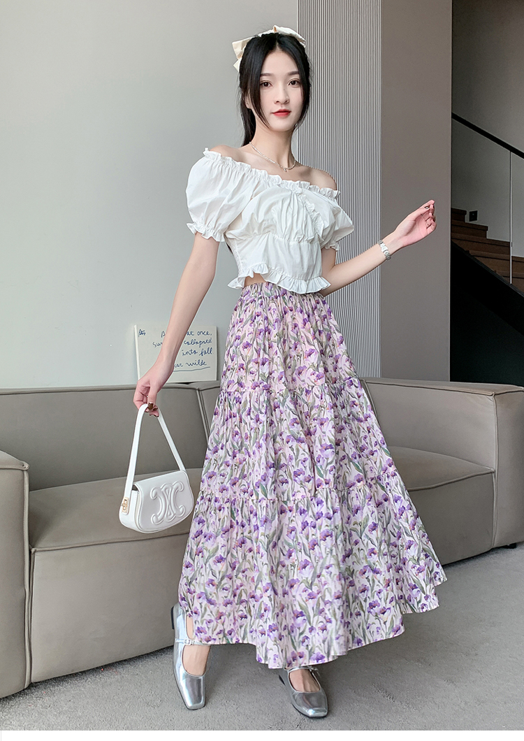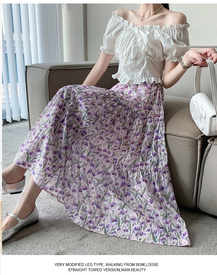 RM32300#紫色碎花半身裙2024夏季韩版宽松高腰显瘦a字伞裙chic裙子