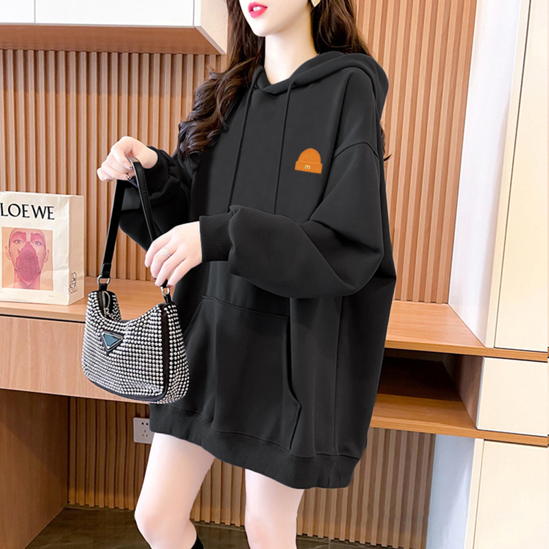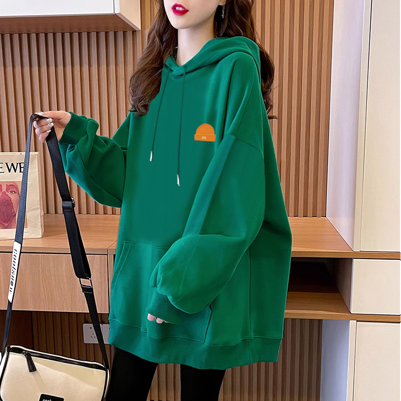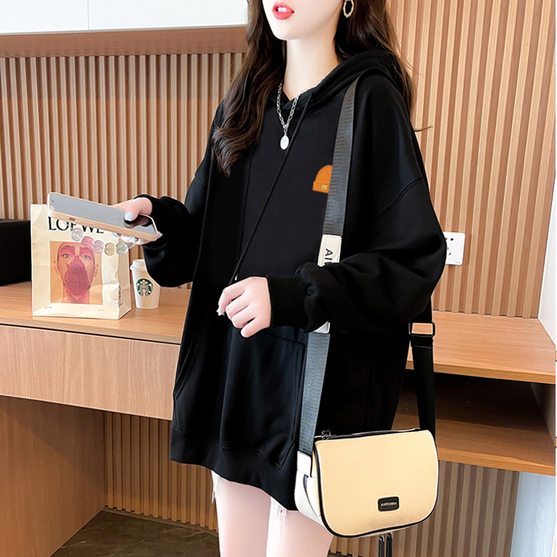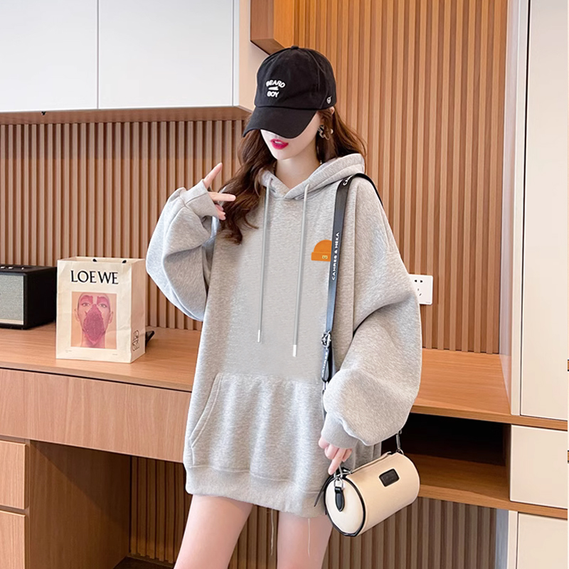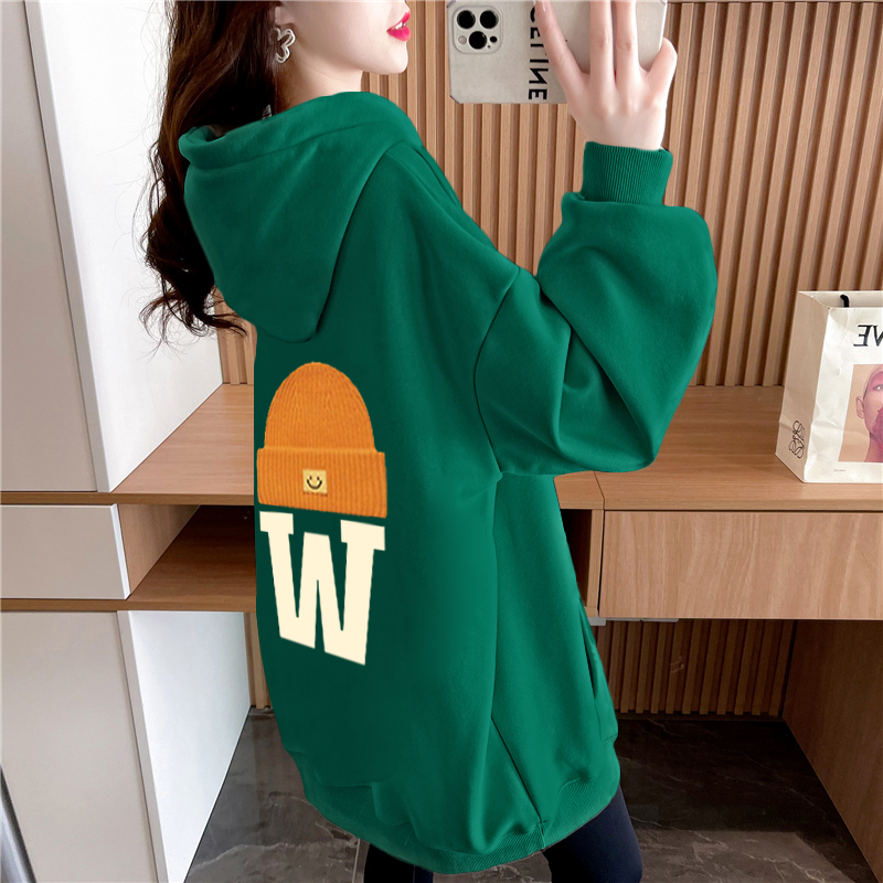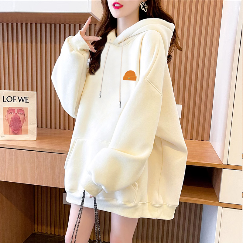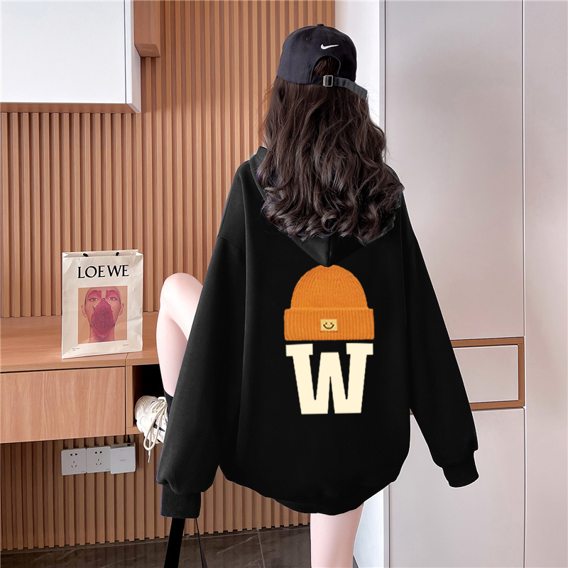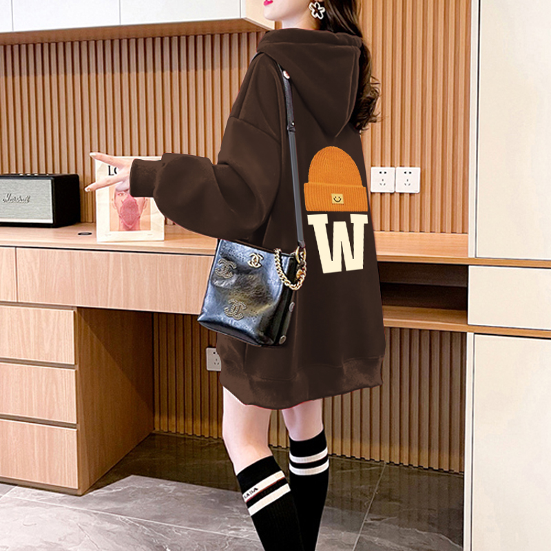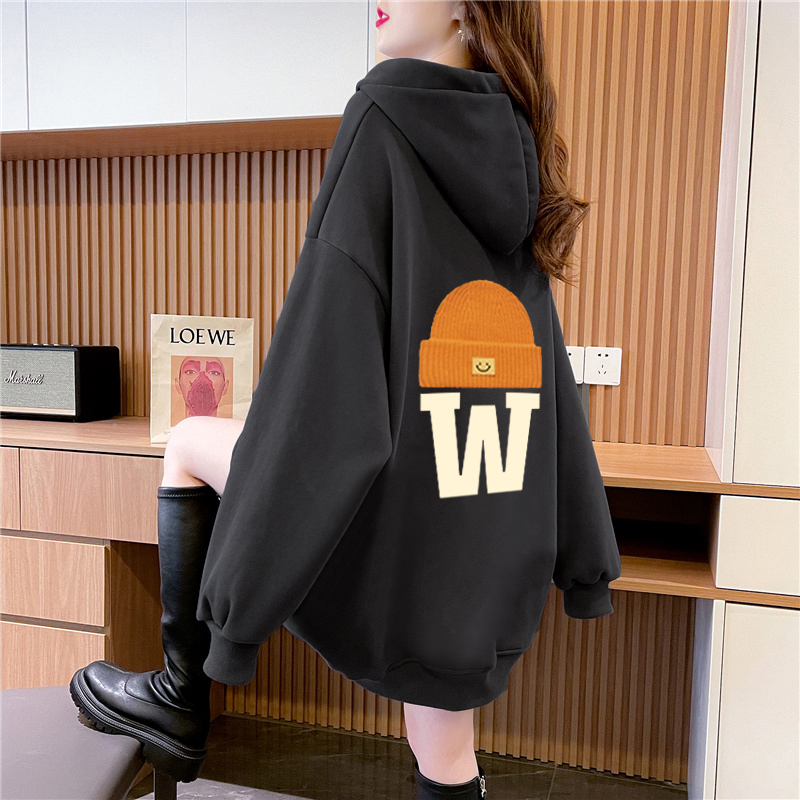 RM32339#纯棉华棉复合牛奶丝前后帽子字母印花卫衣女