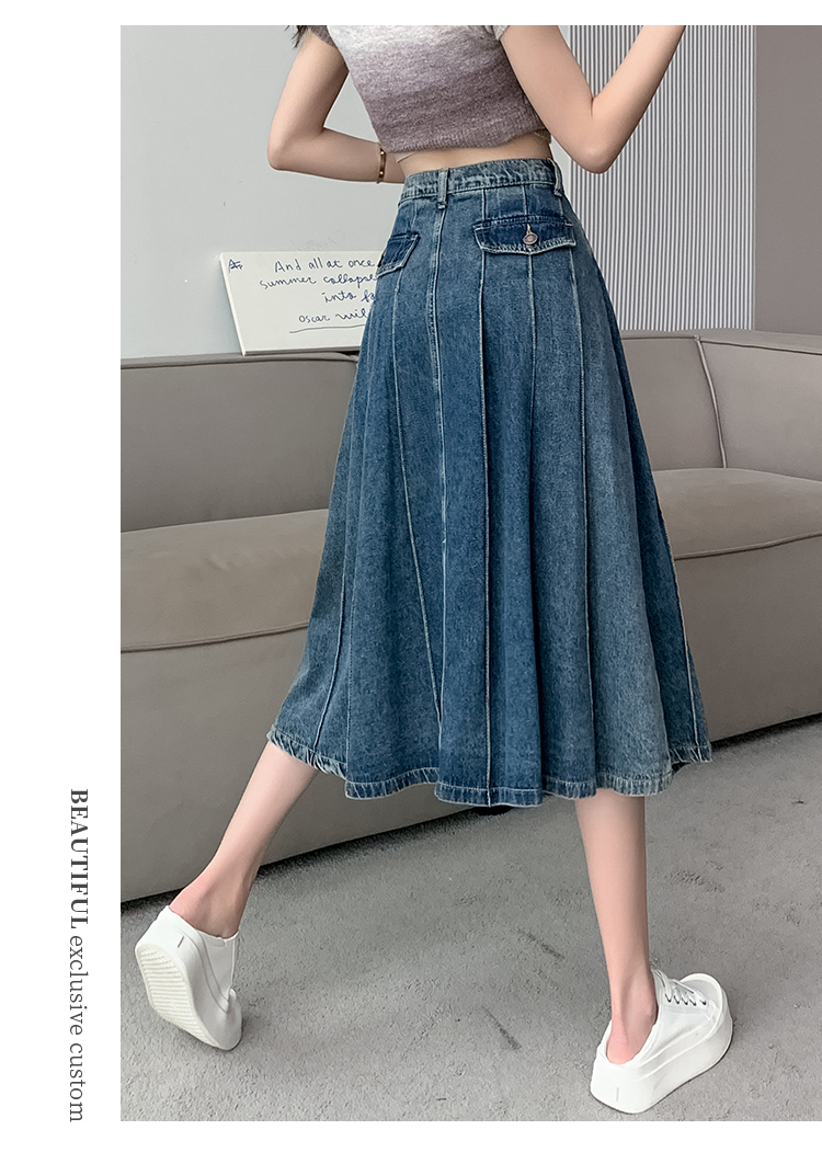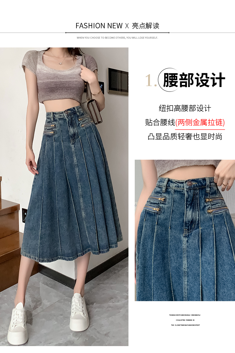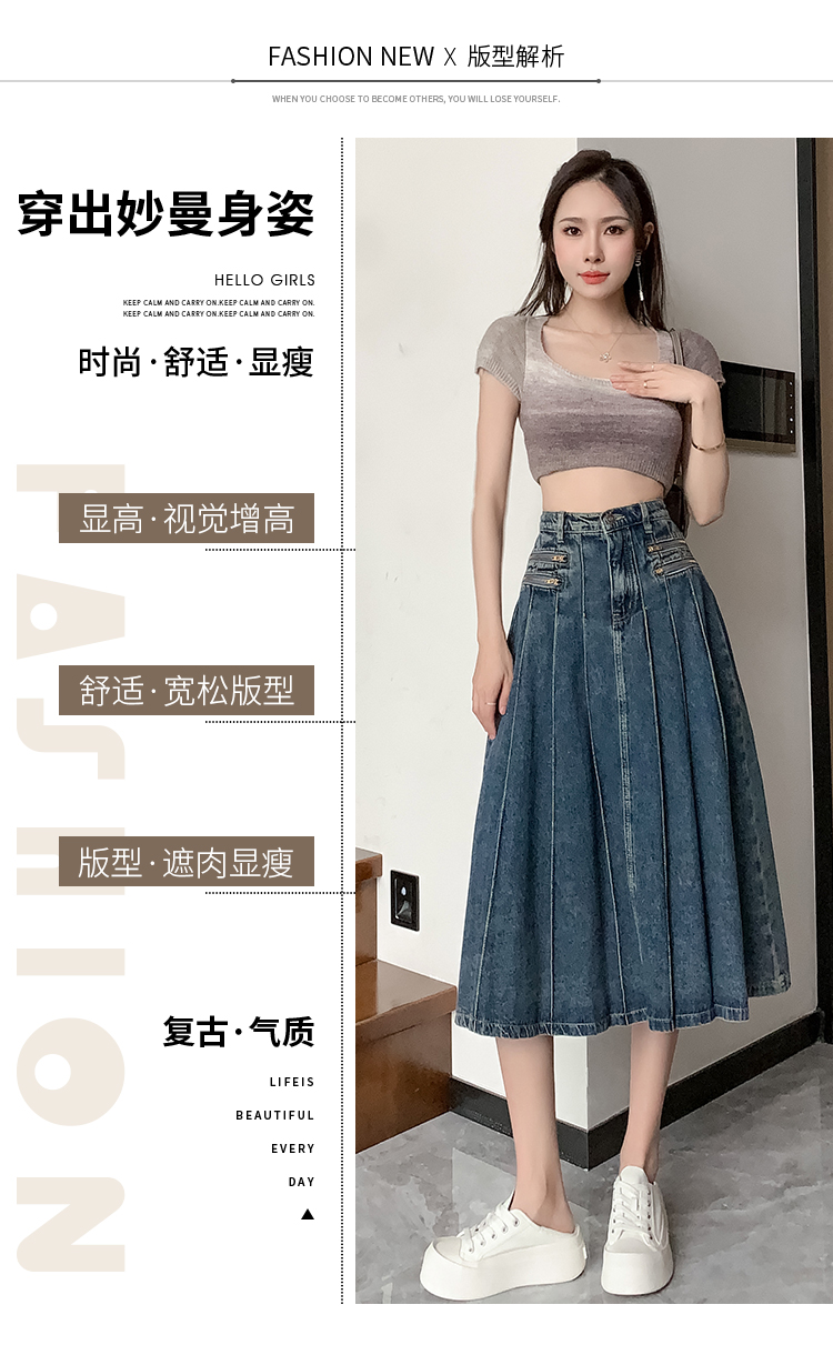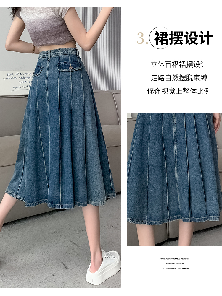 RM32403#春夏新款高腰a字牛仔半身裙女小个子遮胯显瘦中长款裙子