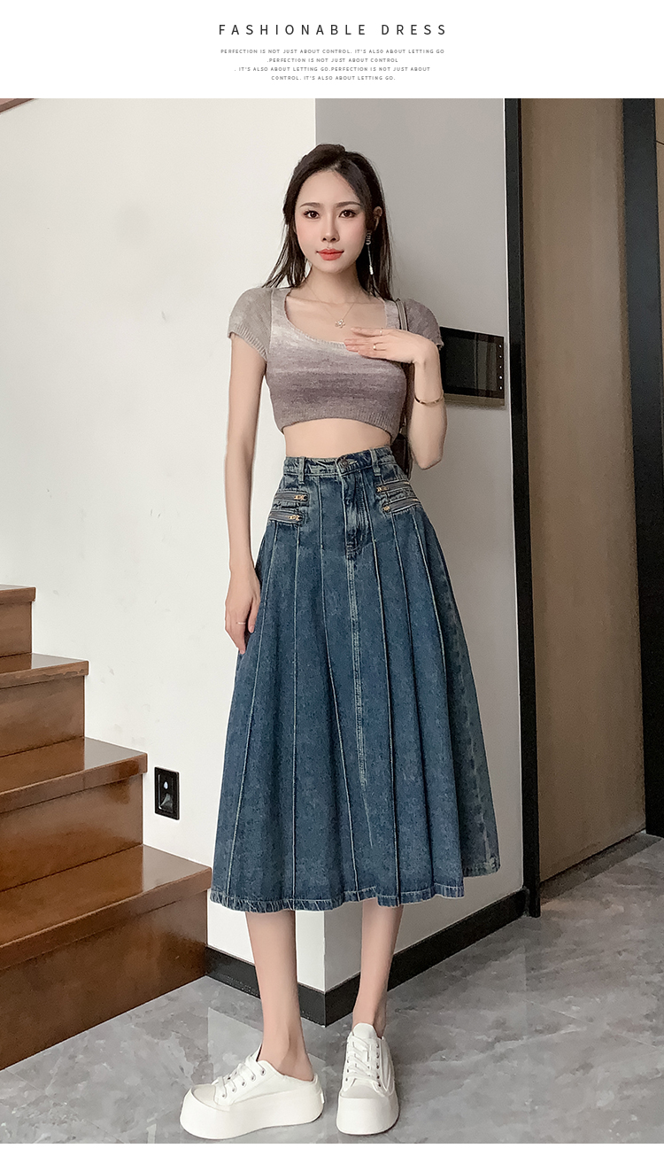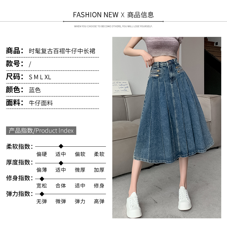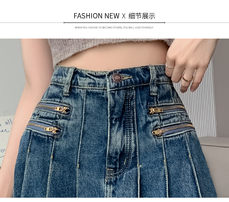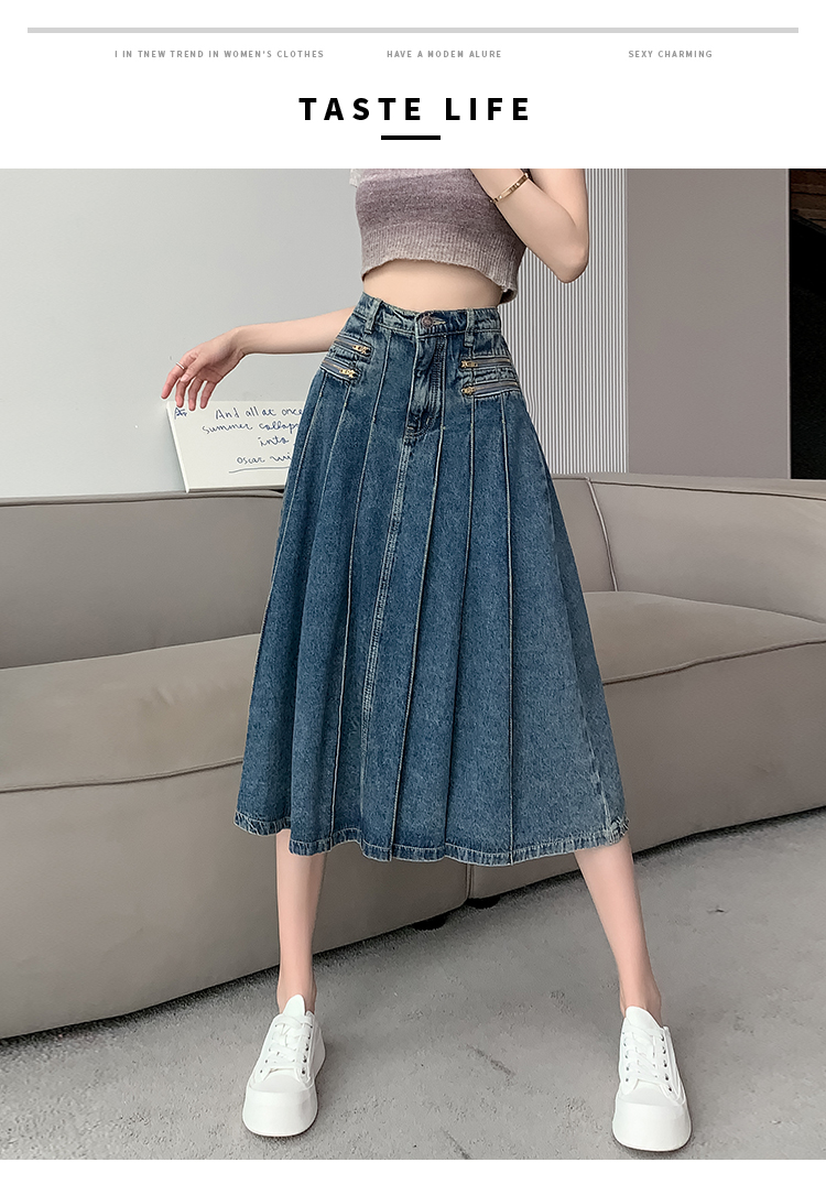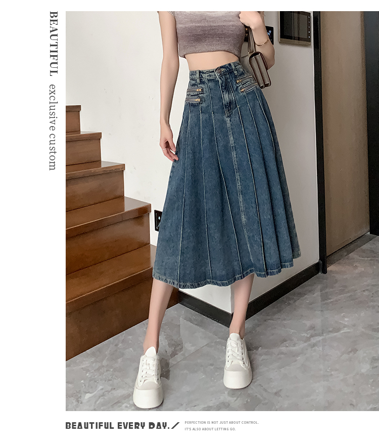 RM32403#春夏新款高腰a字牛仔半身裙女小个子遮胯显瘦中长款裙子