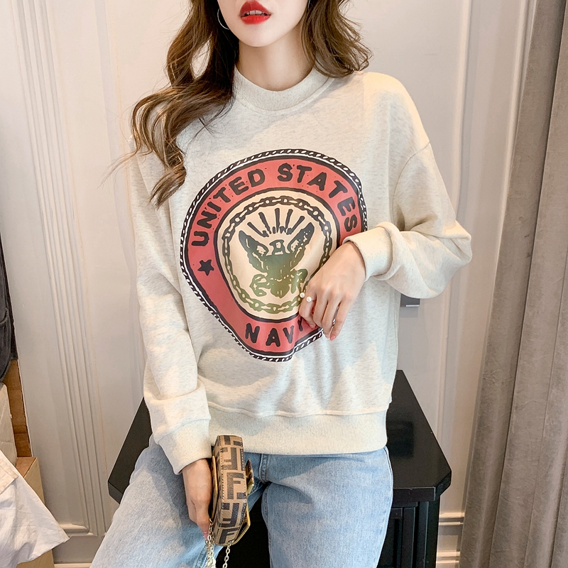 RM32444#复古徽章cream高街潮街头情侣jerry套头圆领卫衣