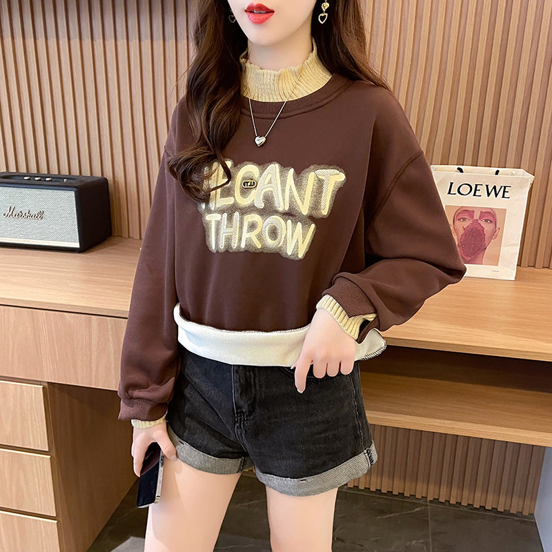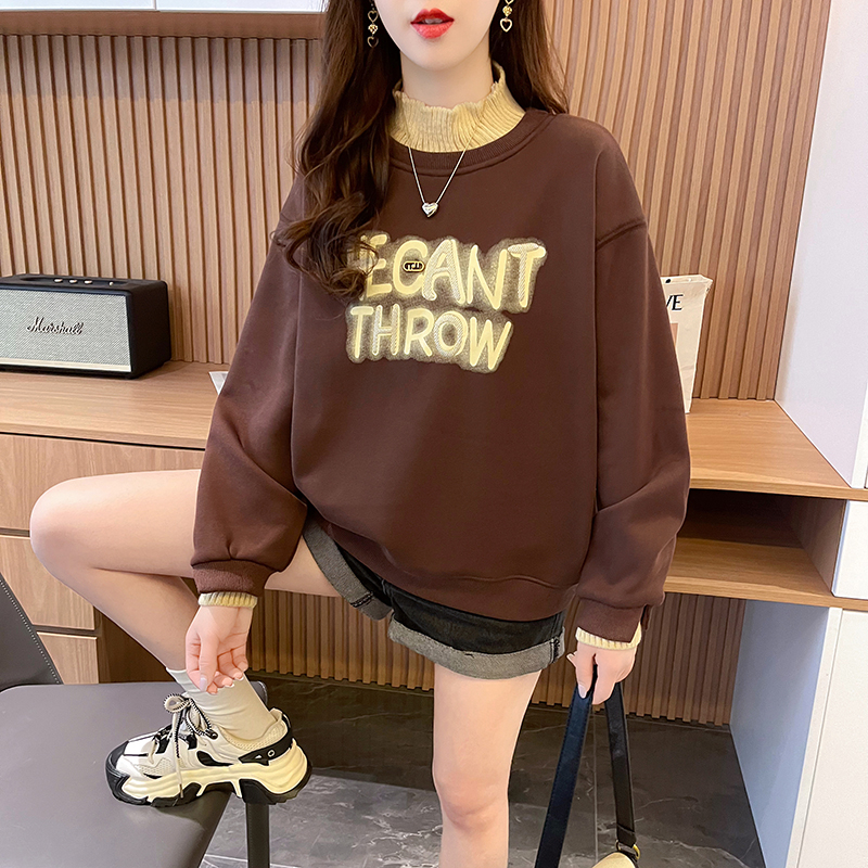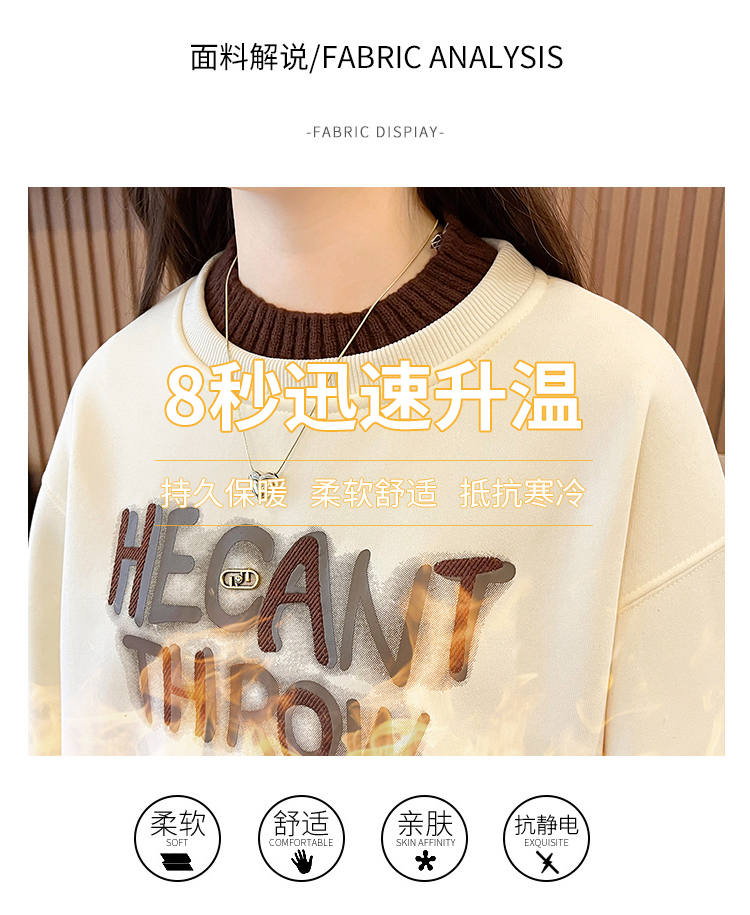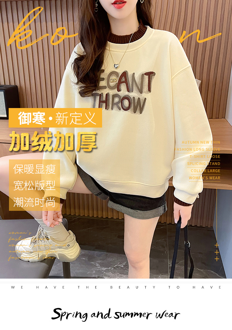 RM32467#华棉复合真超加绒加厚假两件刺绣卫衣女秋冬保暖上衣大码女装