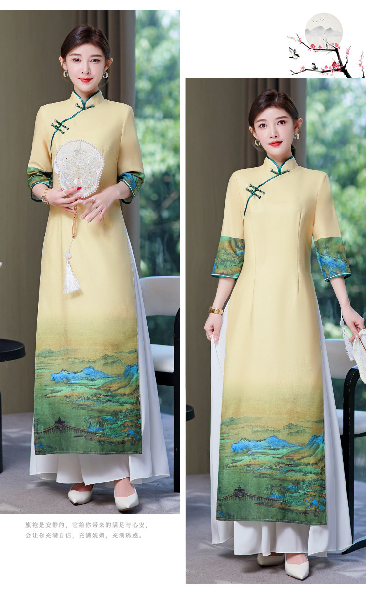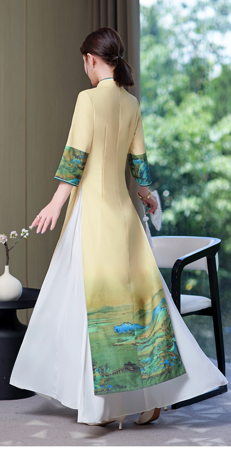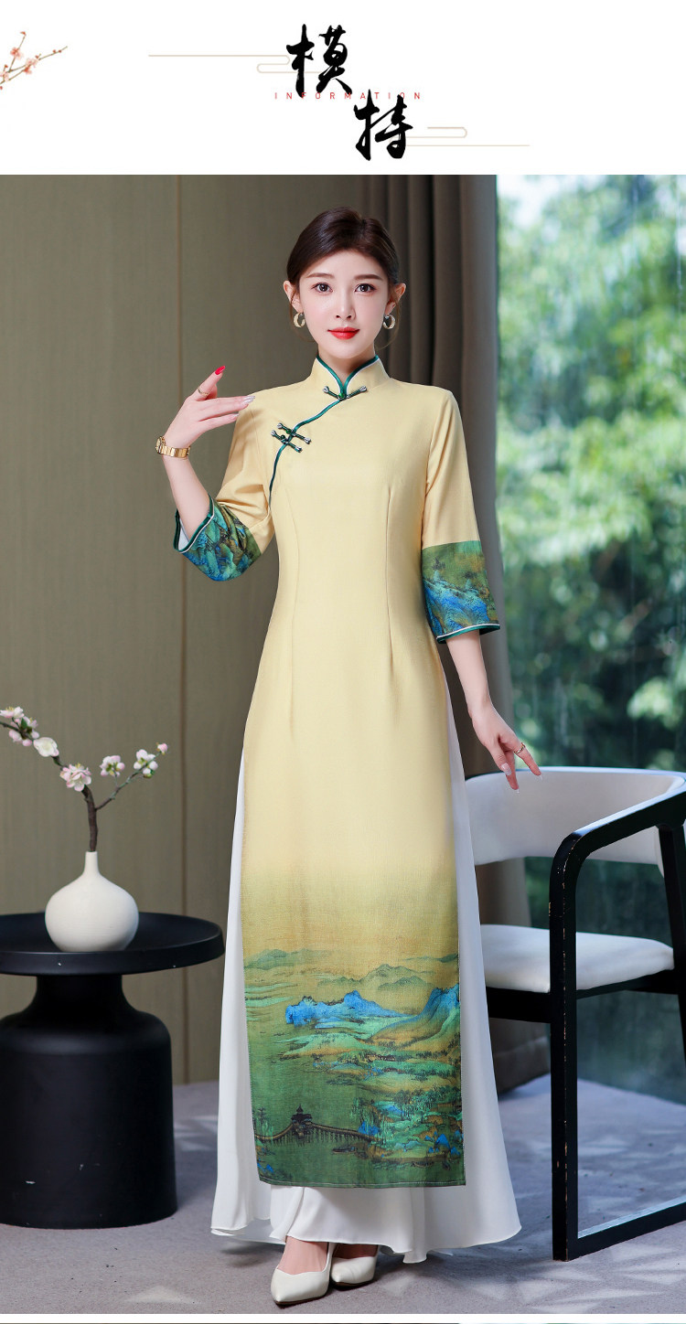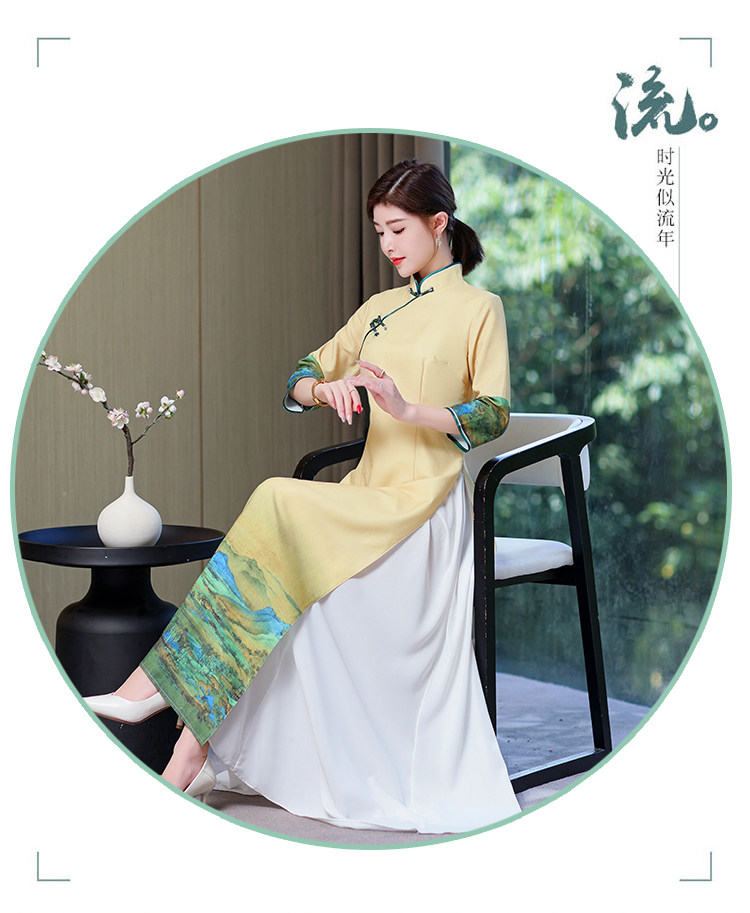 RM32505#千里江山图奥黛旗袍中国风改良2024年新款高端气质走秀演出服长款