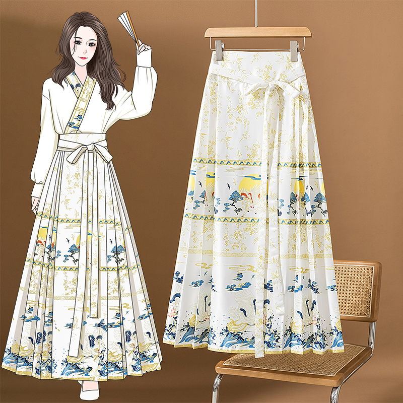 RM32511# 女装2024春季新款新中式国风印花改良汉服修身显瘦马面裙