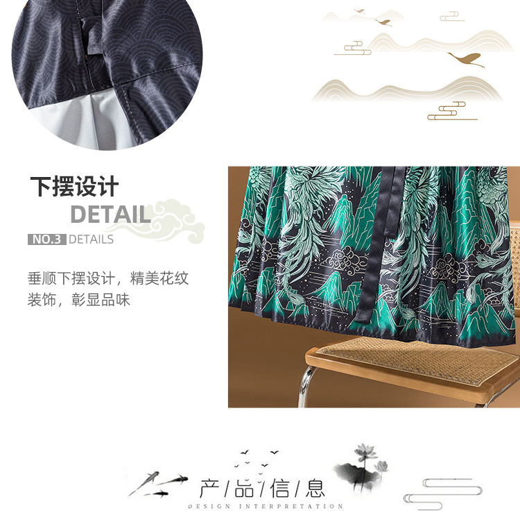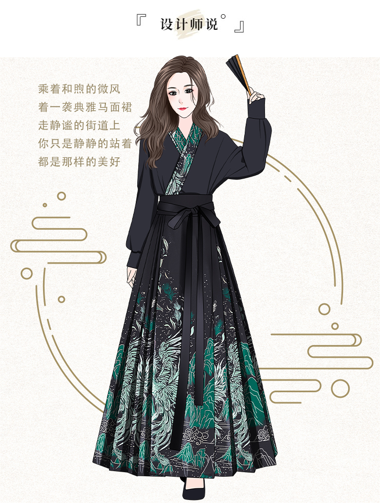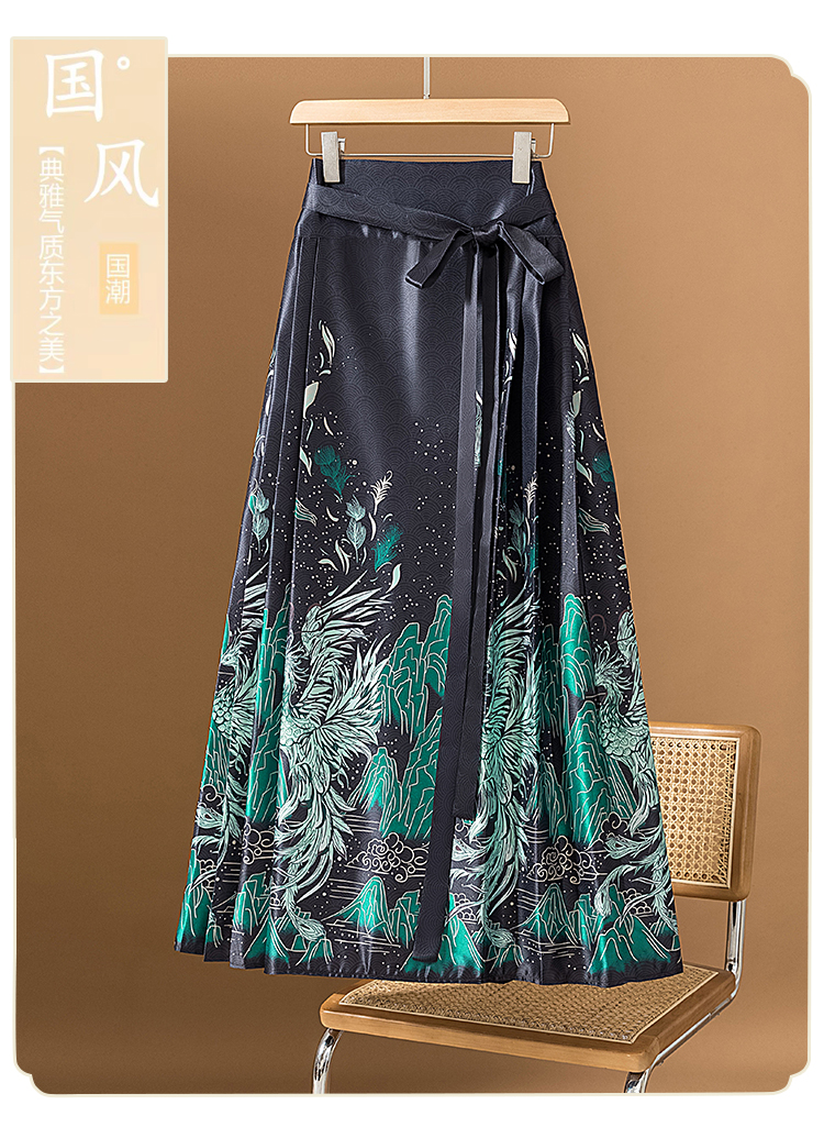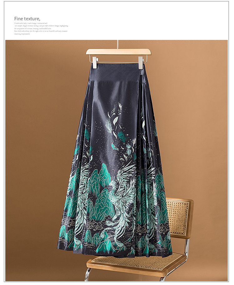 RM32512#大码女装2024春季新款国风印花半身裙新中式改良汉服马面裙