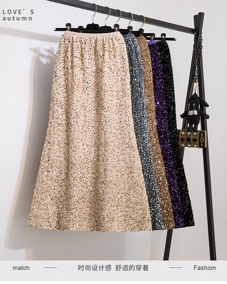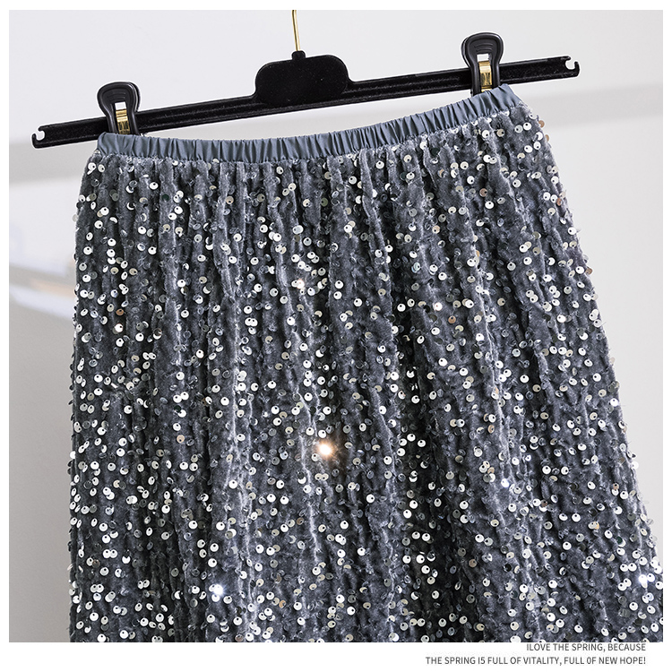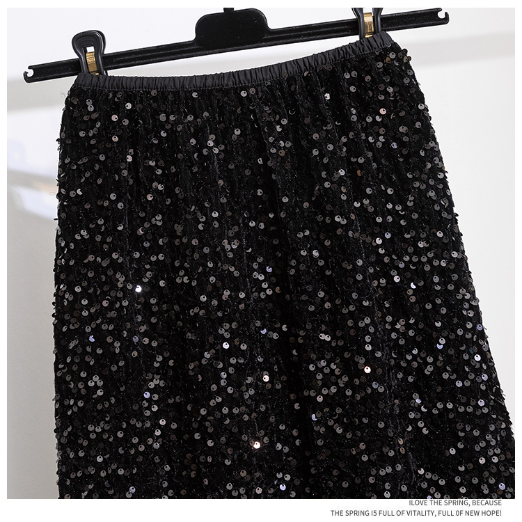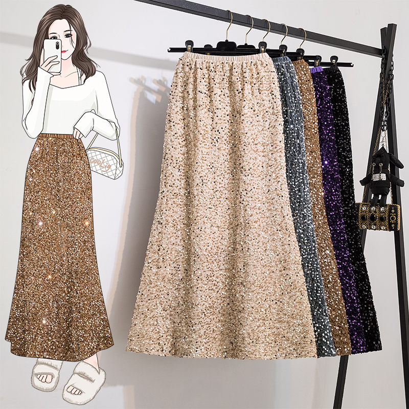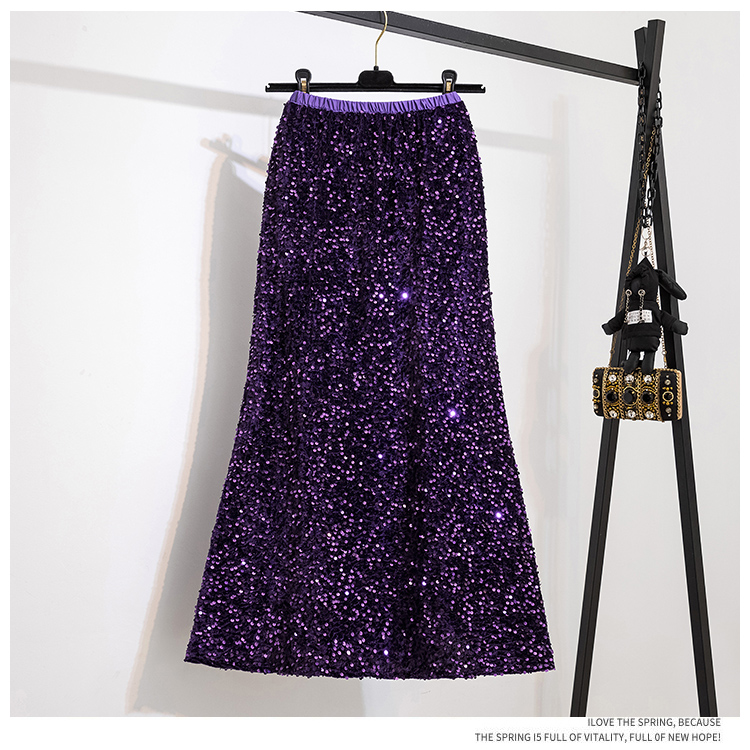 RM32514#大码女装2024春季新款胖MM高级感闪片丝绒高腰鱼尾裙摆半身裙