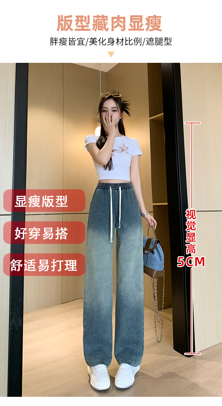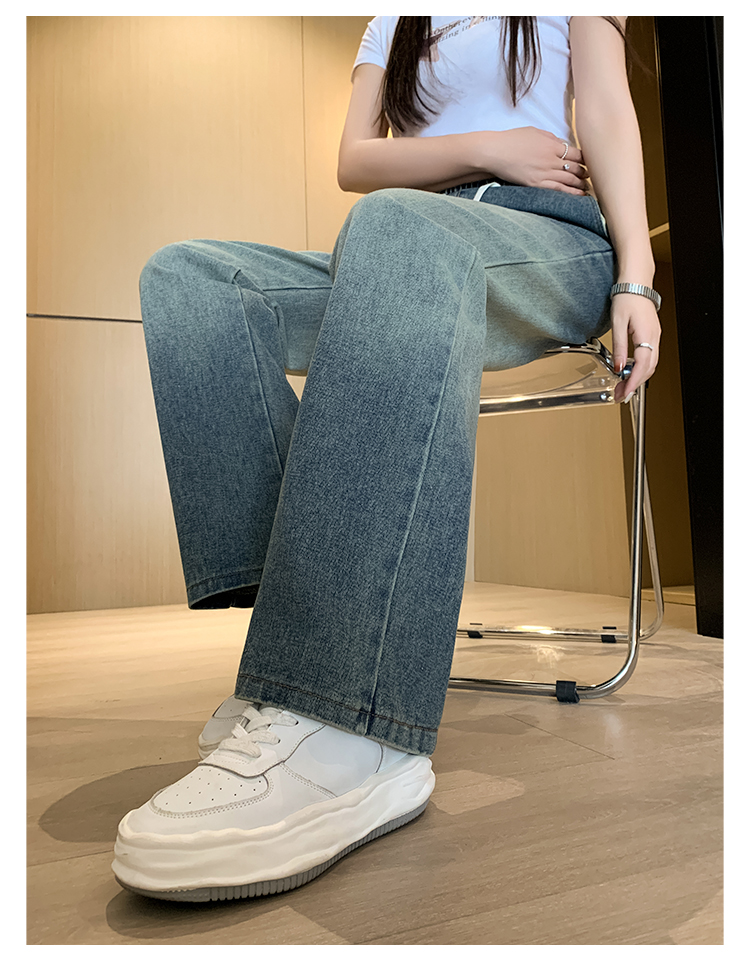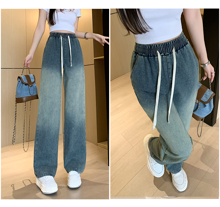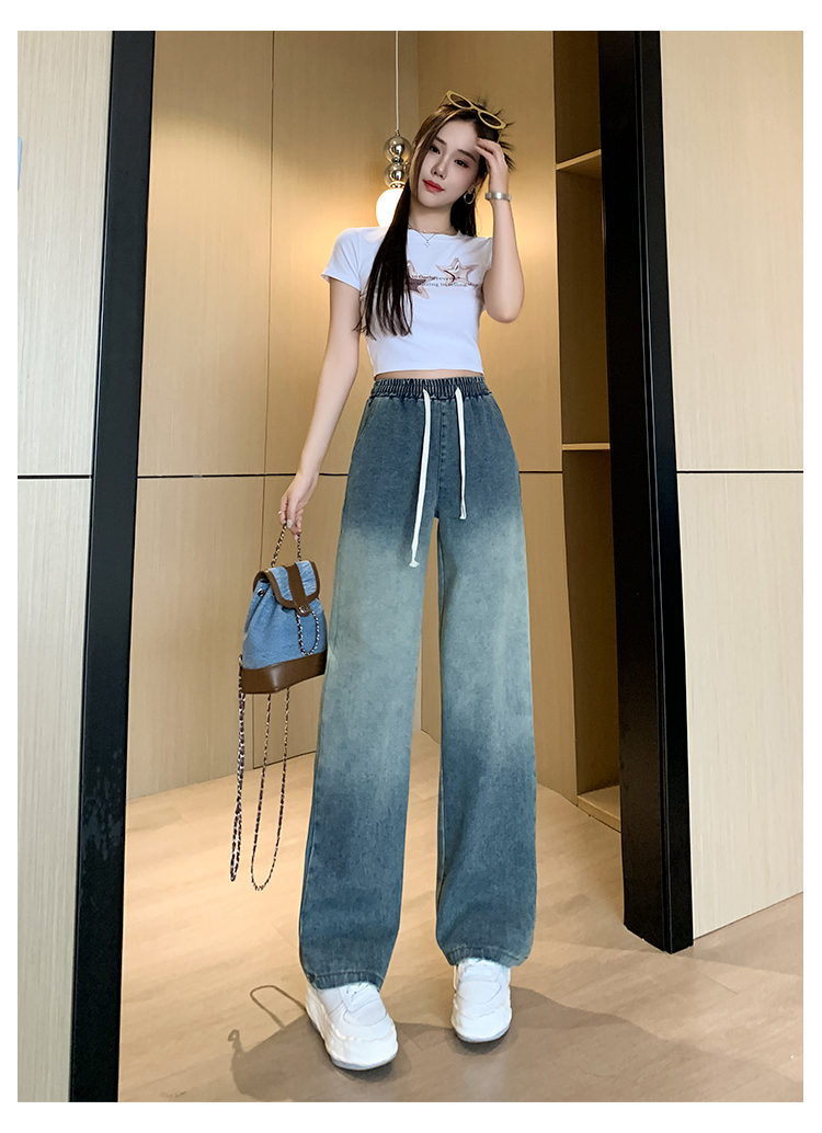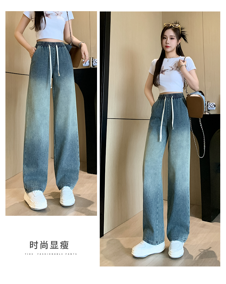 RM32522#渐变牛仔裤女2024春夏新款时尚百搭高腰简约休闲宽松型阔腿裤