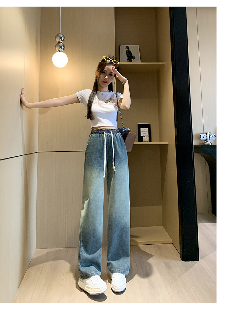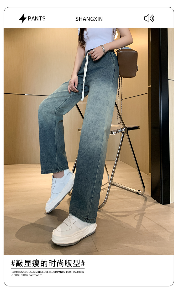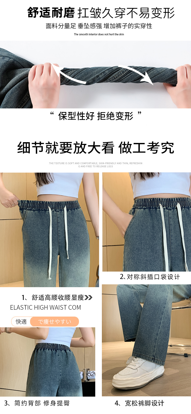 RM32522#渐变牛仔裤女2024春夏新款时尚百搭高腰简约休闲宽松型阔腿裤
