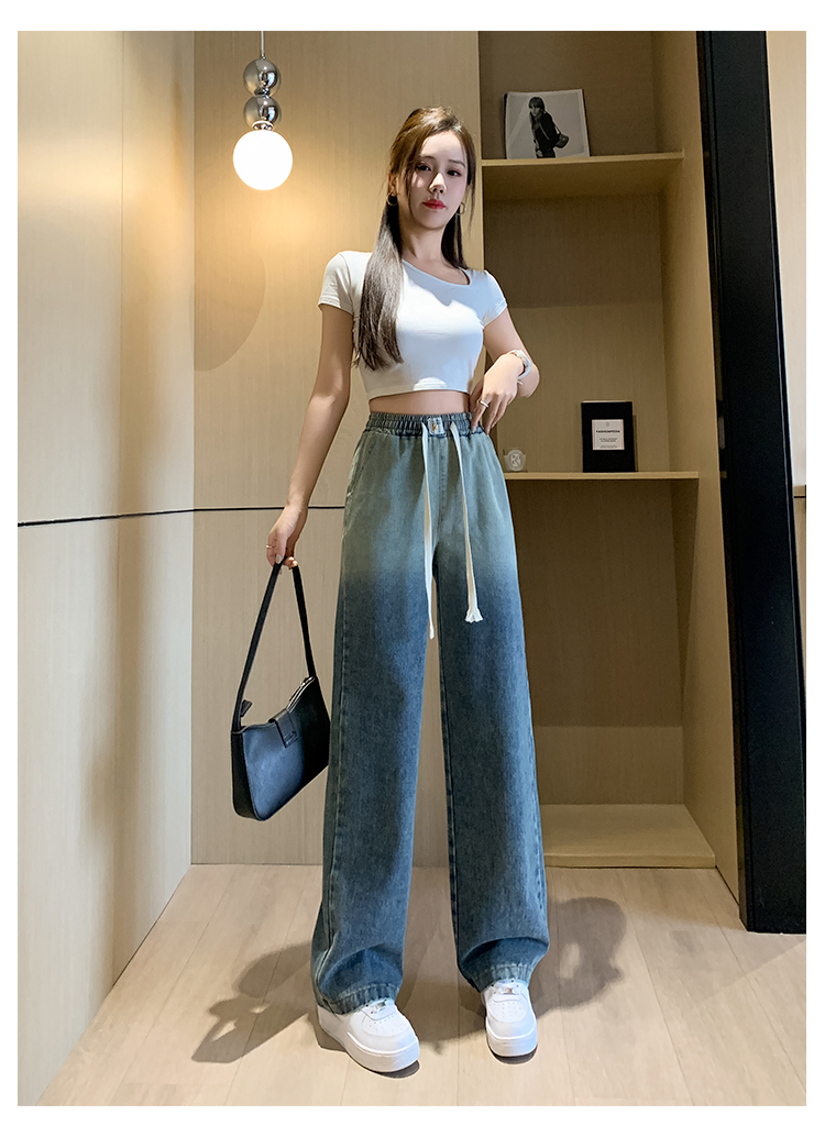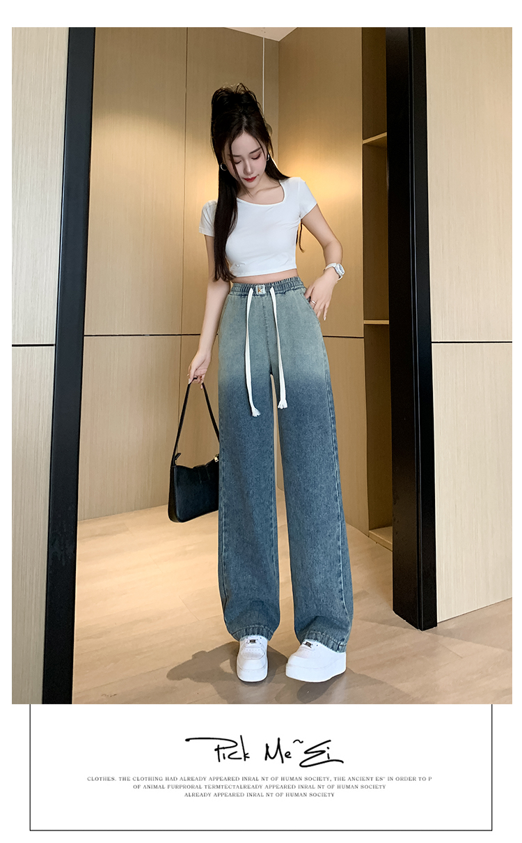 RM32523#复古蓝渐边牛仔裤女2024春夏新款百搭时尚松紧腰休闲阔腿长裤