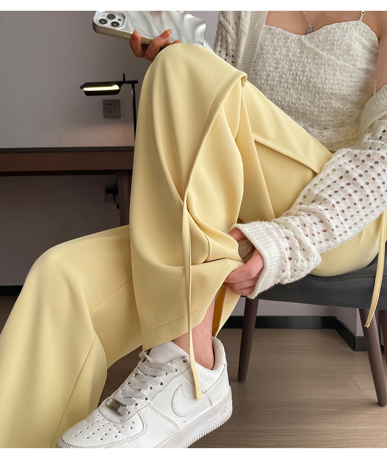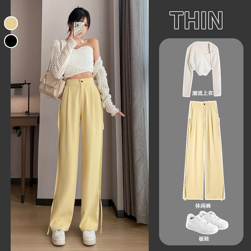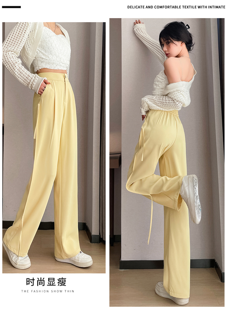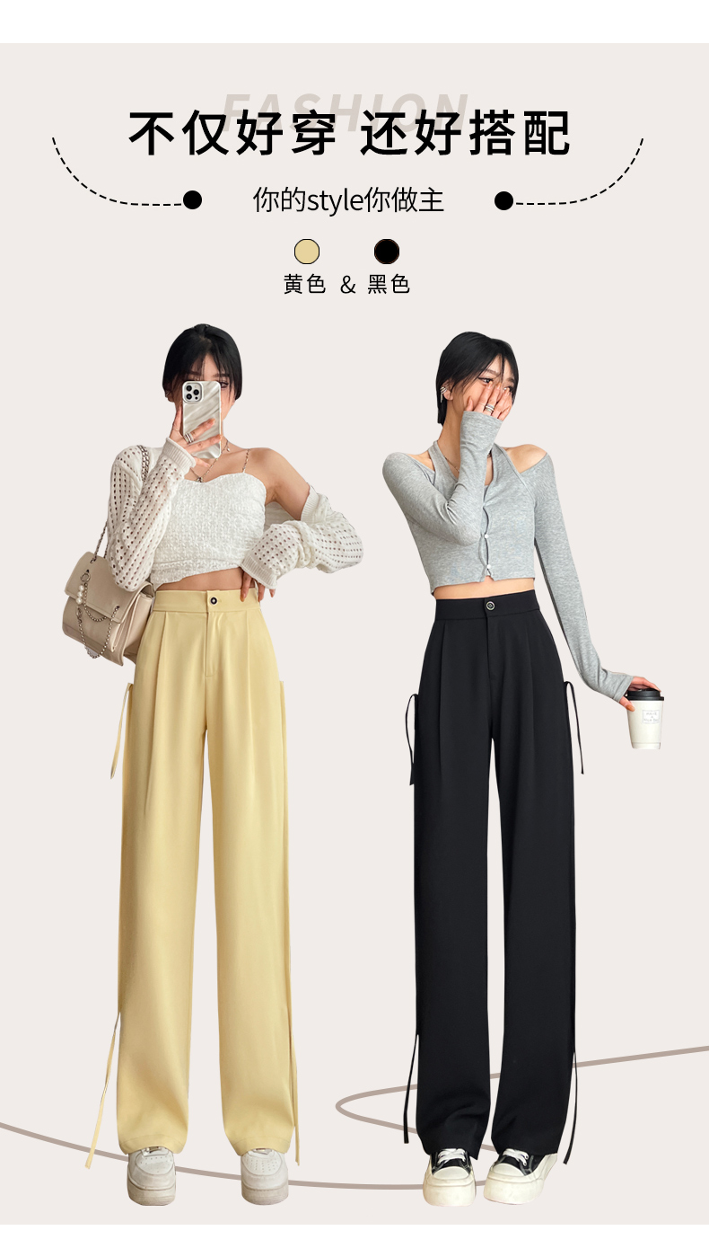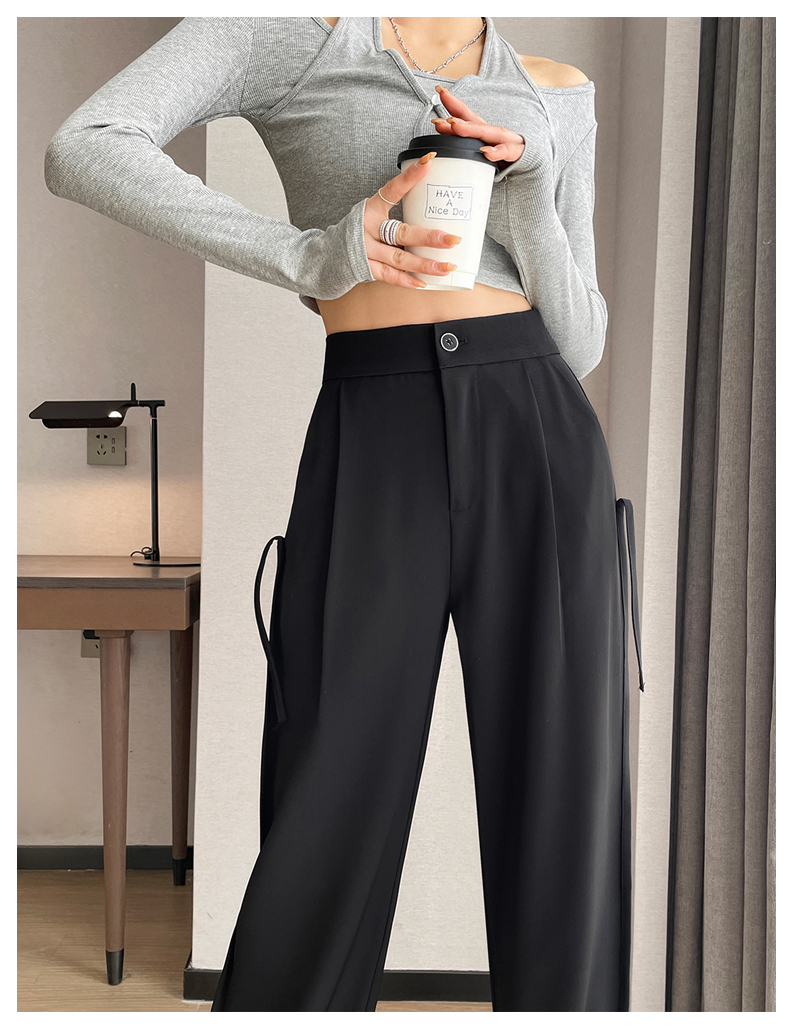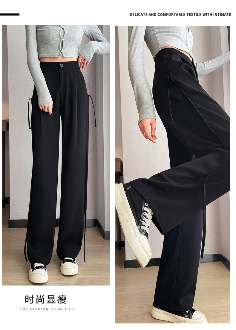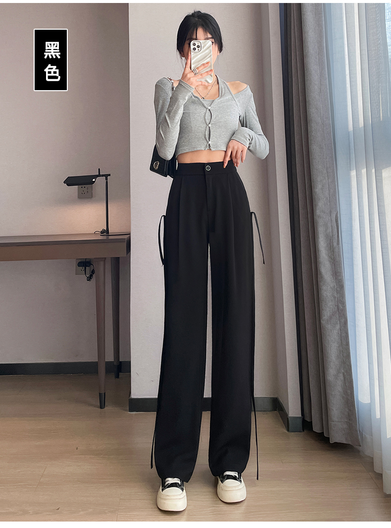 RM32543#新款高腰垂感显瘦流苏直筒西装阔腿拖地长裤女
