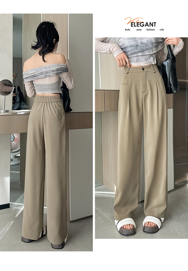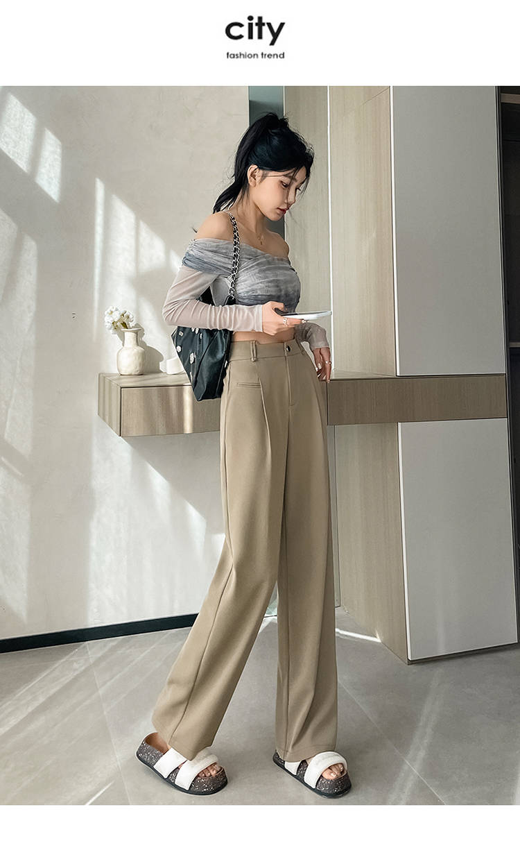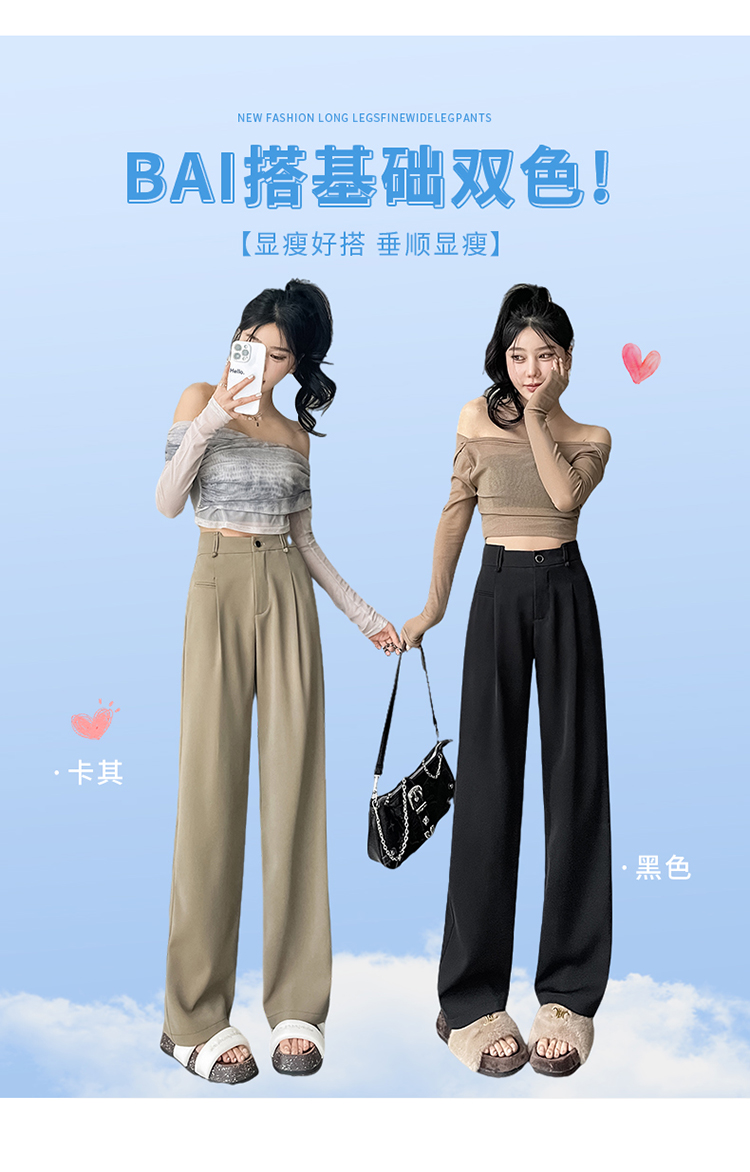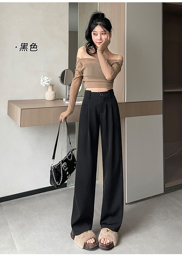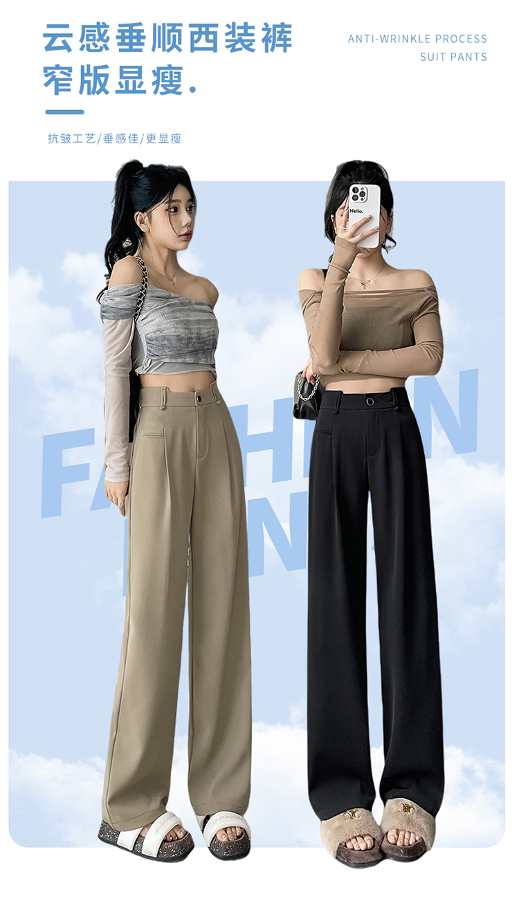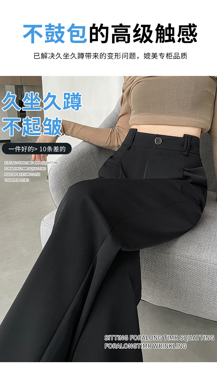 RM32547#新款高腰垂感显瘦休闲宽松直筒西装阔腿拖地长裤