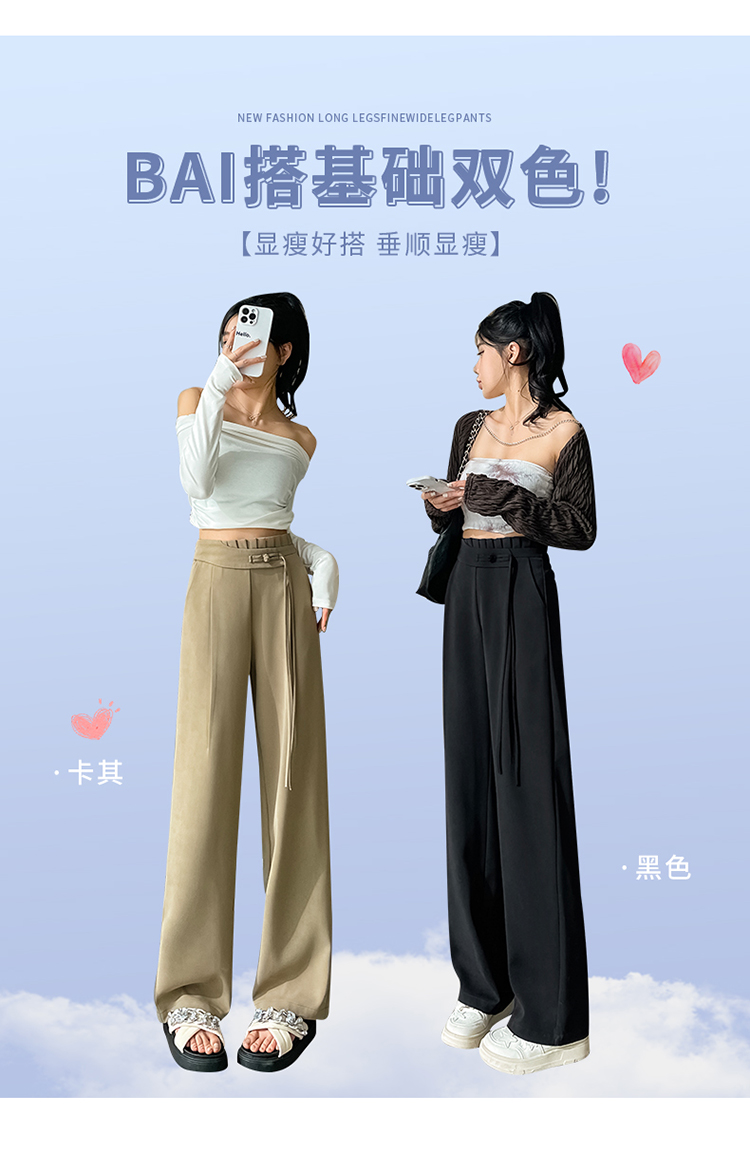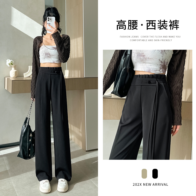 RM32550#新款高腰垂感显瘦休闲宽松直筒西装阔腿拖地长裤