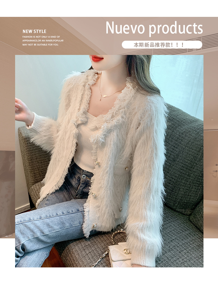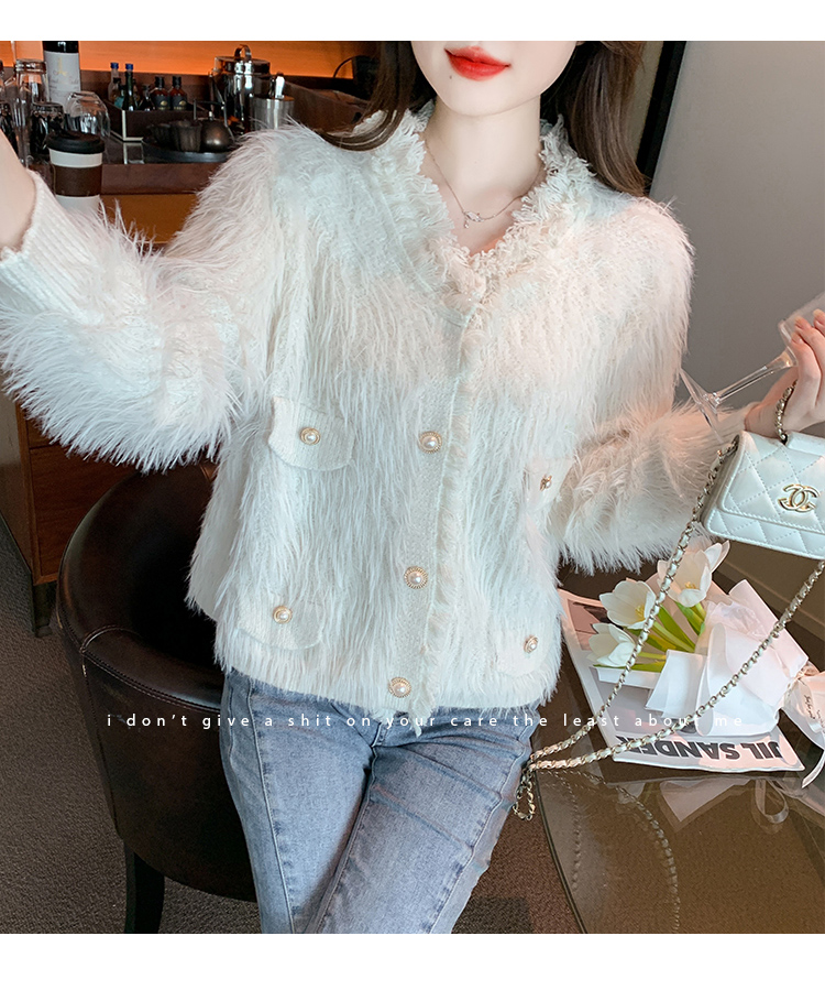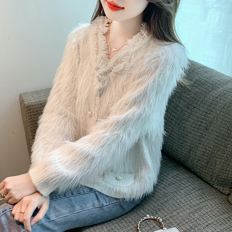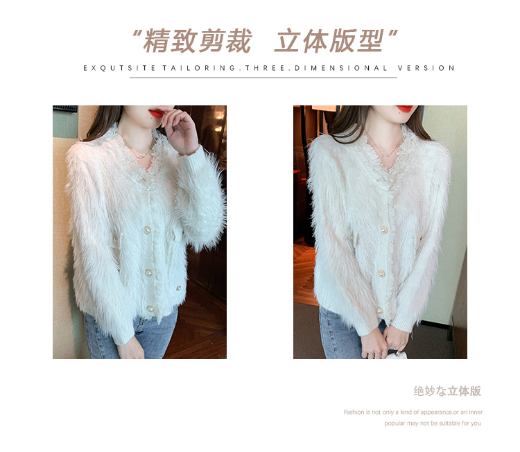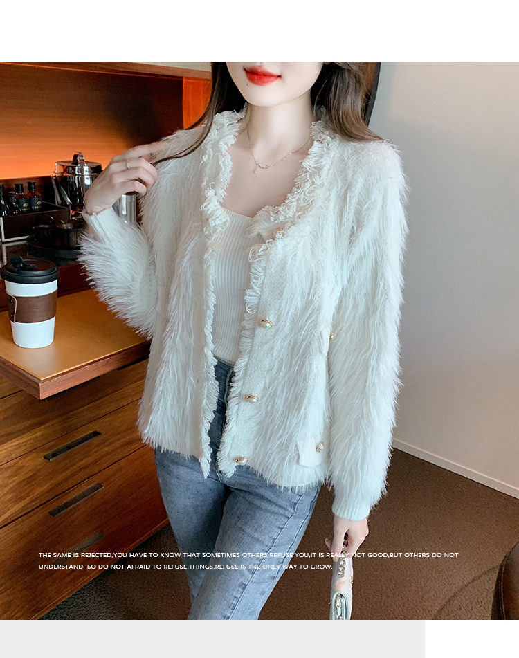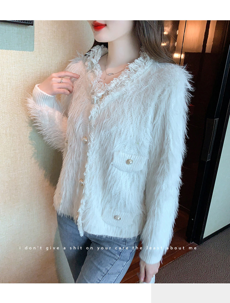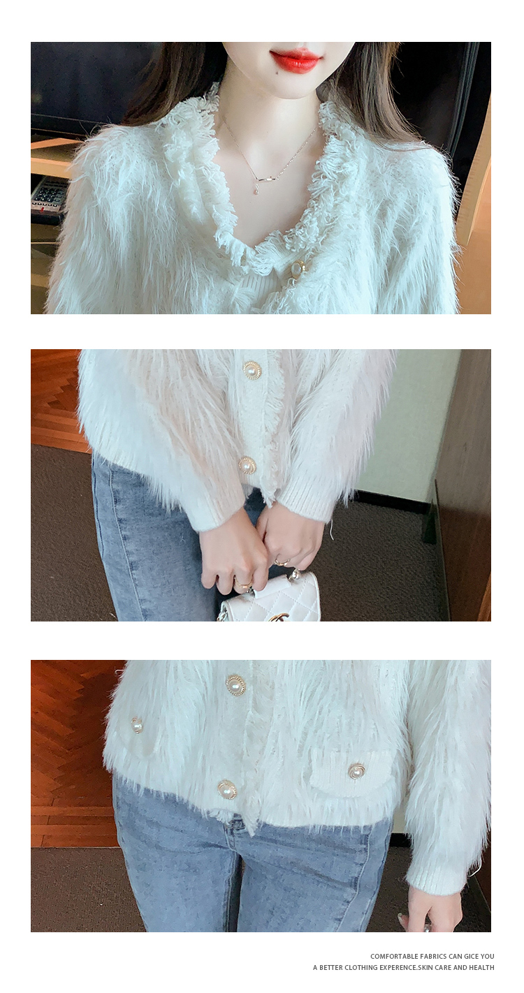RM32565#新款时尚高级感水貂毛加厚针织开衫长袖洋气毛衣外套