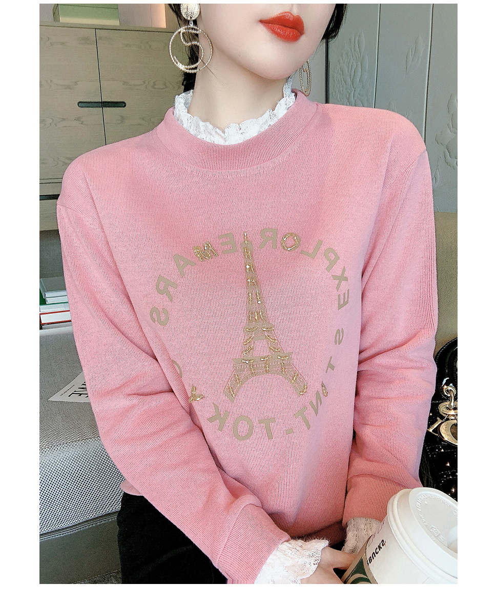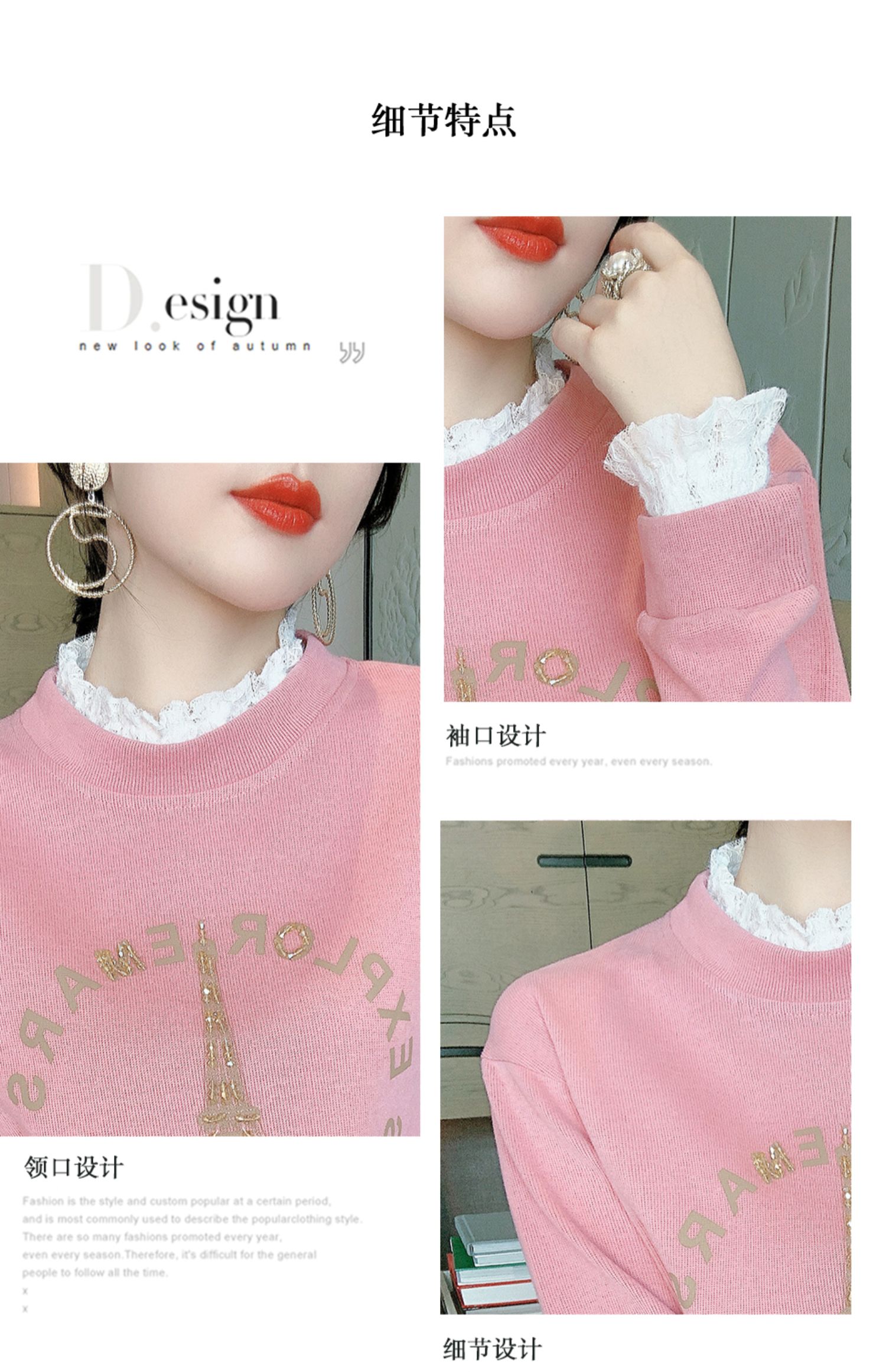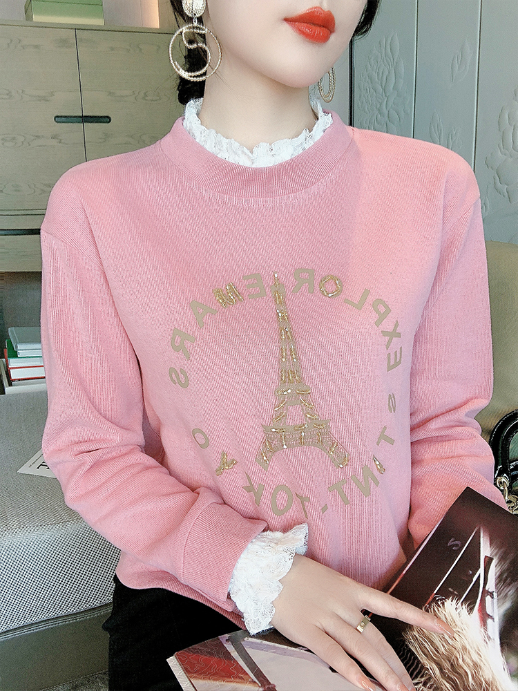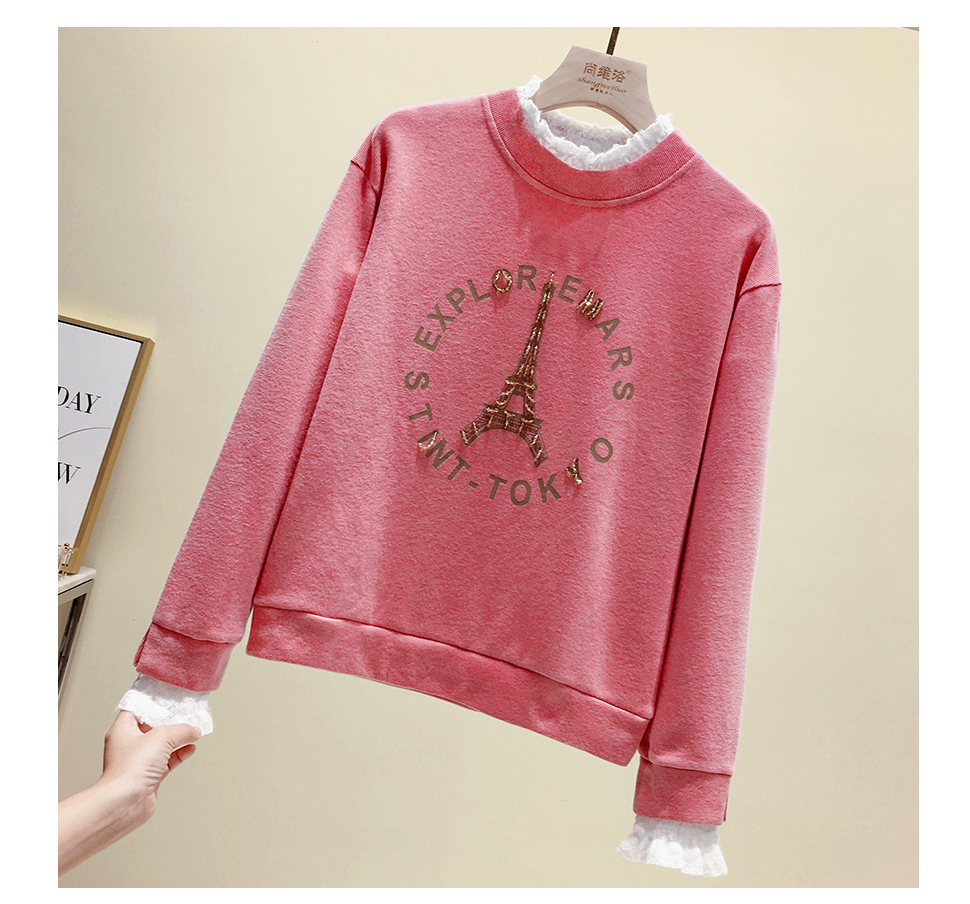 RM32581#粉色卫衣 新款女装宽松重工钉珠内搭圆领打底衫
